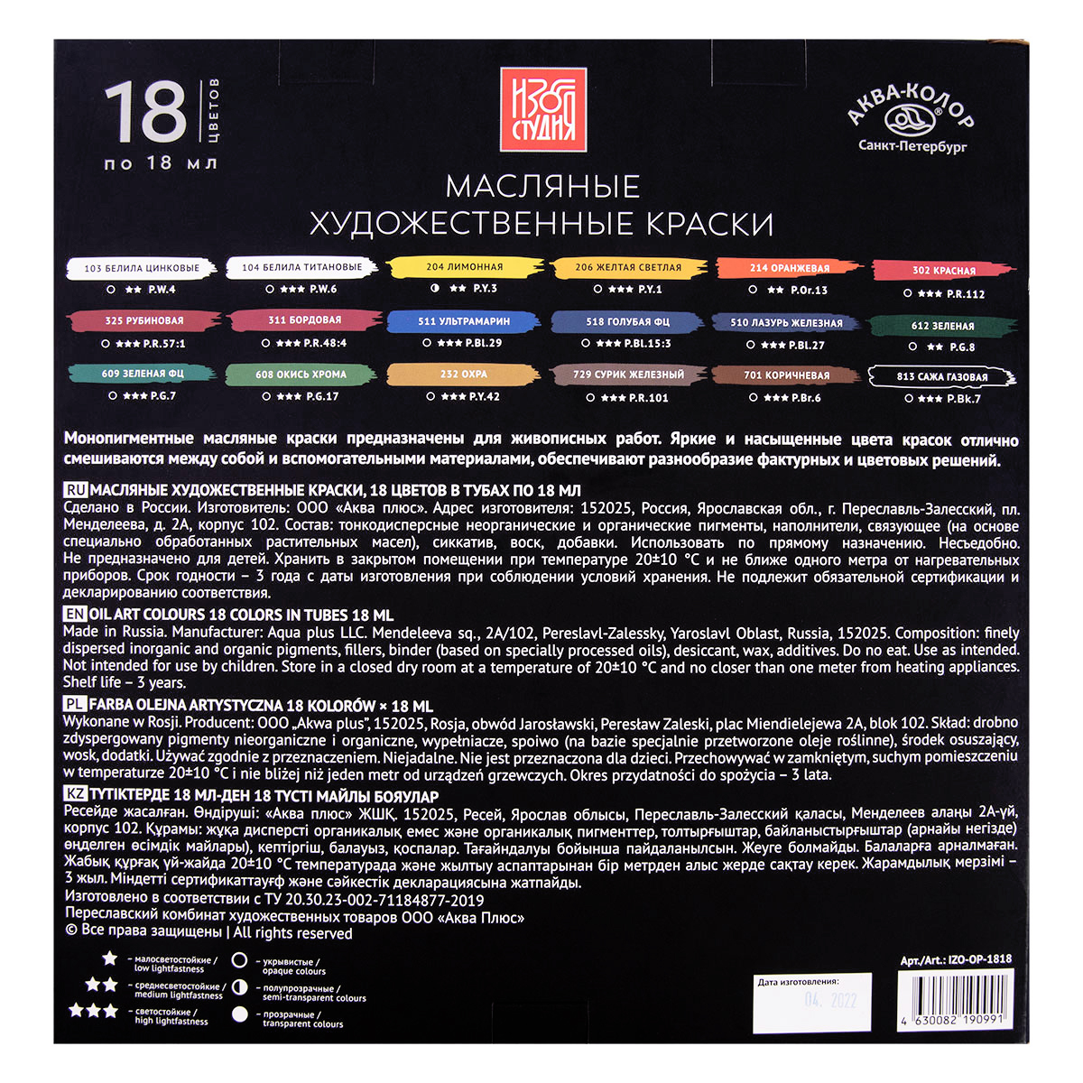 Масляные краски Аква-колор серии "Изостудия" – это художественные монопигментные краски отечественного производства с хорошей укрывистостью и высокой светостойкостью. Яркие и насыщенные цвета красок отлично смешиваются между собой и вспомогательными материалами, а высокая вязкость и сбалансированная палитра позволяют получить разнообразие фактурных и цветовых решений. Краски станут прекрасным материалом как для начинающих, так и для любителей масляной живописи. Сделано на Переславском комбинате художественных товаров.