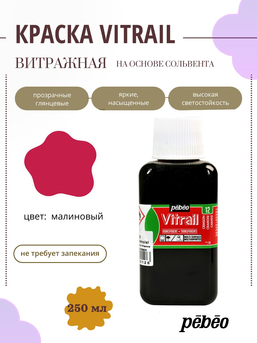 Витражные краски Pebeo наносятся кистью на различные поверхности, предварительно обезжиренные : стекло, ацетат, полиэстер, оргстекло.