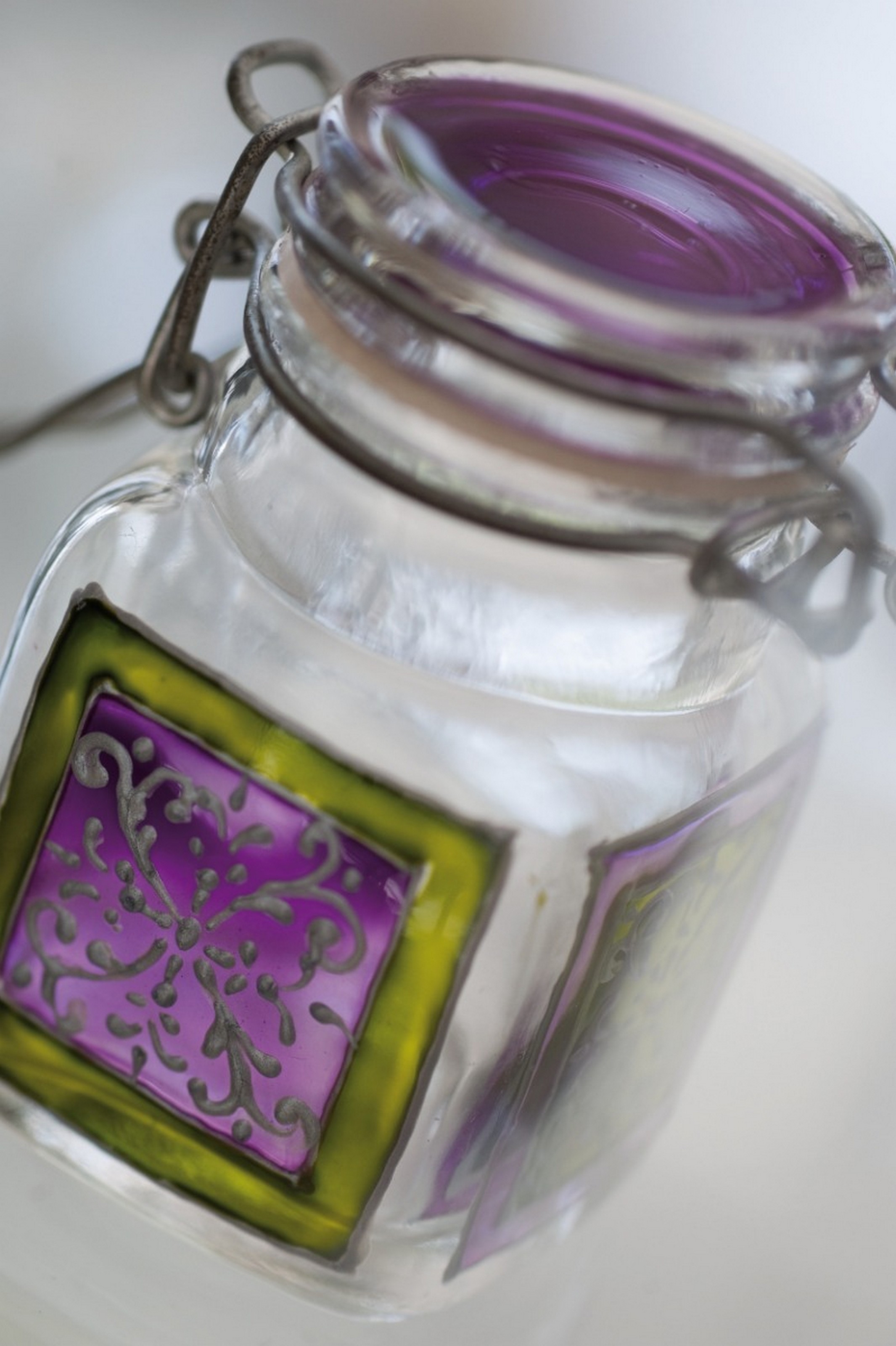 Уход за декорированными изделиями: после высыхания краски выдерживают деликатное мытье руками без замачивания. Устойчивы к средствам для стекол. Предметы, украшенные витражными красками, являются только декоративными, и краски могут быть нанесены только на поверхности, не предназначенные для контакта с пищевыми продуктами.