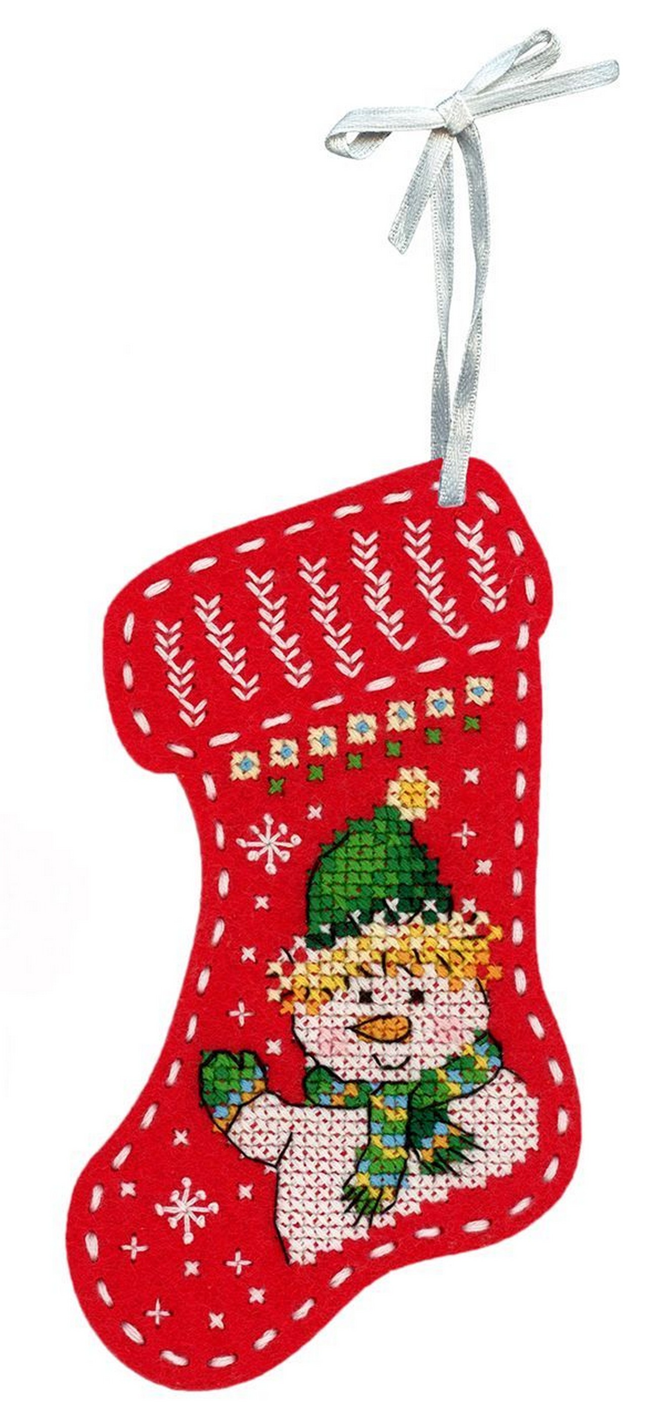 Представляем Ввшему вниманию набор для вышивания от ТМ Жар-птица, М.П. Студия, "Новогодний носок Привет от снеговика". Артикул: Т-973. В состав набора входит: перфорированная основа из фетра, фетр для обработки изнанки, мулине ПНК им.Кирова 10 цветов, игла, атласная лента, двуцветная символьная схема, инструкция...