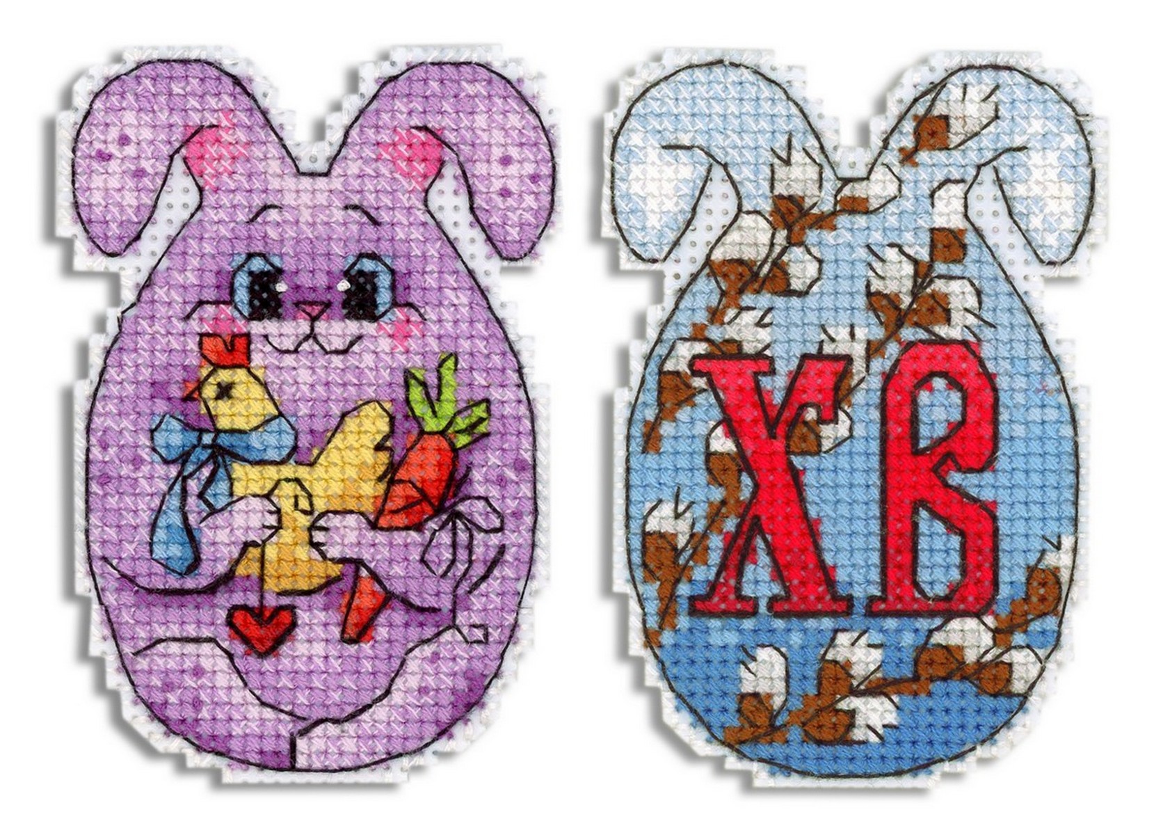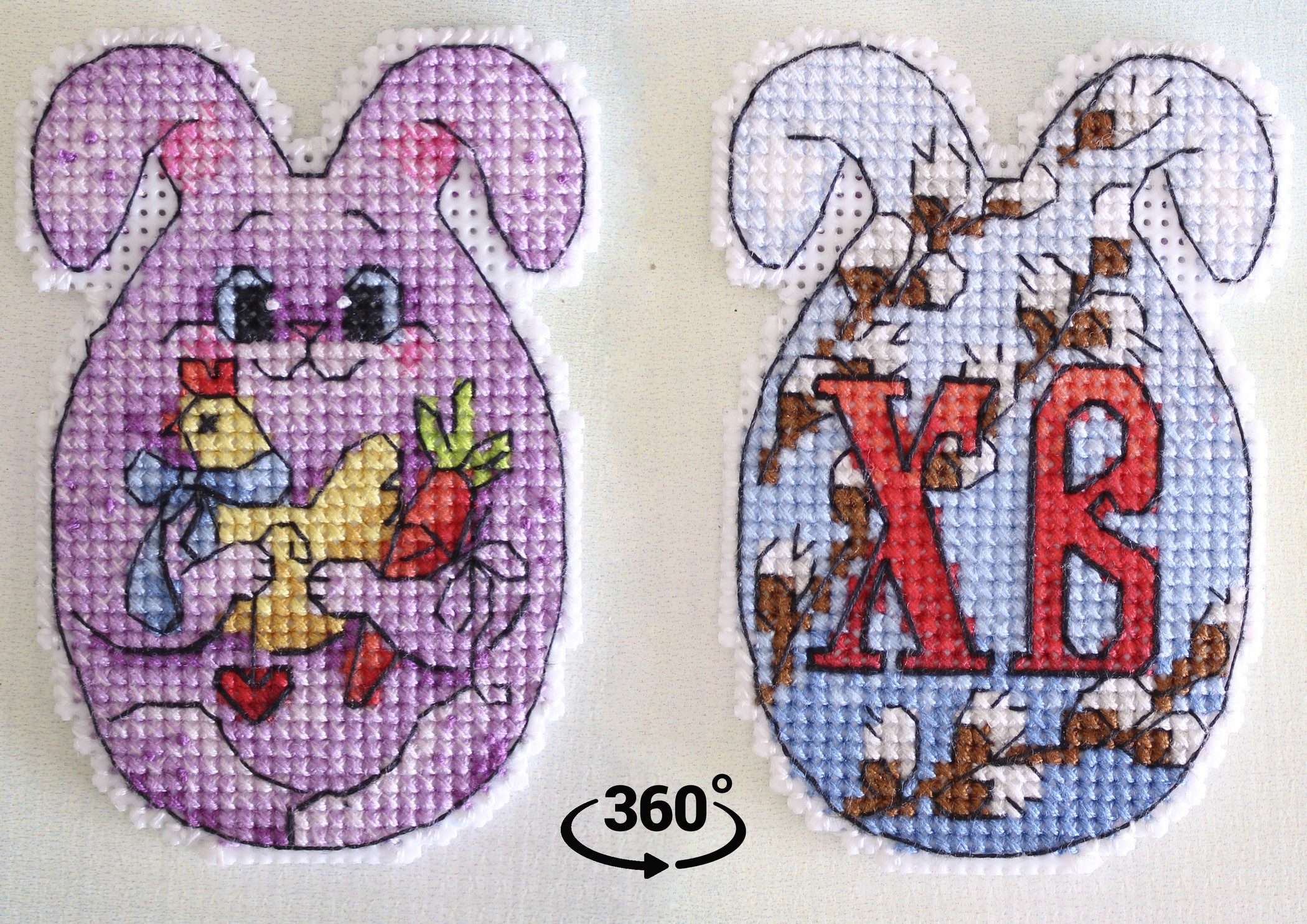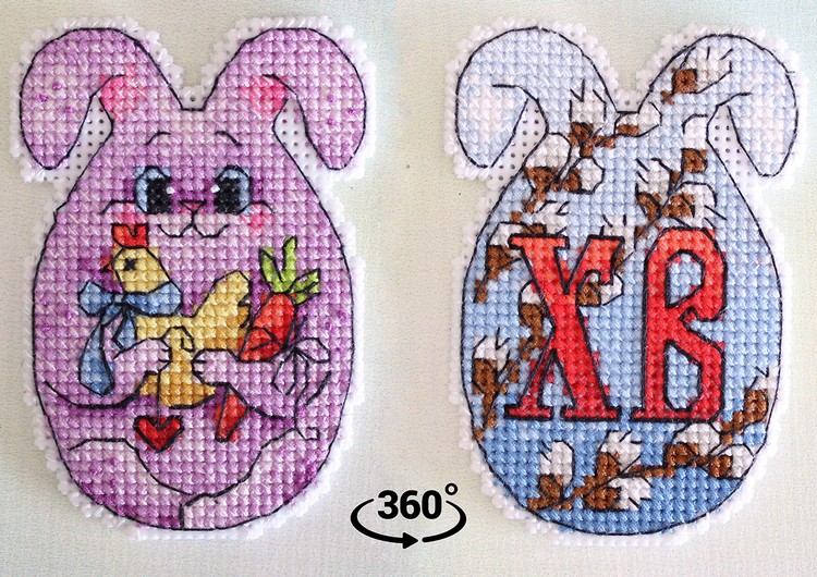 Обе стороны зайца вышиваются согласно схеме, затем вырезаются по контуру, обозначенному в руководстве по вышиванию, и сшиваются изнаночными сторонами внутрь.