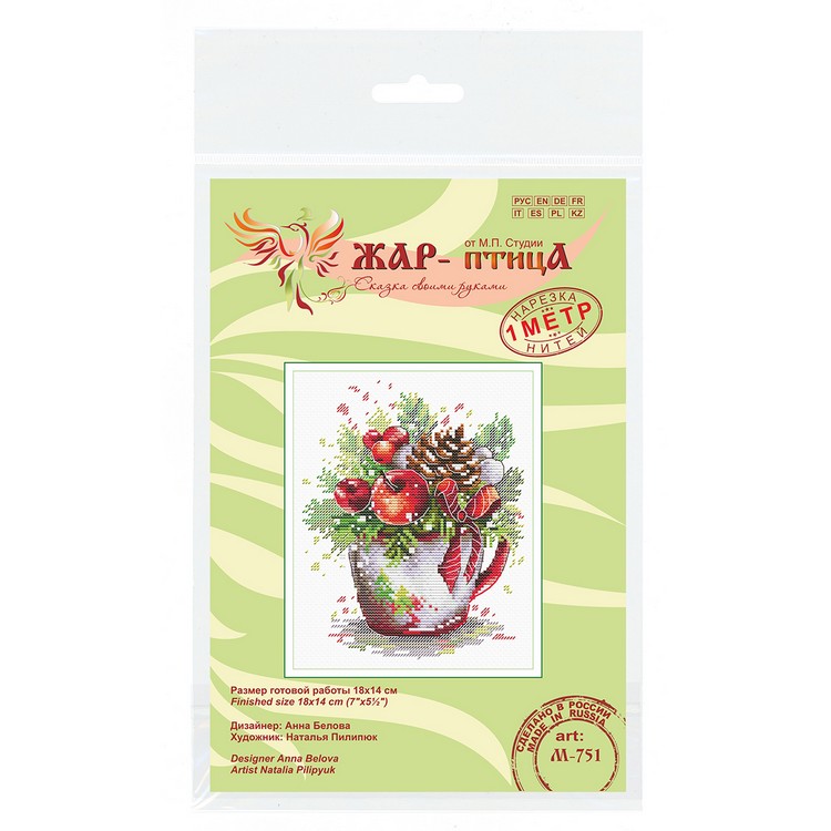 В состав набора входит все необходимое для работы: белая канва 14 каунта, нитки мулине 24 цветов ПНК им.Кирова, разобранные на органайзере, игла, двухцветная схема и подробное руководство по вышиванию на 8-и языках.