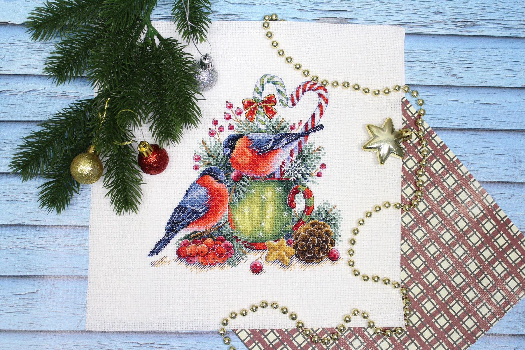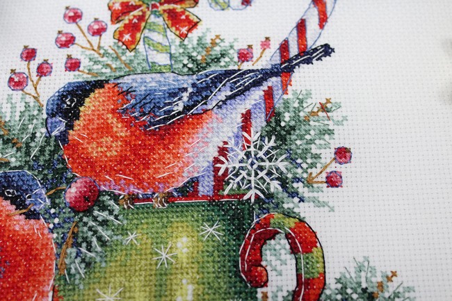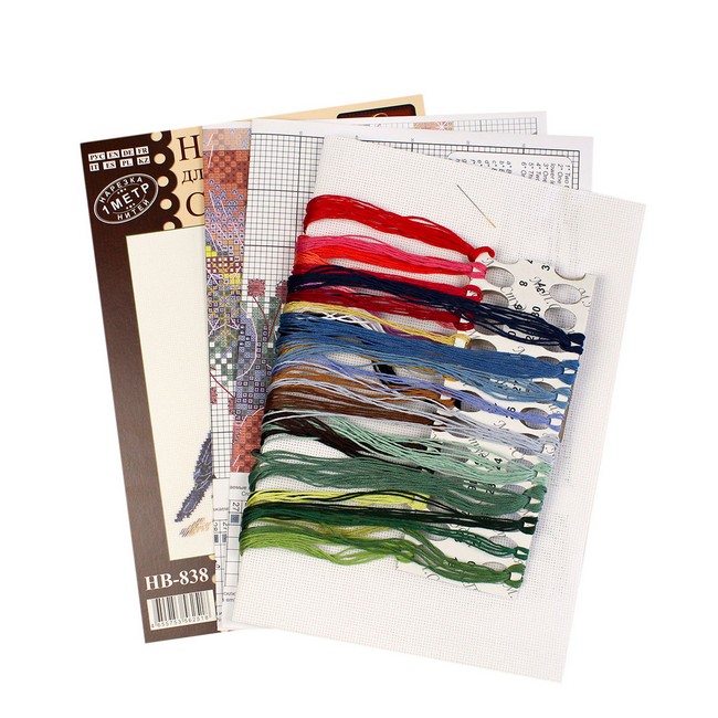 В состав набора входит: канва Aida №16 белая (Гамма), мулине Гамма 29 цветов, цветная символьная схема, игла, инструкция.