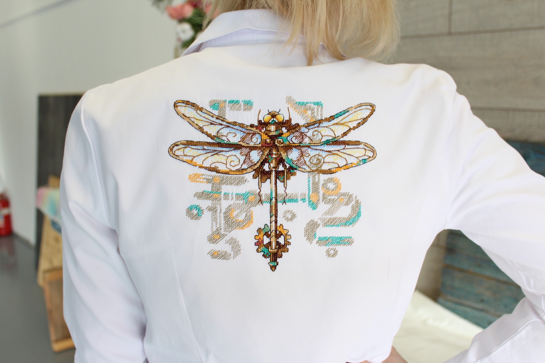 В набор входит: Водорастворимая канва, нитки мулине ПНК им. Кирова 14 цветов, черно-белая схема, инструкция