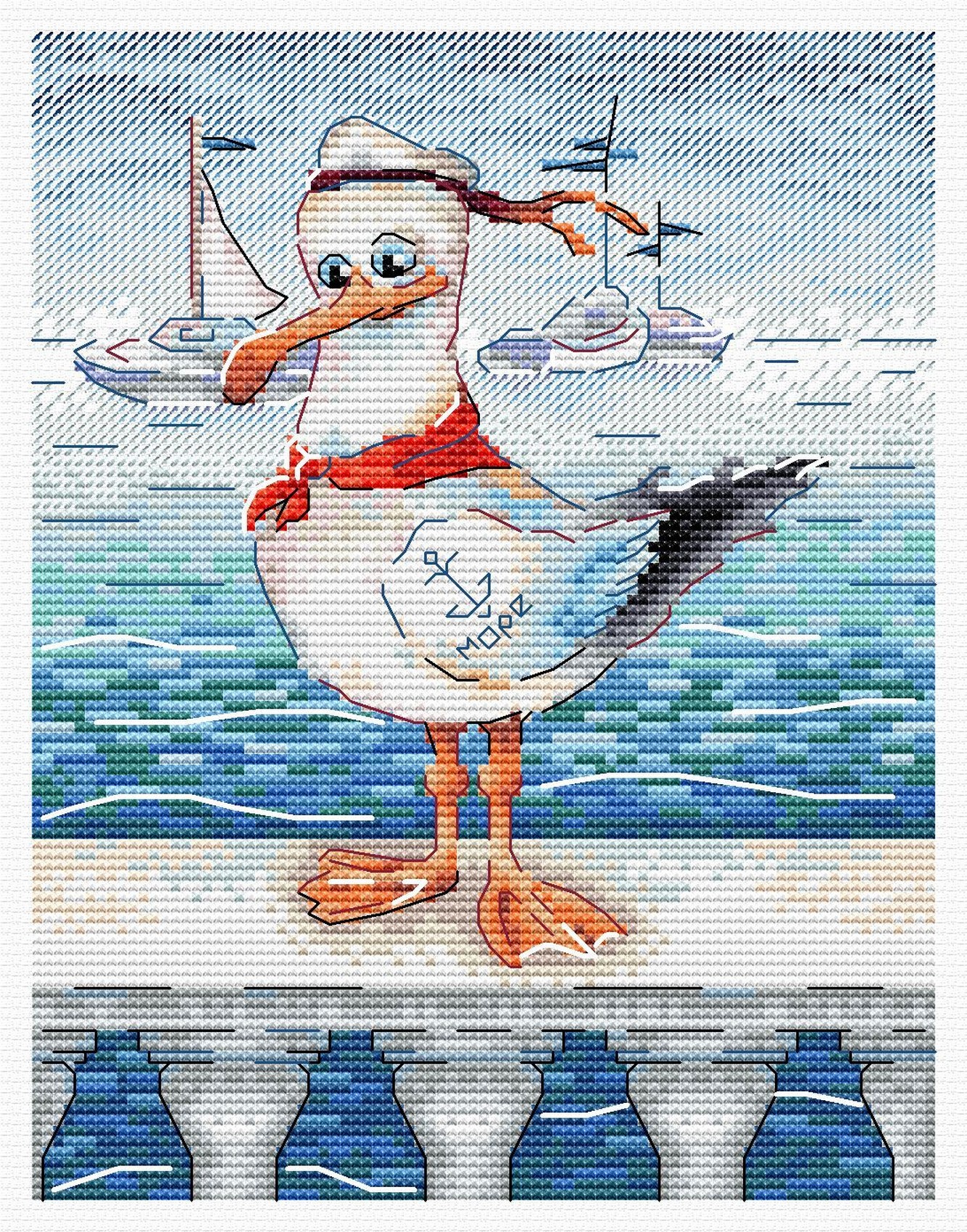 В состав набора входит все необходимое для работы: канва №14, нитки мулине ПНК им. Кирова 26 цветов, черно-белая схема, игла, инструкция..