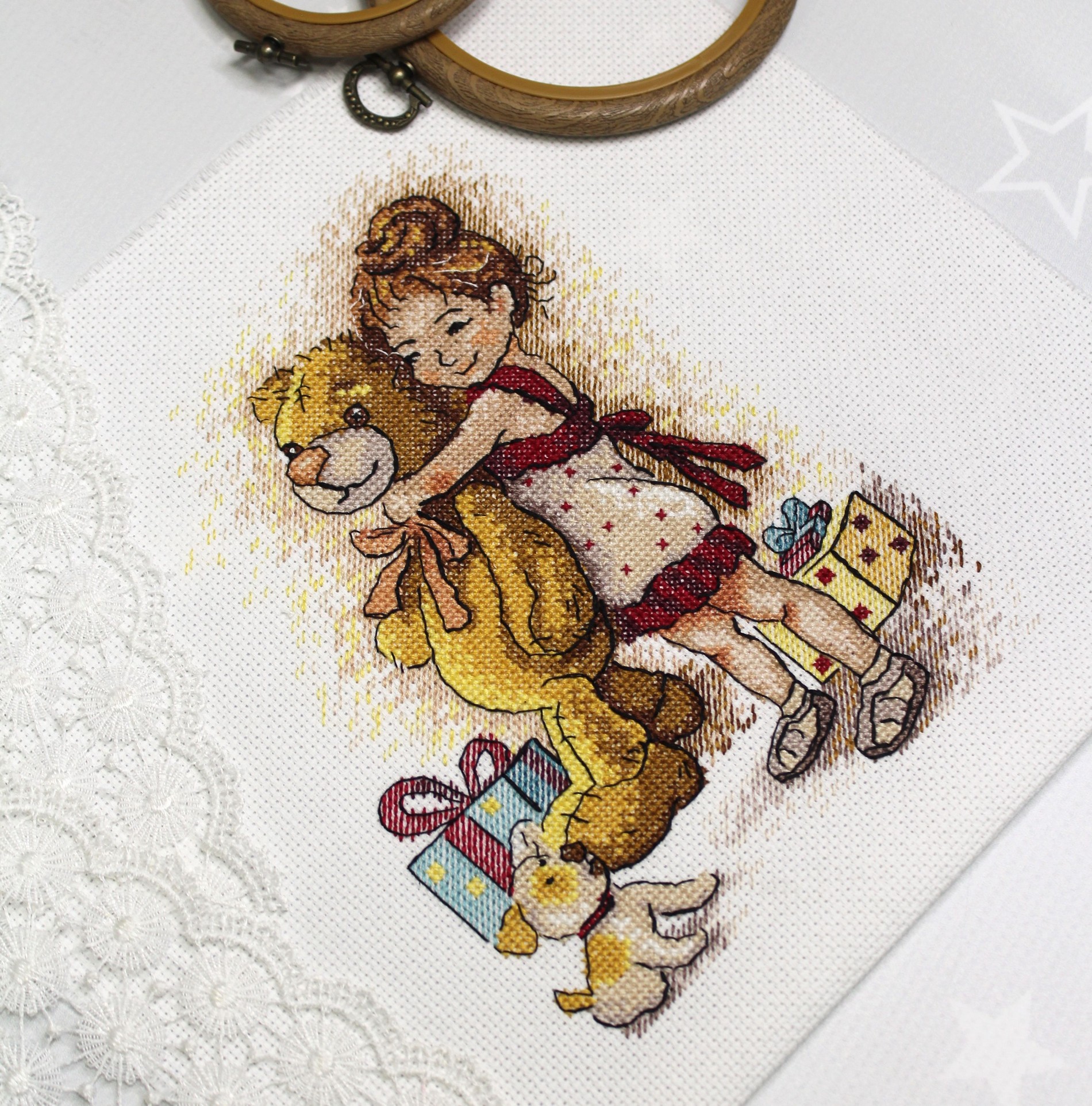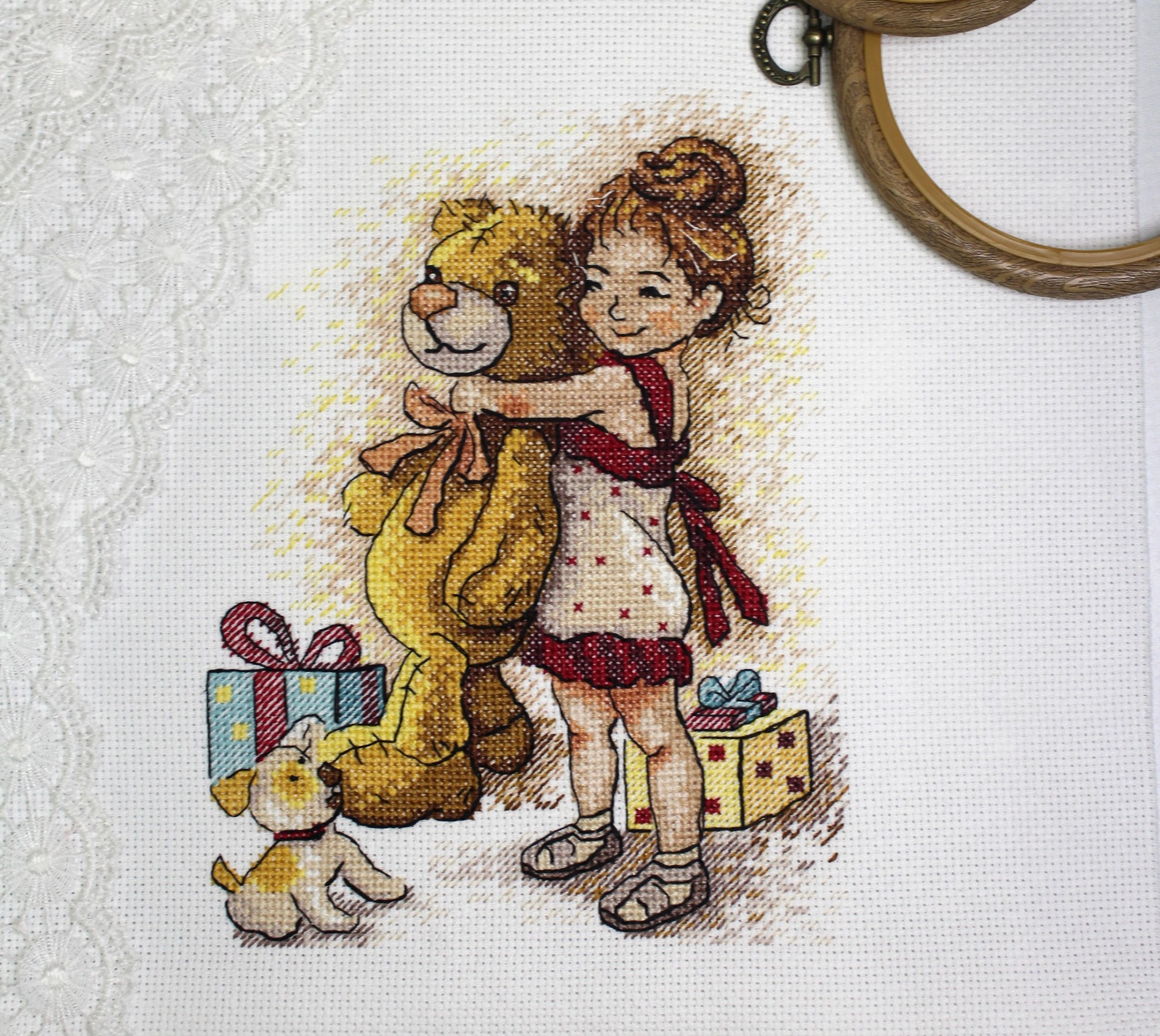 Набор для вышивания от ТМ Жар-птица (МП Студия) Девочка с мишкой.