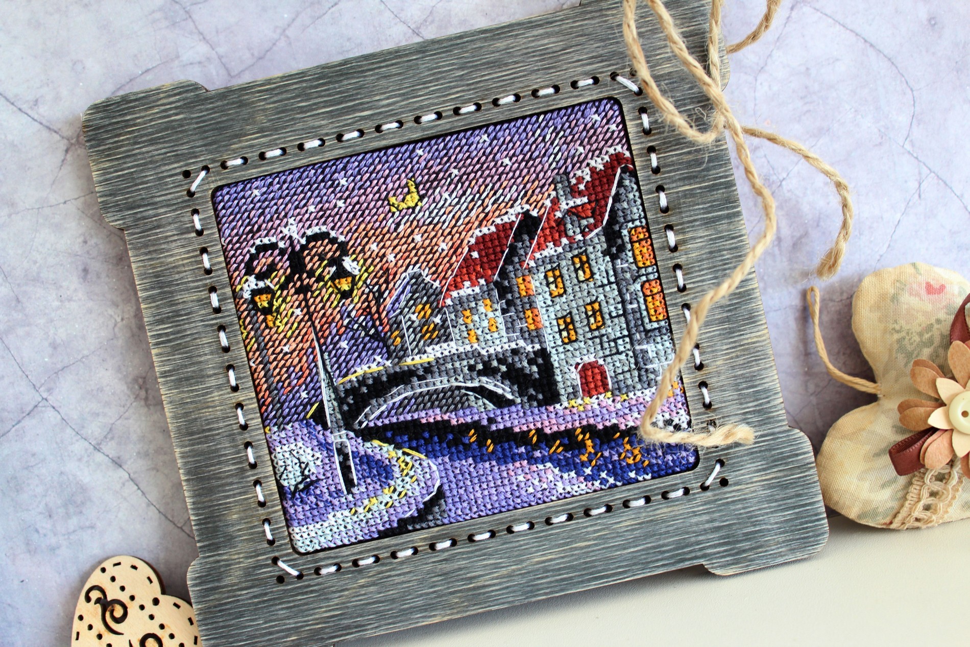 Состав: канва Аида №14, нитки мулине 16 цветов ПНК им.Кирова, игла, двухцветная схема и руководство по вышиванию..