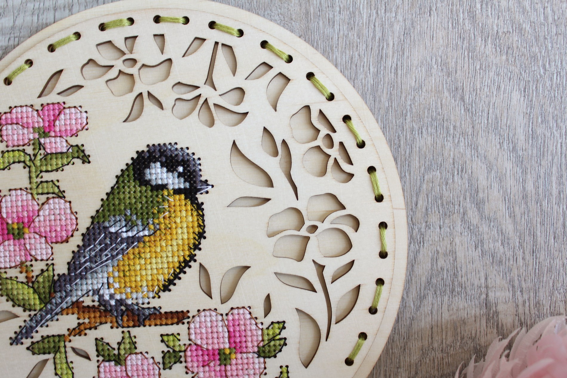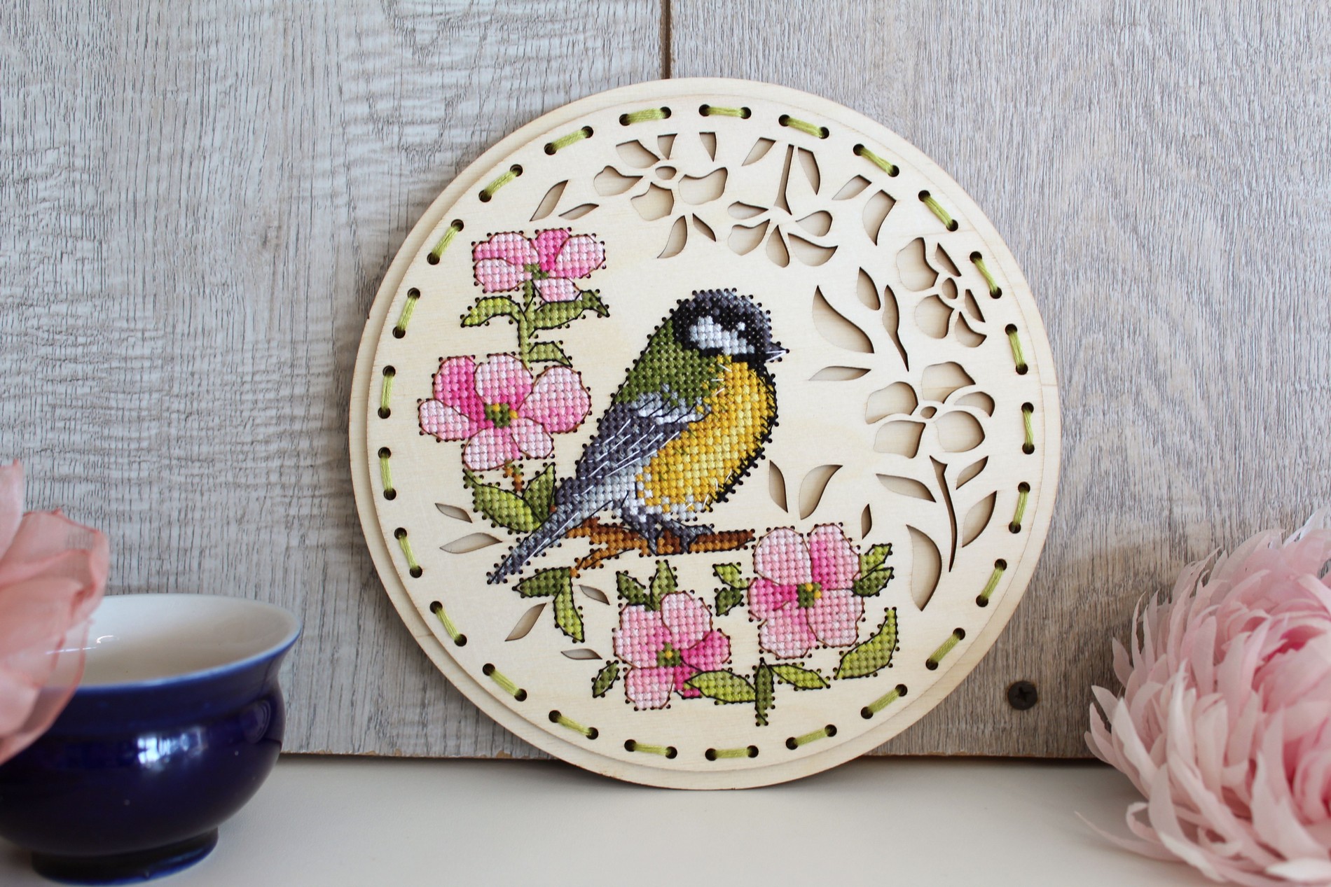 Состав: деревянная перфорированная заготовка, мулине ПНК им. Кирова 17 цветов, схема, игла, инструкция..