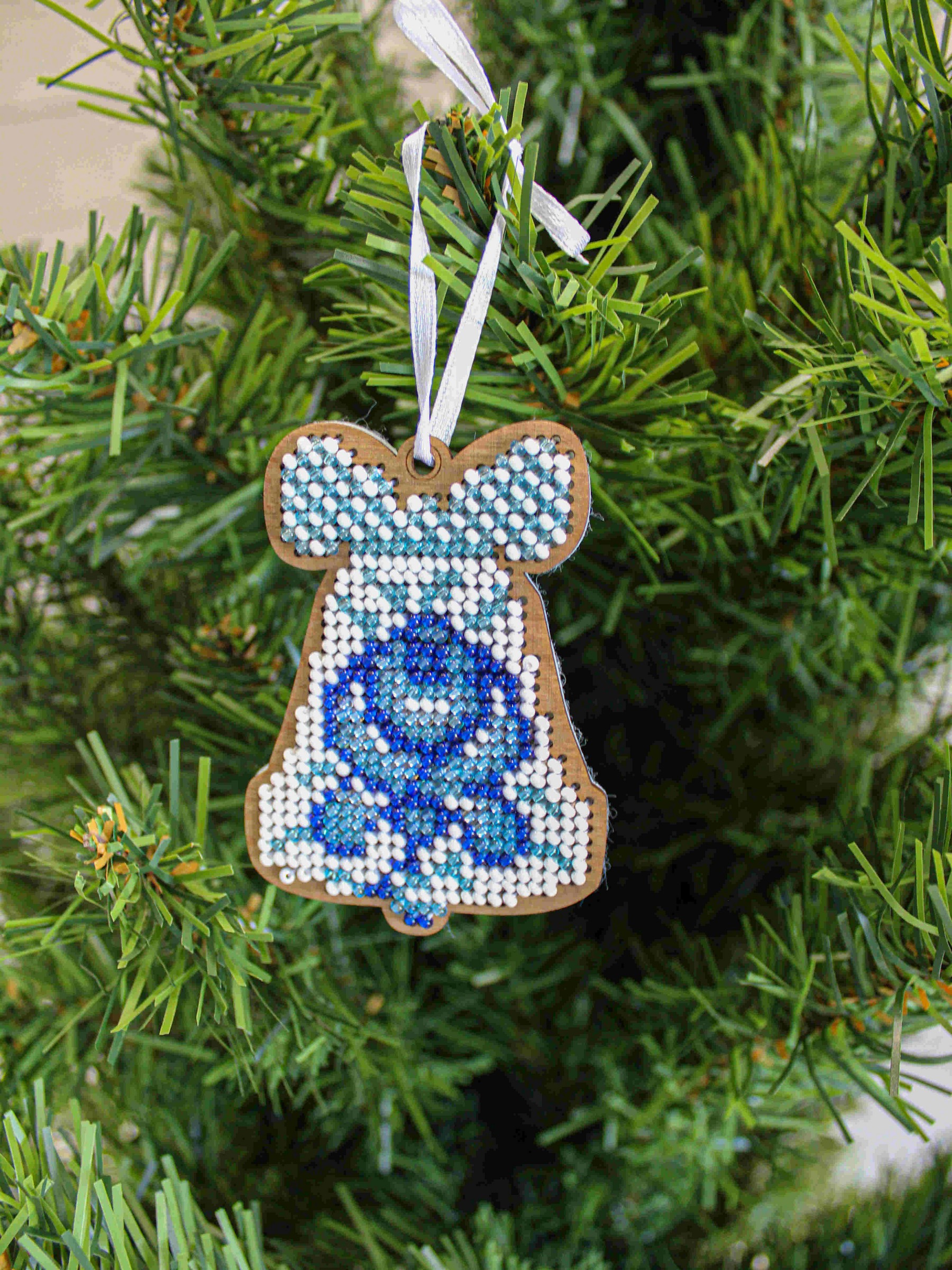 Состав: тонированная перфорированная основа из фанеры, бисер Preciosa 4 цветов, белый фетр для обработки изнаночной стороны, атласная лента, бумажная двухцветная символьная схема, игла, подробная инструкция.