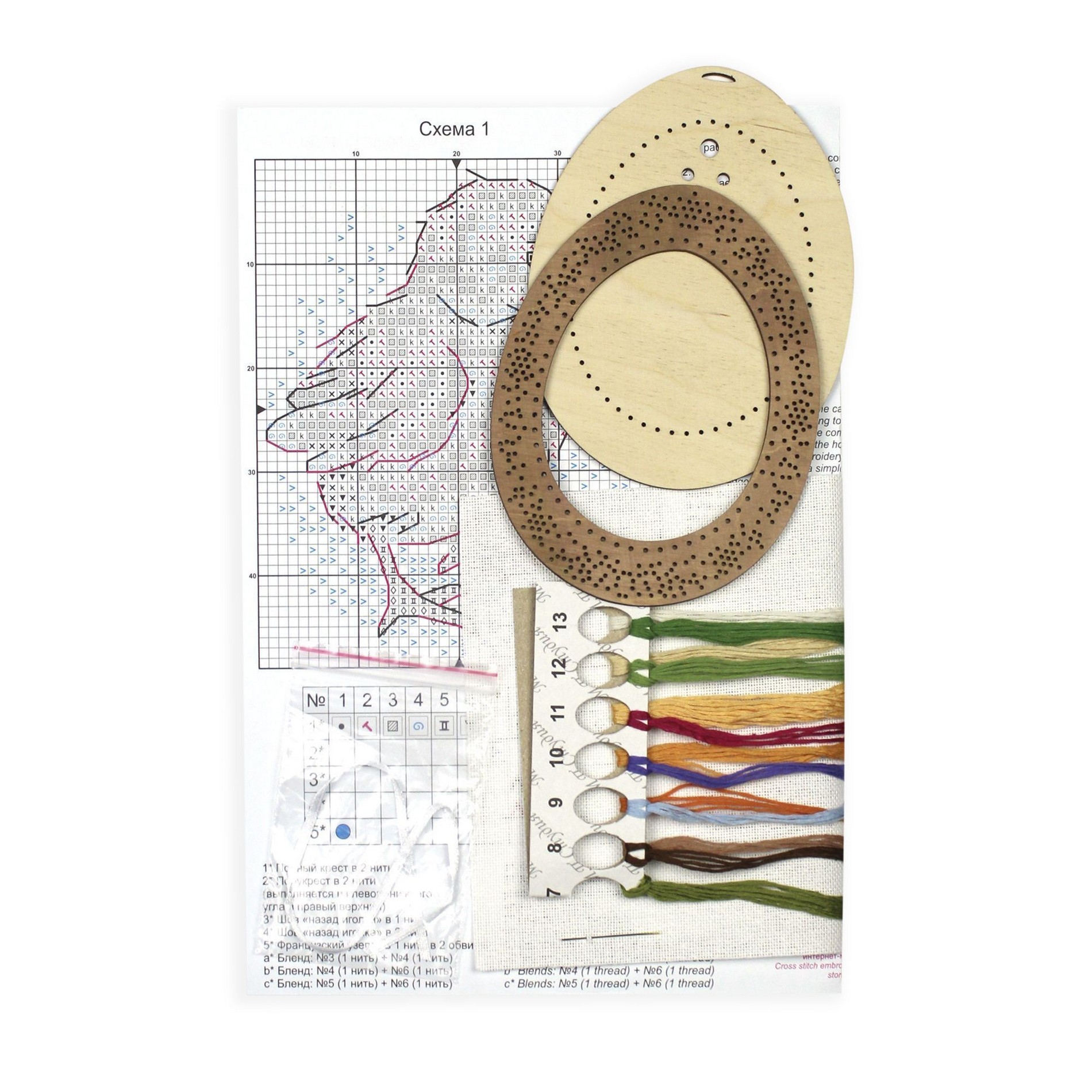 Состав: ткань равномерного переплетения Гамма (Линда k27), 13 цветов мулине ПНК им.Кирова, деревянная рама, игла, бумажная схема и руководство по вышиванию...
