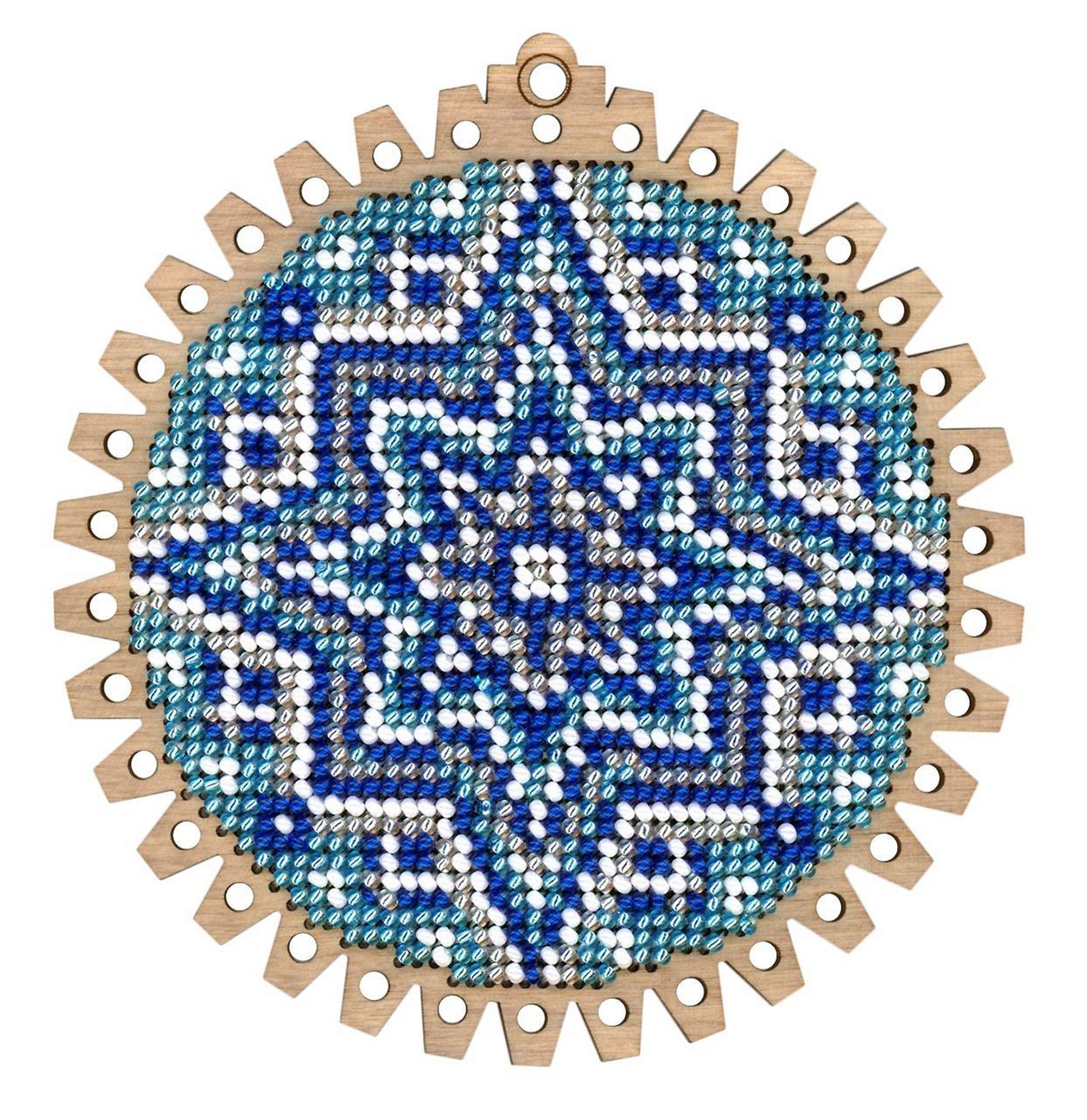 Состав: тонированная перфорированная основа из фанеры, бисер Preciosa 4 цветов, белый фетр для обработки изнаночной стороны, атласная лента, бумажная двухцветная символьная схема, игла, подробная инструкция.