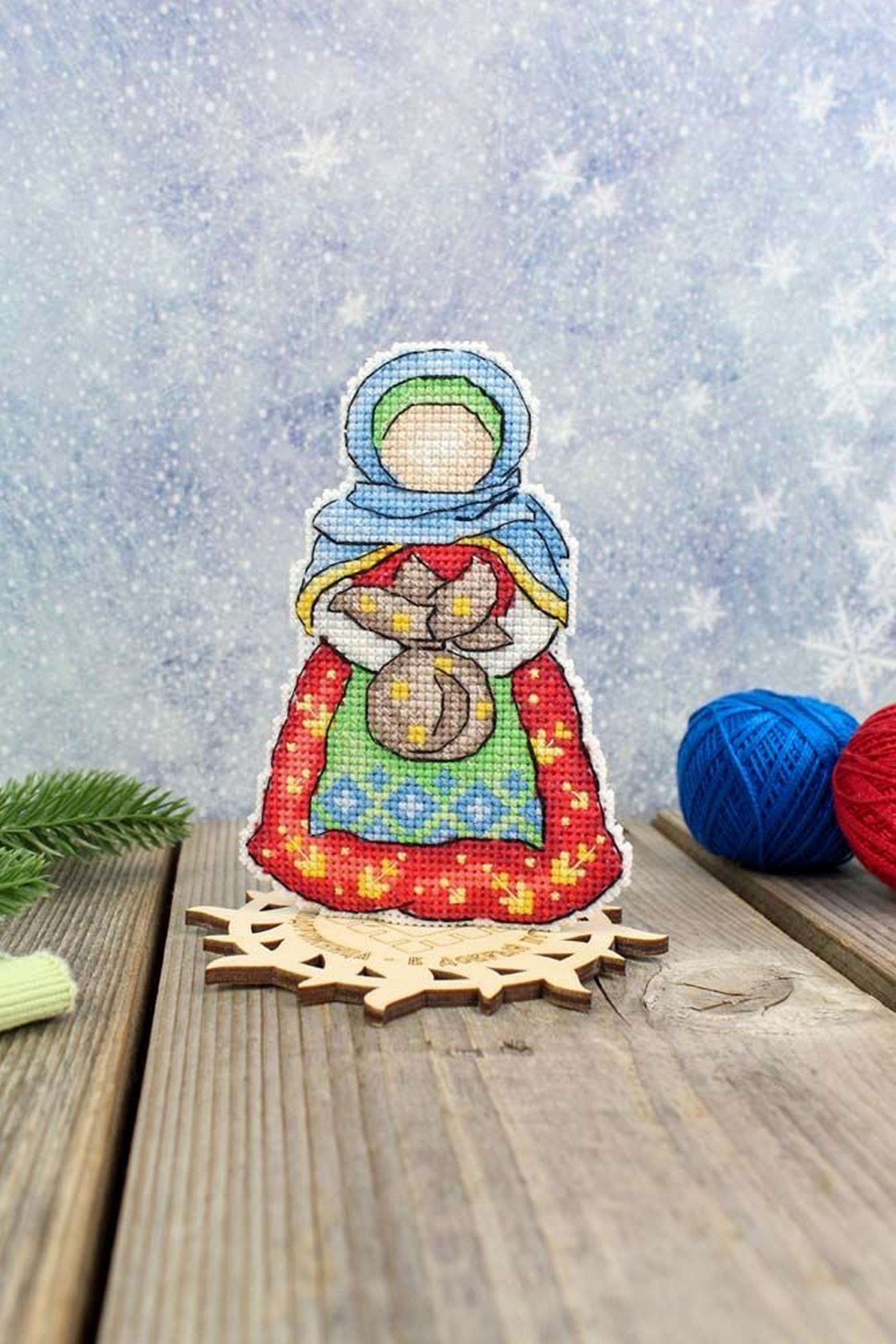В состав набора входит: белая пластиковая канва 14 каунта, нити мулине ПНК им.Кирова 16 цветов, разобранные на органайзере, игла, схема и руководство по вышиванию...