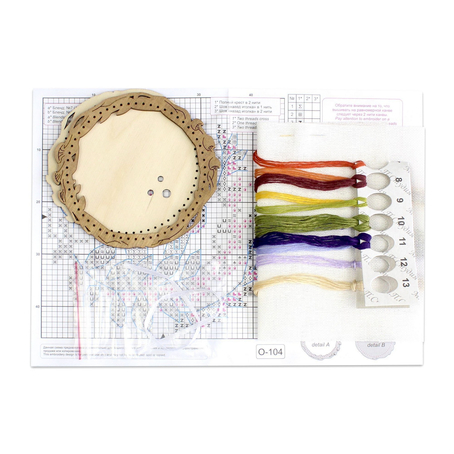 Состав: ткань равномерного переплетения Гамма (Линда k27), 11 цветов мулине ПНК им.Кирова, деревянная рама, игла, лента, бумажная схема и руководство по вышиванию..