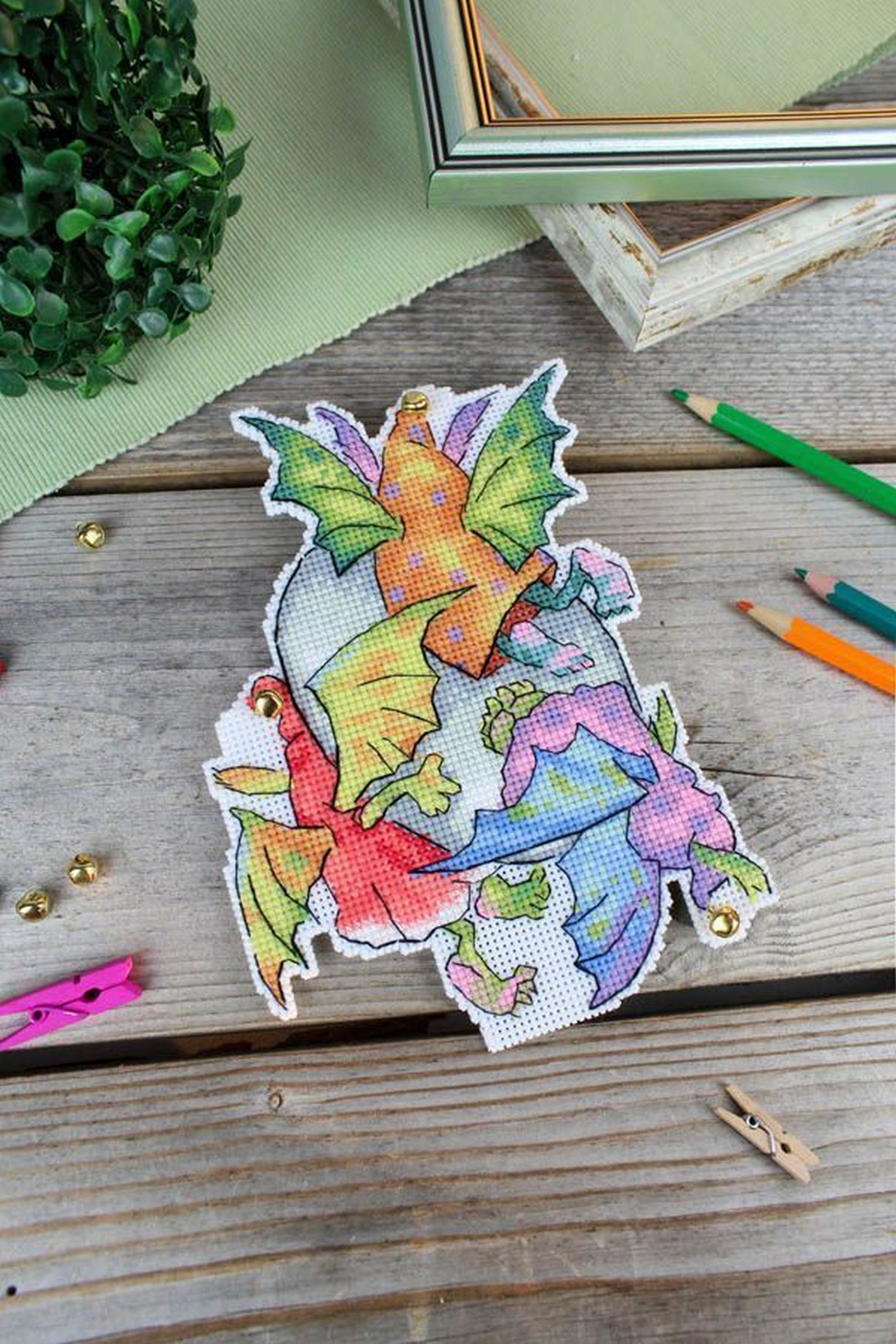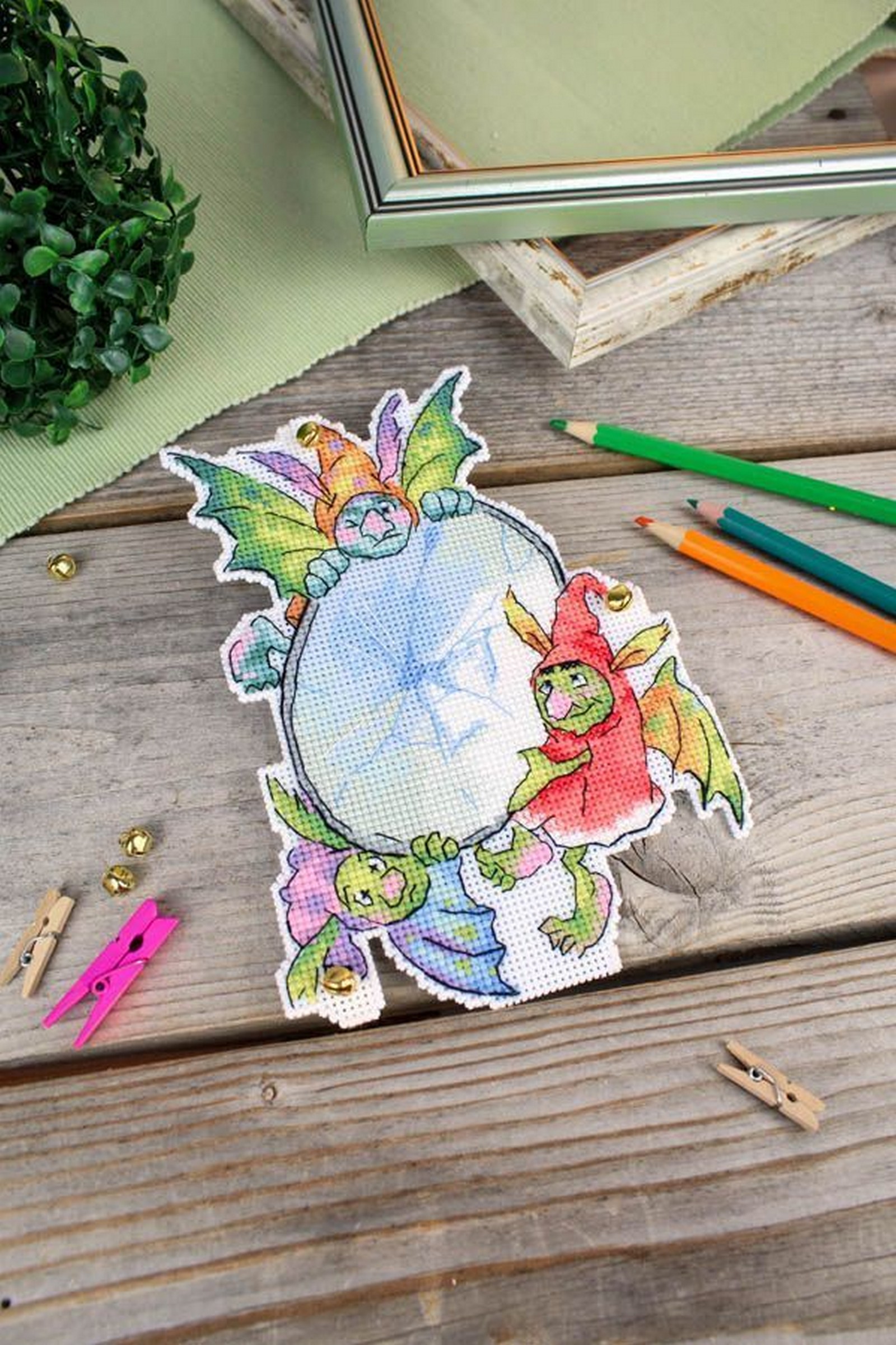 В состав набора входит: белая пластиковая канва 14 каунта, нити мулине ПНК им.Кирова 22 цвета, разобранные на органайзере, декор.элементы - 7 шт, игла, схема и руководство по вышиванию..
