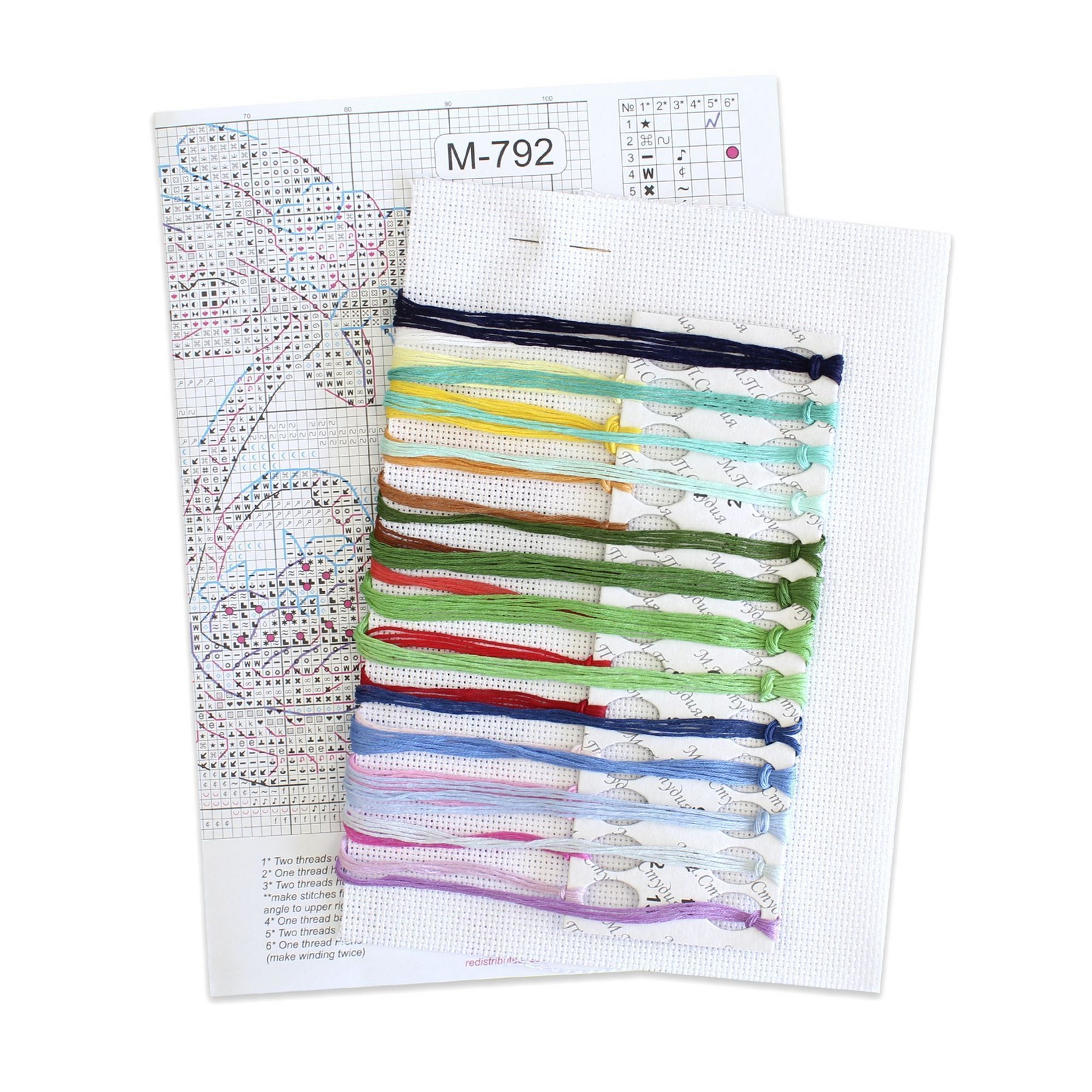 В состав набора входит: белая канва 14 каунта, нитки мулине ПНК им.Кирова 26 цветов, разобранные на органайзере, игла, схема и руководство по вышиванию...