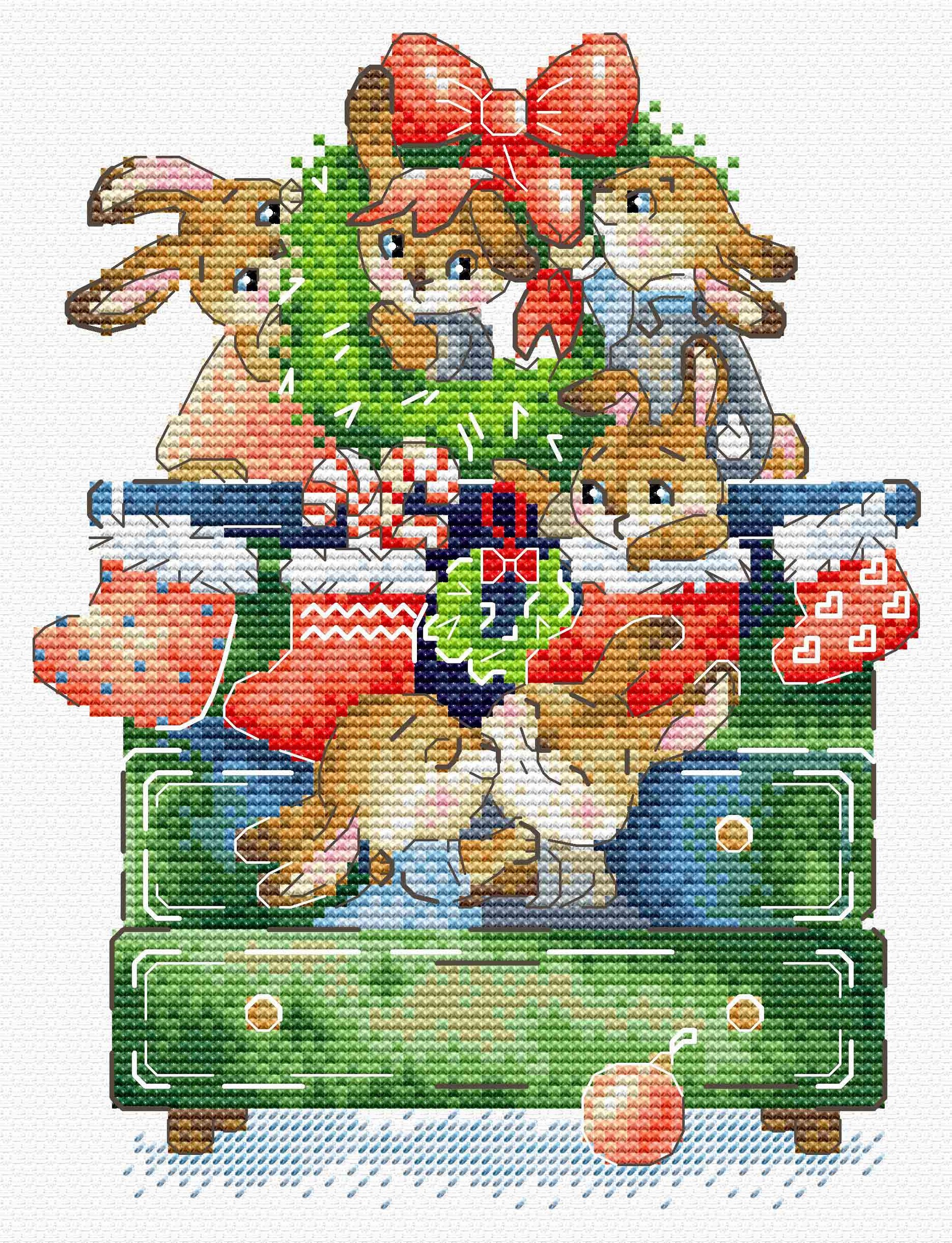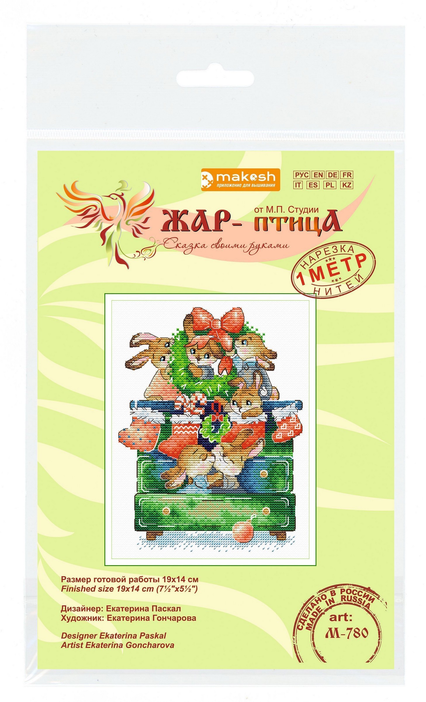 В состав набора входит все необходимое для работы: белая канва 14 каунта, нитки мулине ПНК им.Кирова 25 цветов, разобранные на органайзере, игла, бумажная и электронная схема Makosh, руководство по вышиванию..