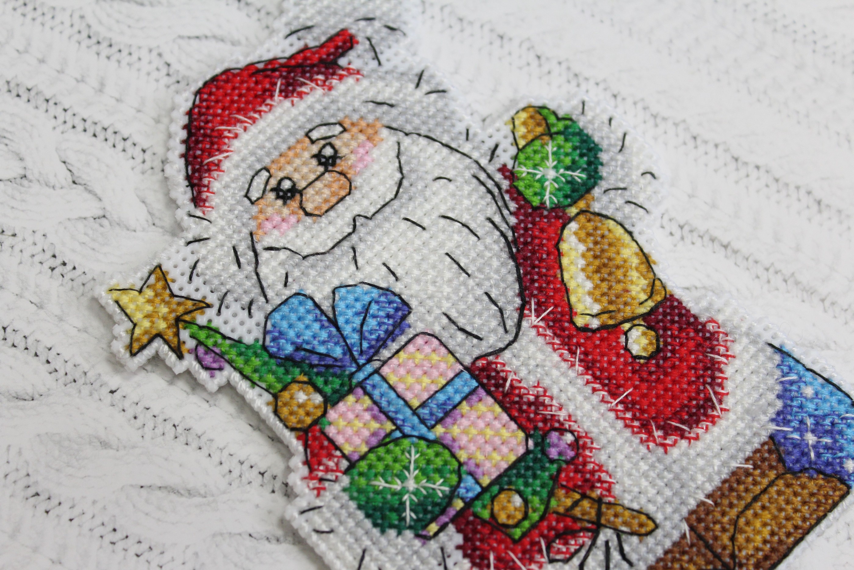 В состав набора входит: канва пластиковая 14 каунта, нитки мулине 19 цветов ПНК им.Кирова, разобранные на органайзере, игла, схема и руководство по вышиванию.