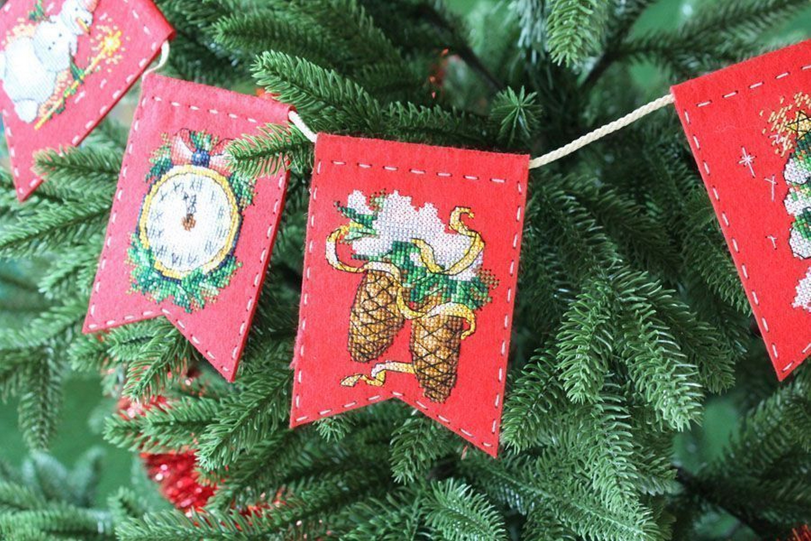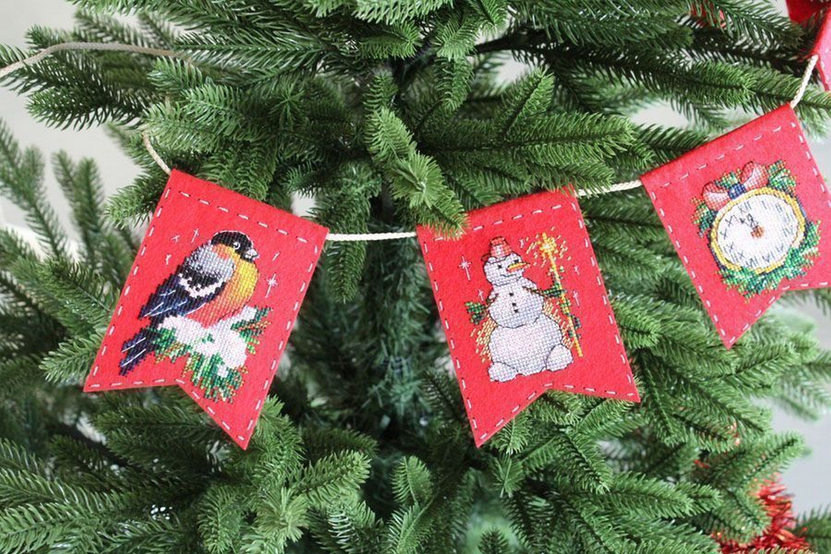 Представляем Ввшему вниманию набор для вышивания от ТМ Жар-птица, М.П. Студия, Гирлянда «Новогоднее настроение» (7 флажков). Артикул: Т-1017. В состав набора входит: заготовки с перфорацией из фетра красного цвета, нитки мулине ПНК им.Кирова 19 цветов, шнур для развески, игла, схема и руководство по вышиванию.. Размер 12*8 (одного флажка)