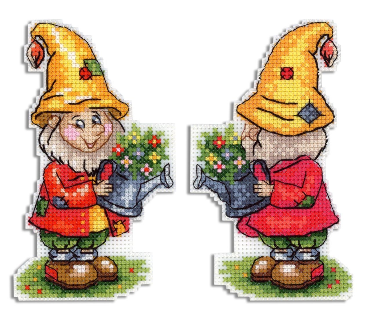 Представляем Вашему вниманию Набор для вышивания от ТМ Жар-птиица (МП Студия ) Садовый гном. Артикул: Р-821. Техника: Счетный крест. В состав набора входит: канва пластиковая 14 каунта, нитки мулине 20 цветов, разобранные на органайзере, игла, схема и руководство по вышиванию.