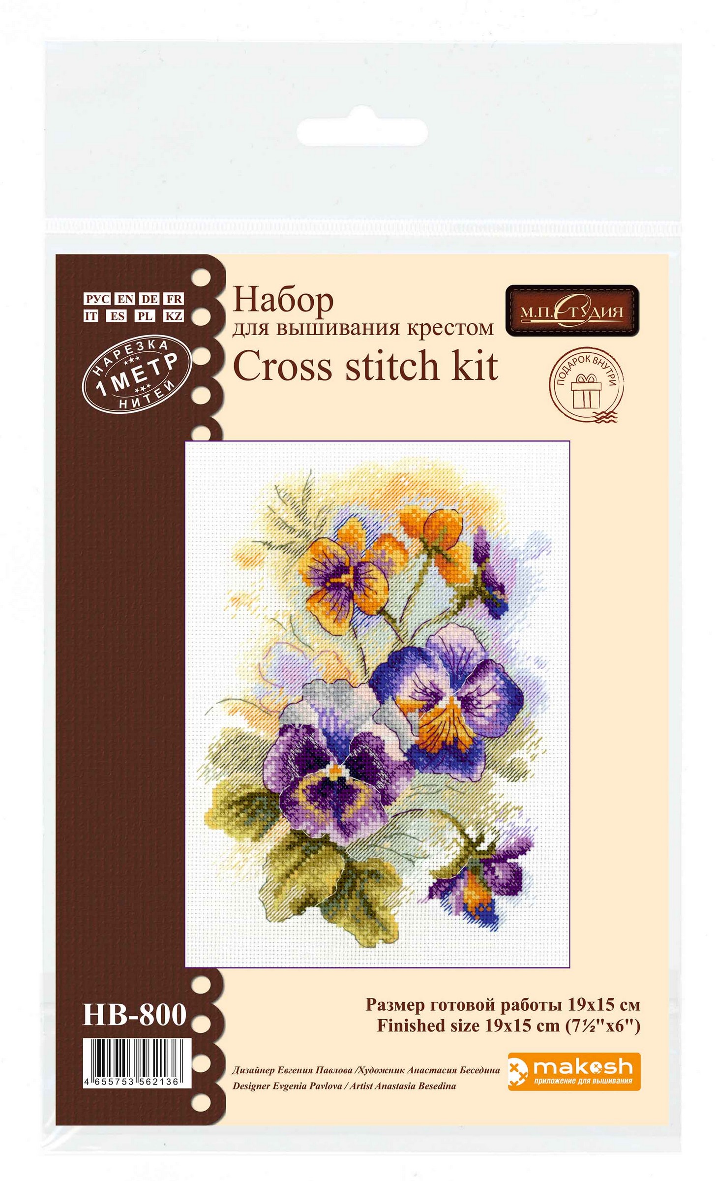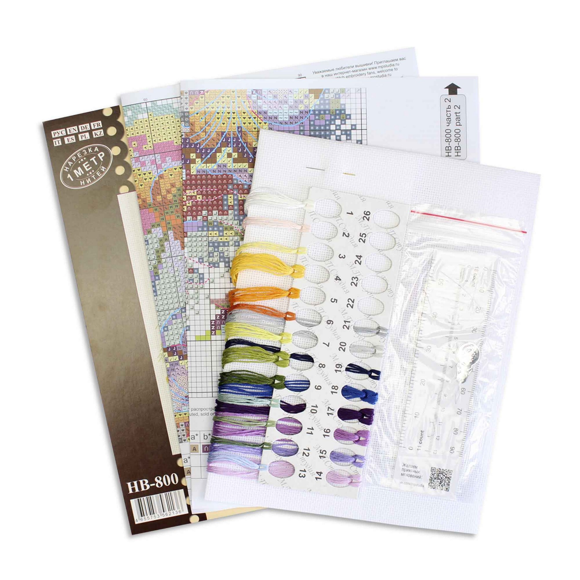 Размер: 19*15 см. В состав набора: белая хлопчатобумажная канва 16 каунта, нитки мулине Гамма 21 цвет, разобранные на органайзере, игла, бумажная цвето-символьная схема и электронная схема Makosh, вышивальная линейка, нитковдеватель, руководство по вышиванию..