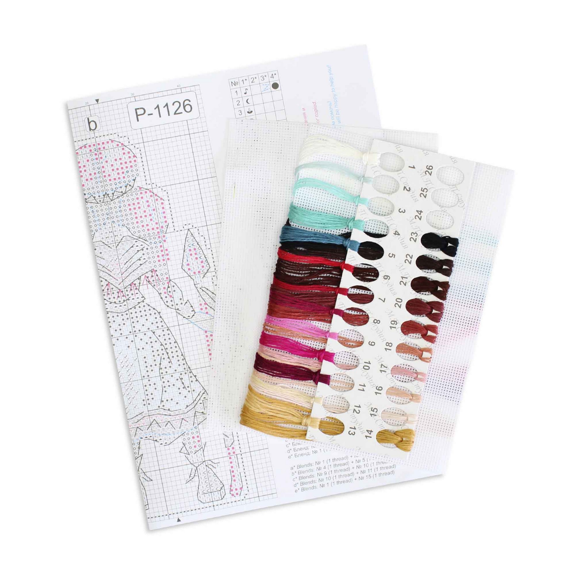 В состав набора входит: белая пластиковая канва 14 каунта, нитки мулине ПНК им.Кирова 23 цвета, разобранные на органайзере, игла, схема бумажная и электронная Makosh, руководство по вышиванию..