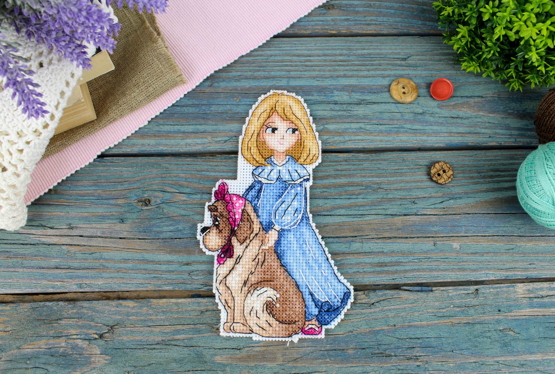 В состав набора входит: белая пластиковая канва 14 каунта, нитки мулине ПНК им.Кирова 20 цветов, разобранные на органайзере, игла, схема бумажная и электронная Makosh, руководство по вышиванию..