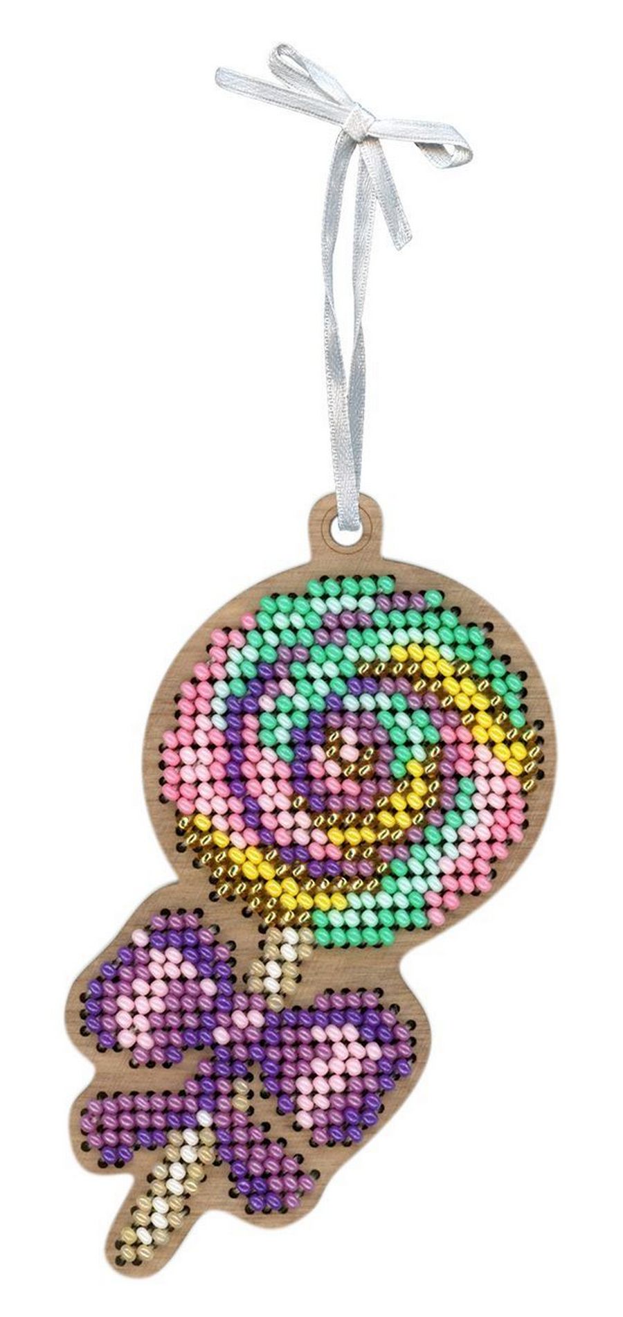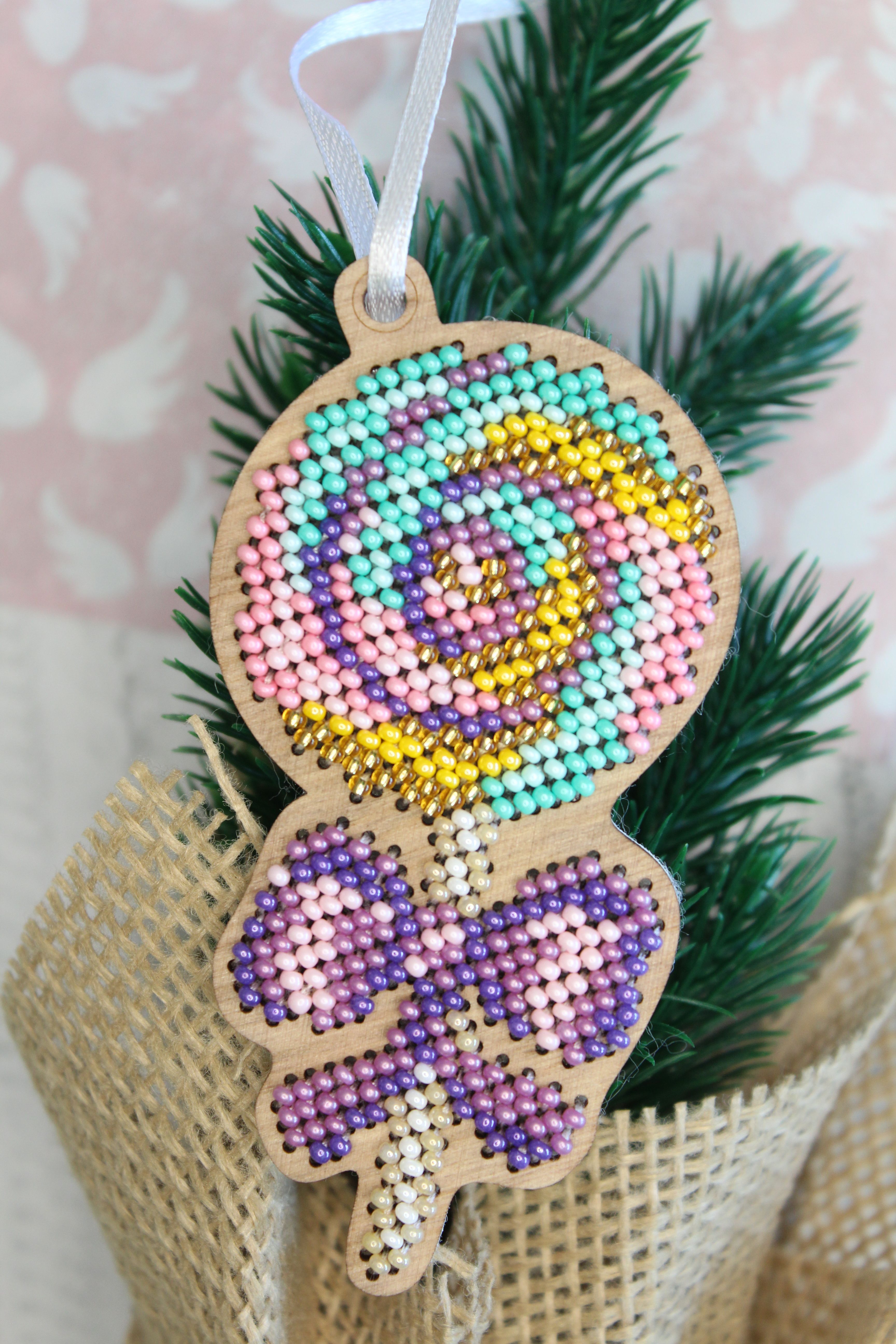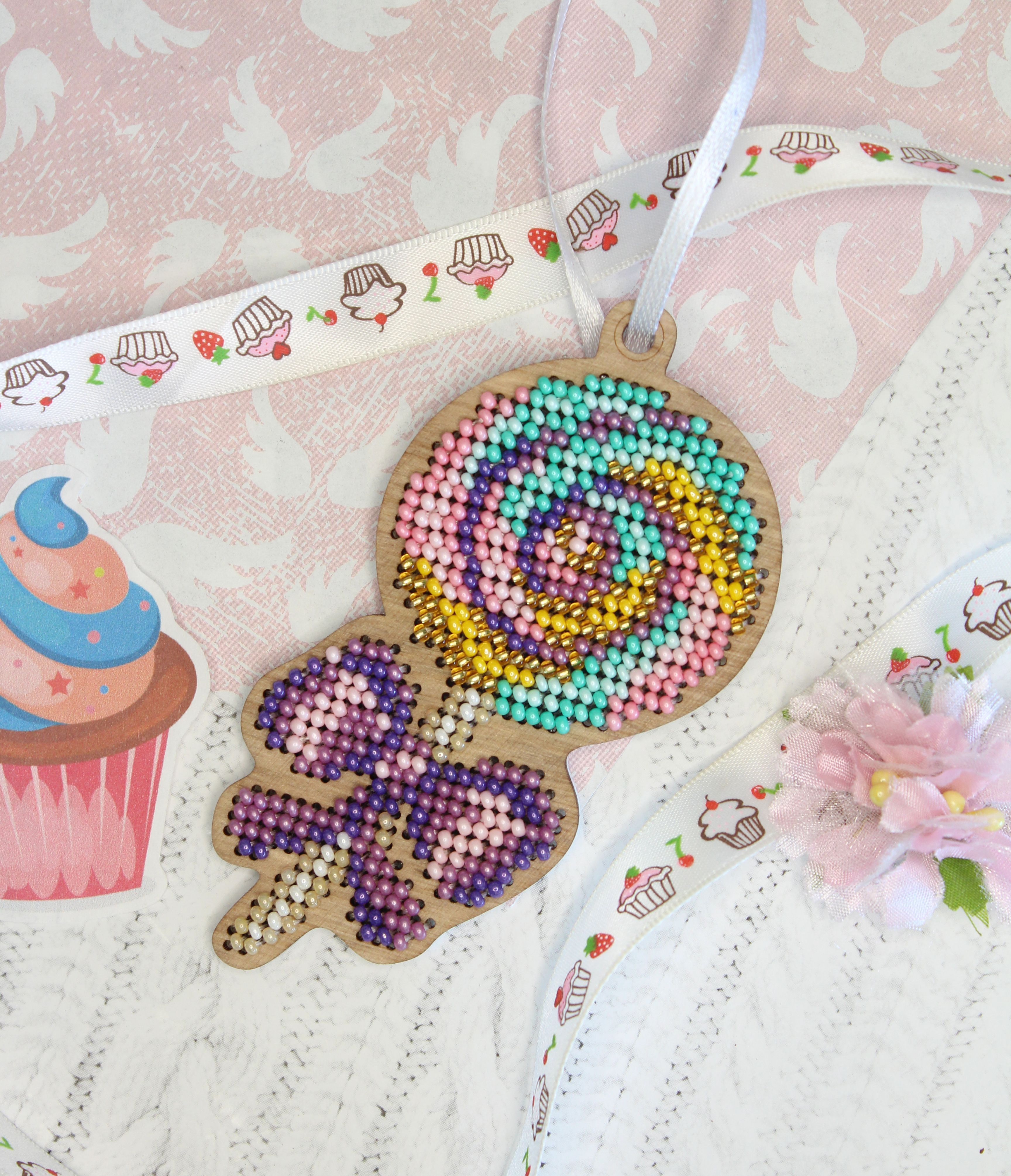 Представляем Вашему вниманию набор для вышивания от ТМ Щепка, М.П. Студия, Ёлочная игрушка. Леденец. Артикул: О-063. Состав: ттонированная перфорированная основа из фанеры, бисер Preciosa 10 цветов, белый фетр для обработки изнаночной стороны, атласная лента, бумажная двухцветная символьная схема, игла, подробная инструкция..