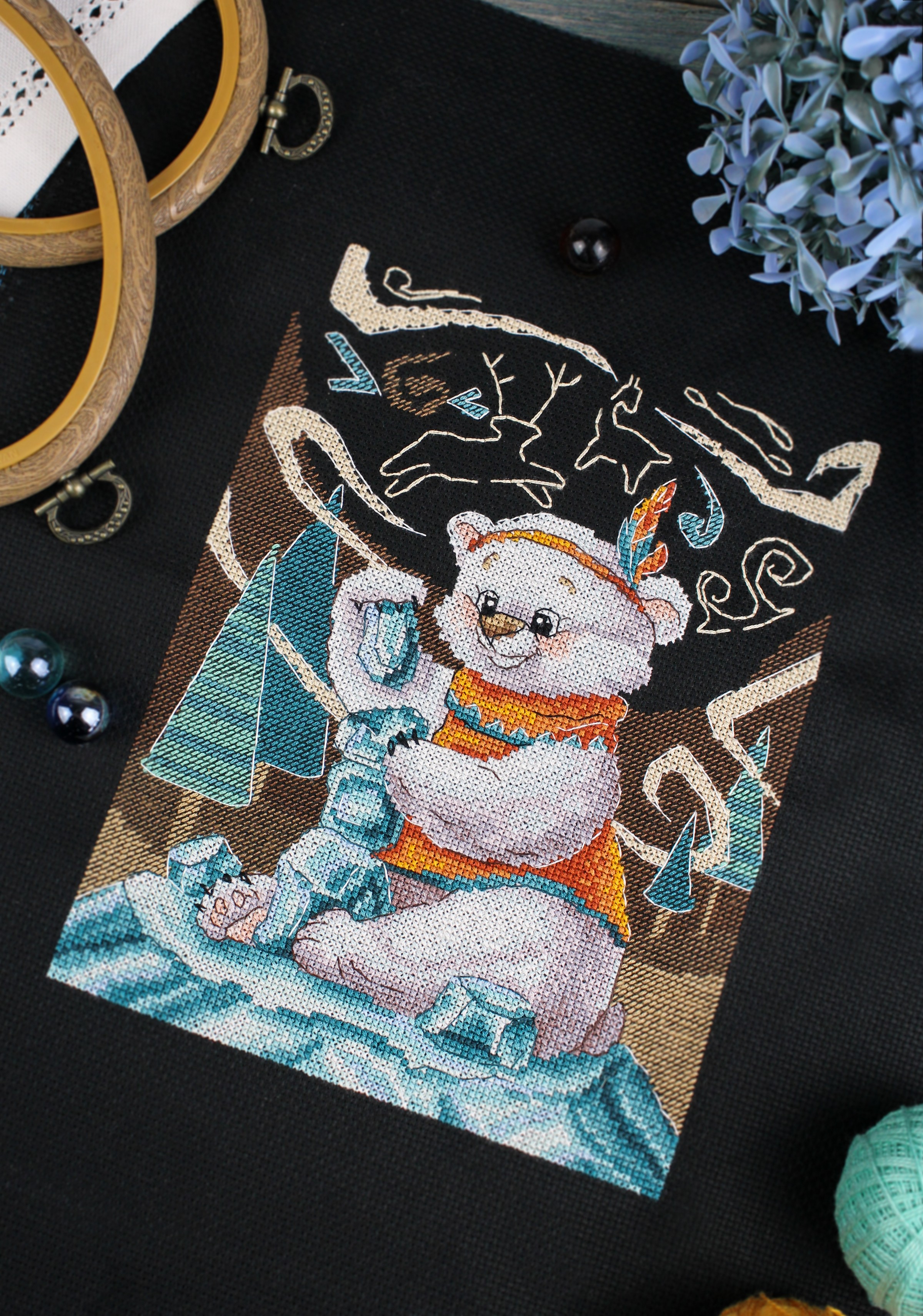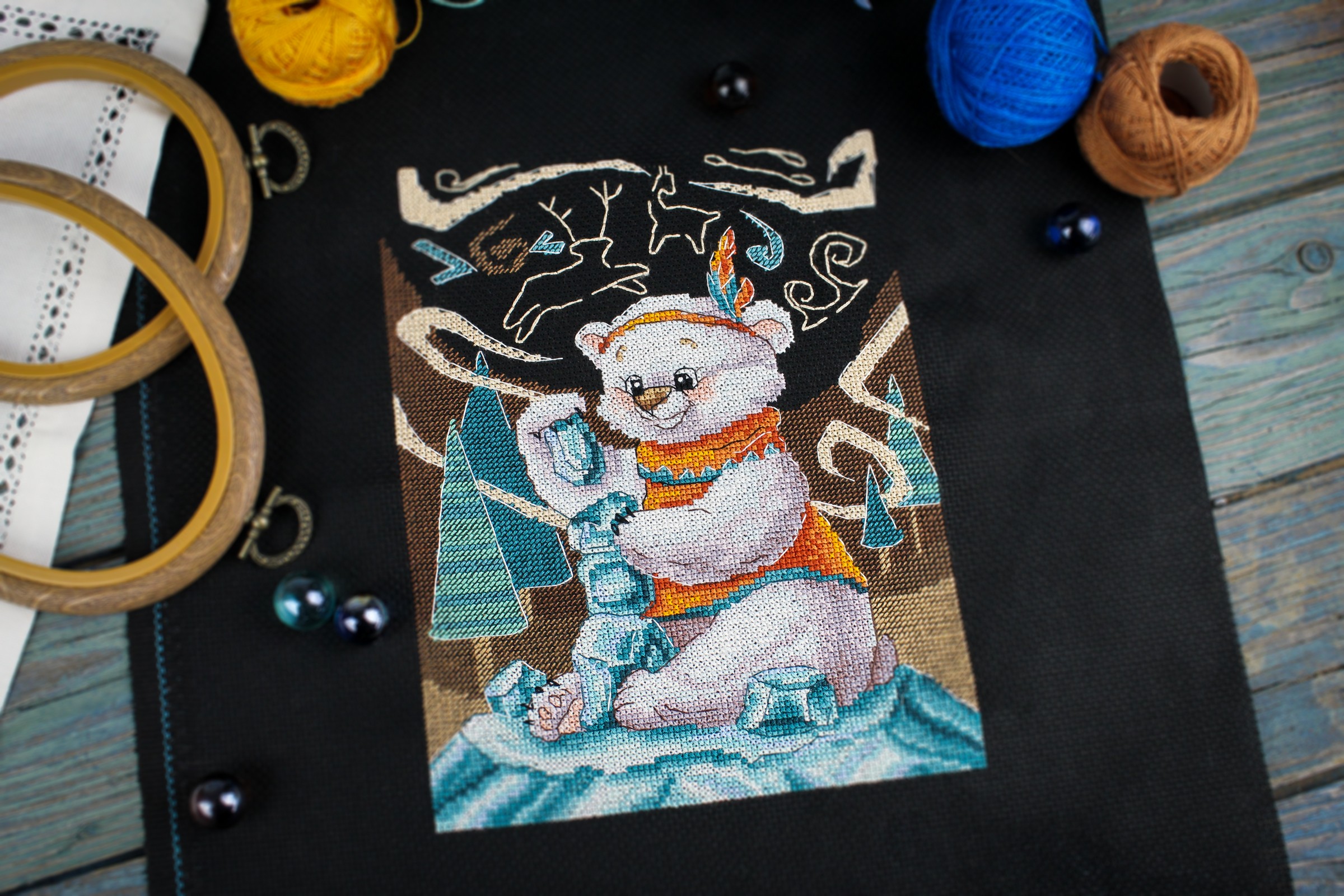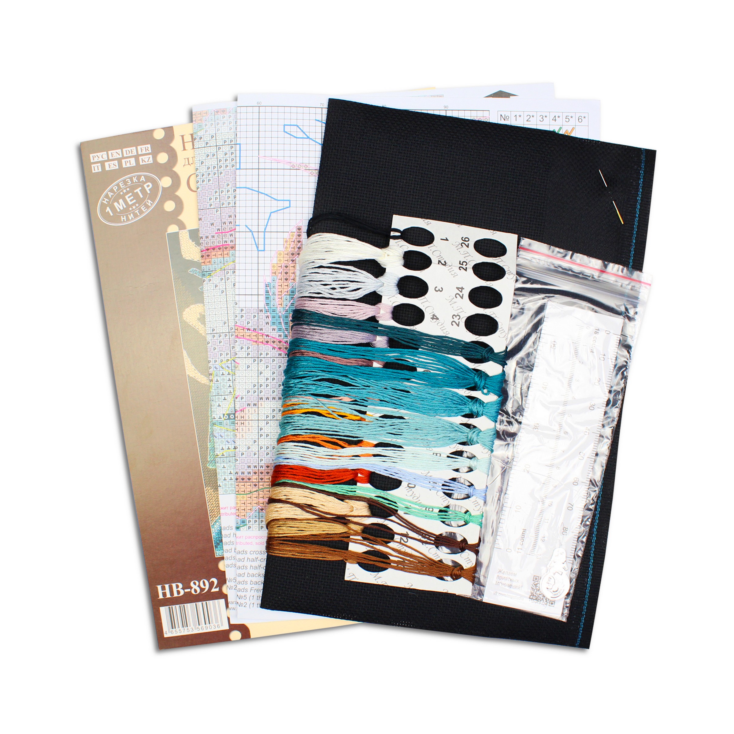 Размер: 20*15 см. В состав набора входит: черная хлопчатобумажная канва 16 каунта, нитки мулине Гамма 22 цвета, разобранные на органайзере, игла, бумажная цвето-символьная схема и электронная схема Makosh, вышивальная линейка, нитковдеватель, руководство по вышиванию.