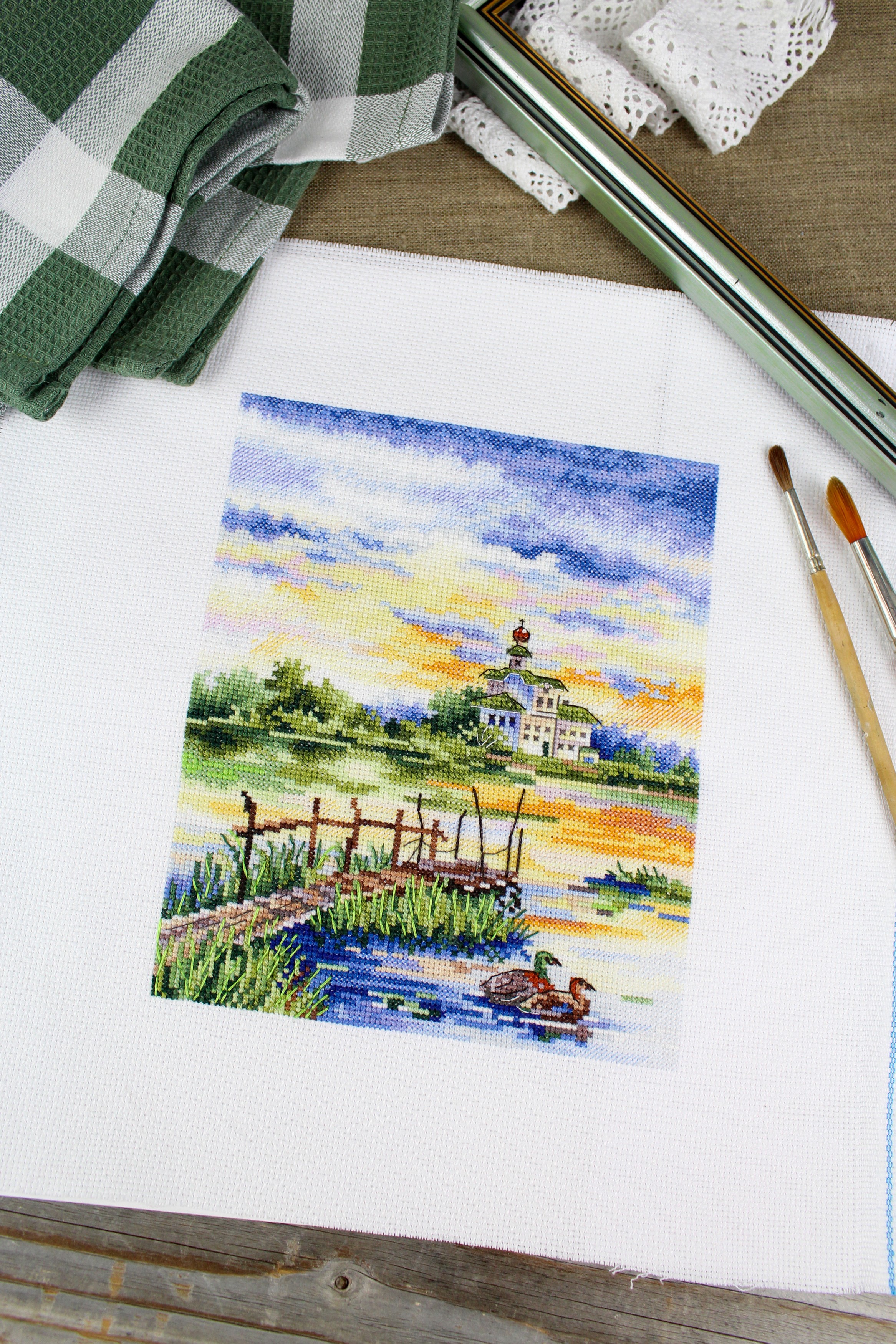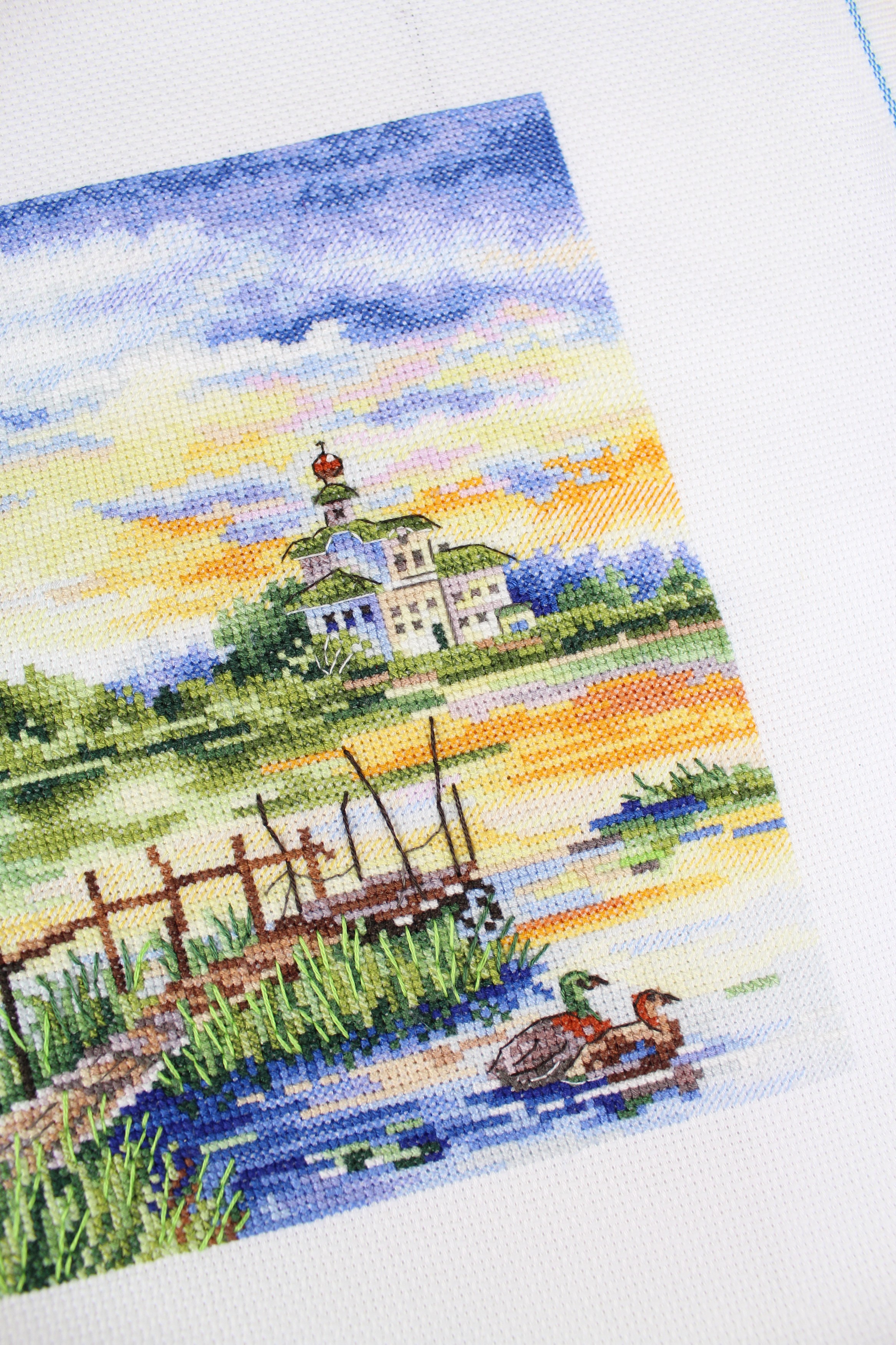 Размер: 20*16 см. В состав набора входит: белая хлопчатобумажная канва 16 каунта, нитки мулине Гамма 35 цветов, разобранные на органайзере, игла, бумажная цвето-символьная схема и электронная схема Makosh, вышивальная линейка, нитковдеватель, руководство по вышиванию...