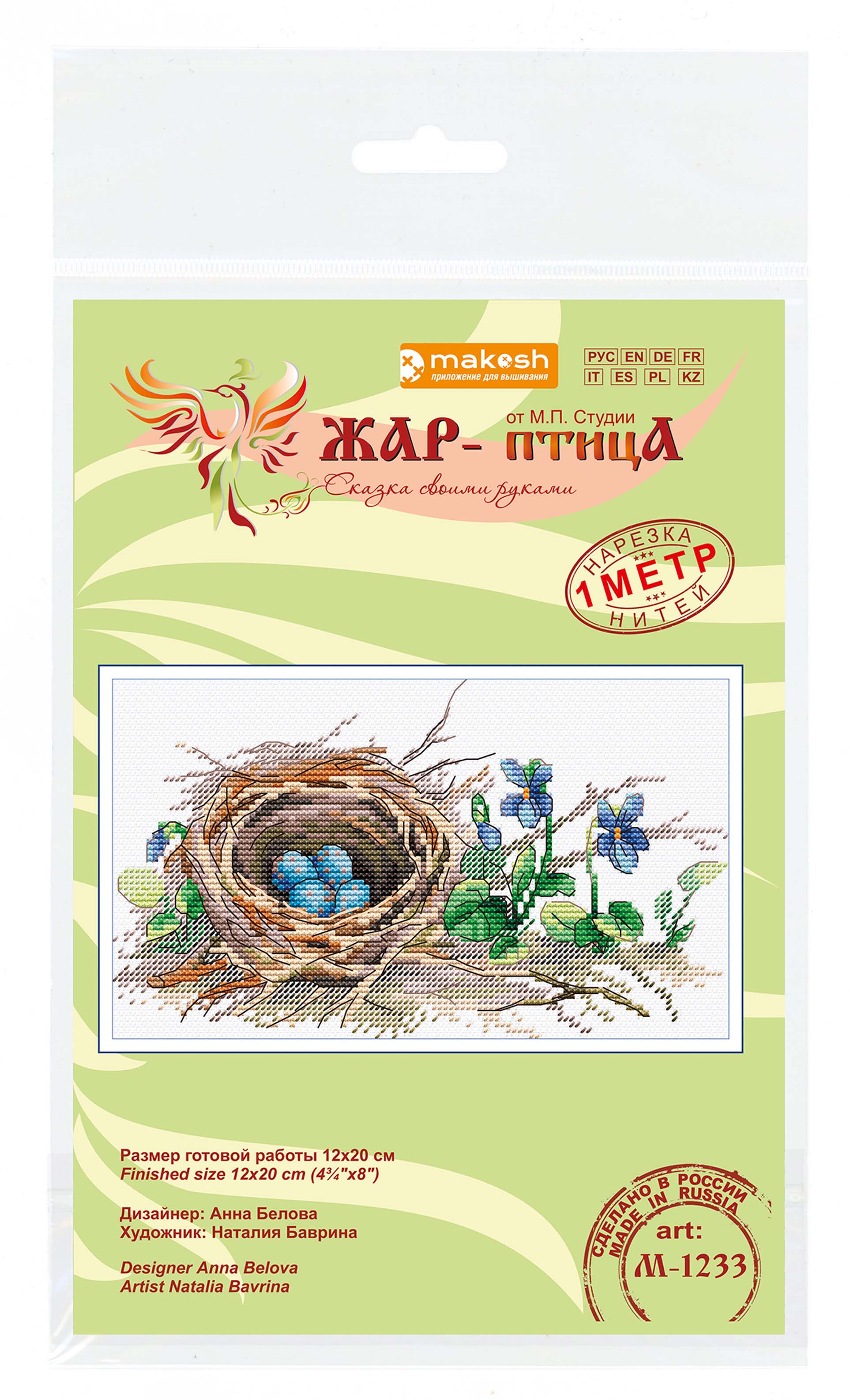 В состав набора входит: белая канва 14 каунта, нитки мулине ПНК им.Кирова 20 цветов, разобранные на органайзере, игла, схема бумажная и электронная Makosh, руководство по вышиванию. Размер 12х20 см. Техника вышивания счетный крест. Рисунок на канву не нанесен.