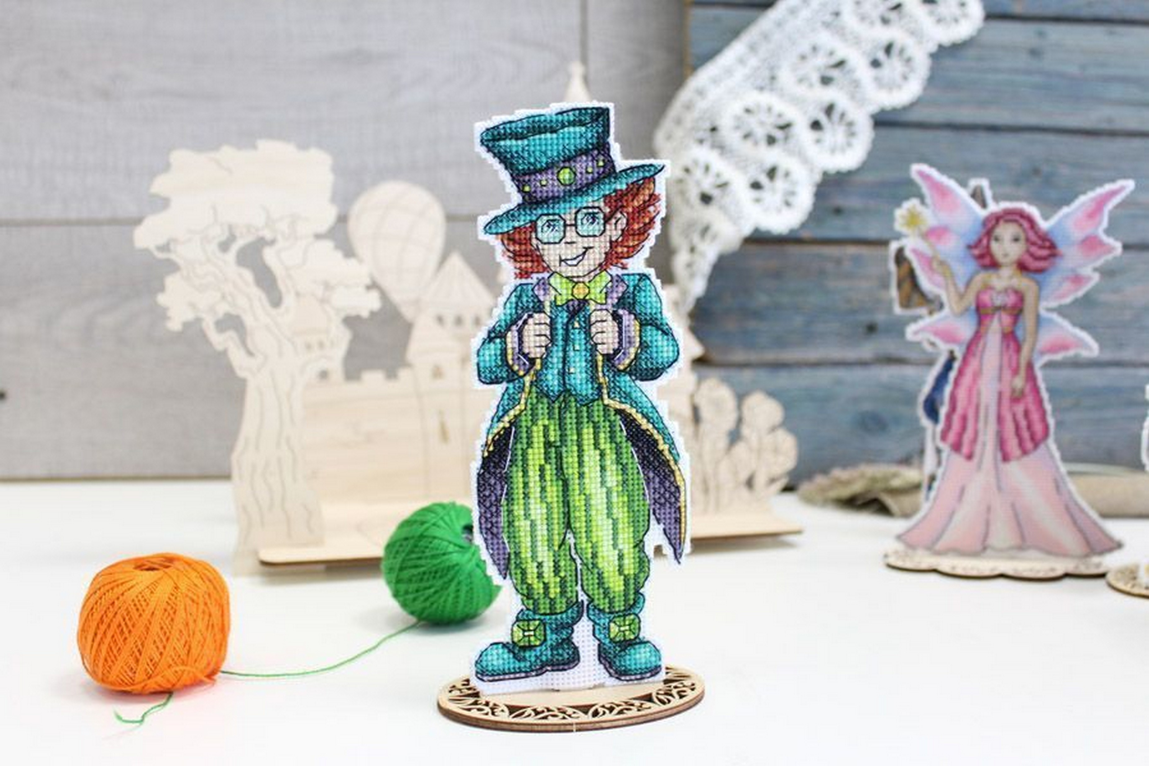 Размер 20х8 см. В состав набора входит: пластиковая канва 14 каунта, нитки мулине ПНК им.Кирова 20 цветов, разобранные на органайзере, игла, схема и руководство по вышиванию.