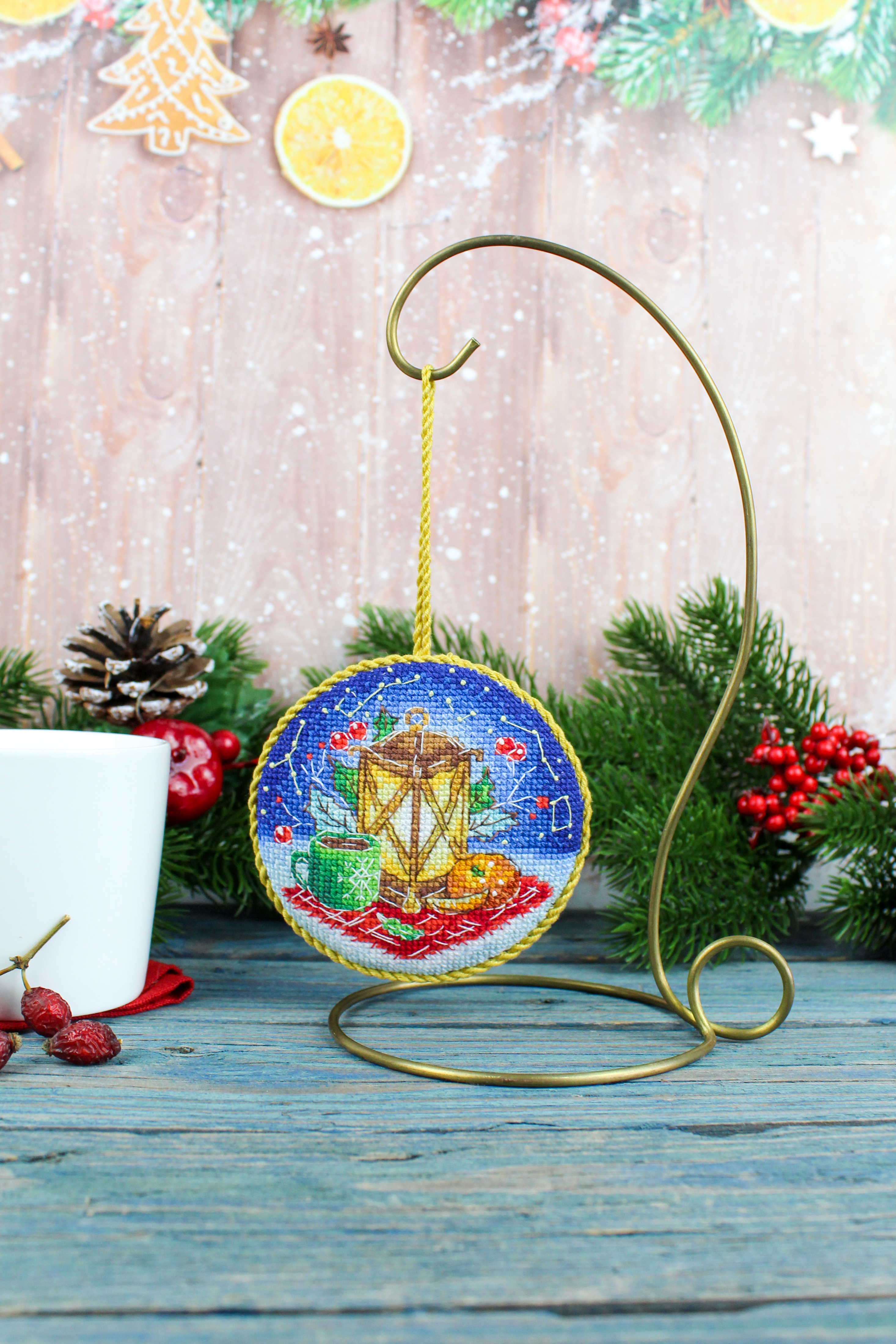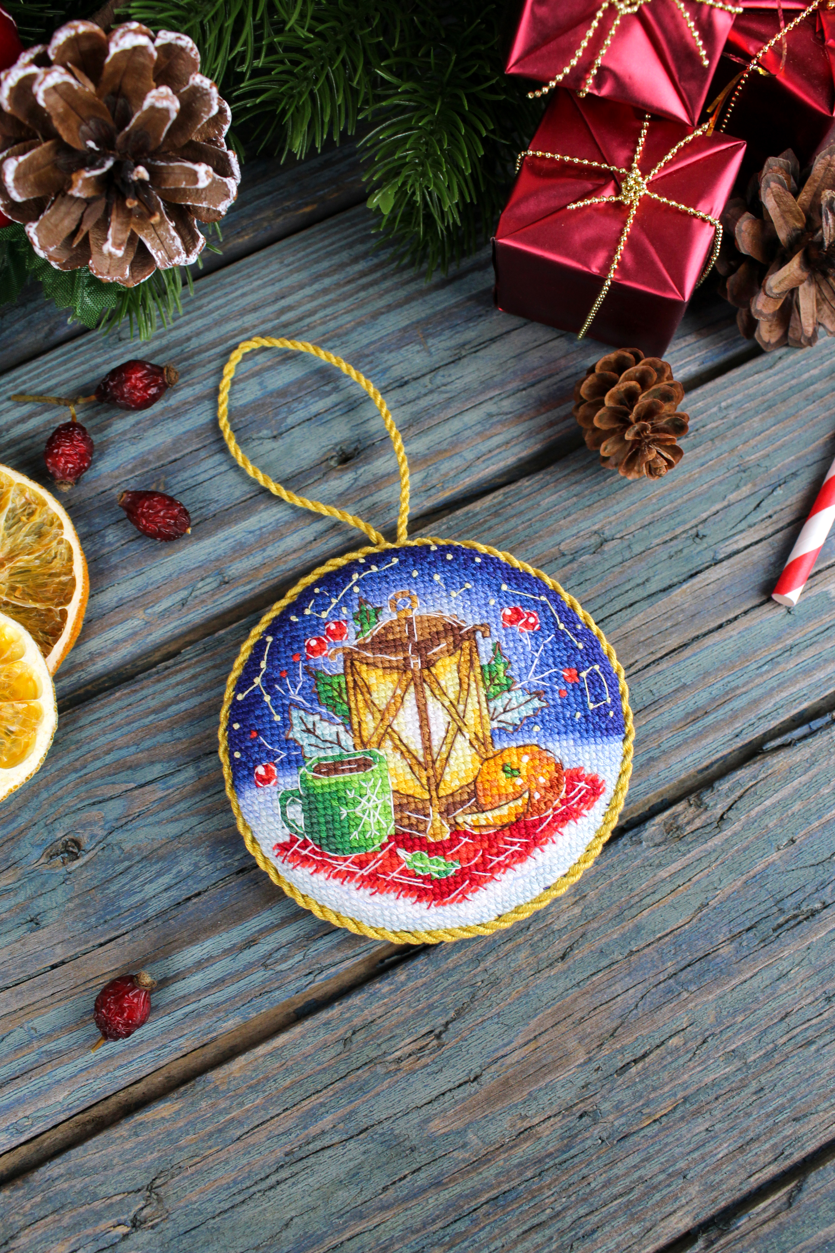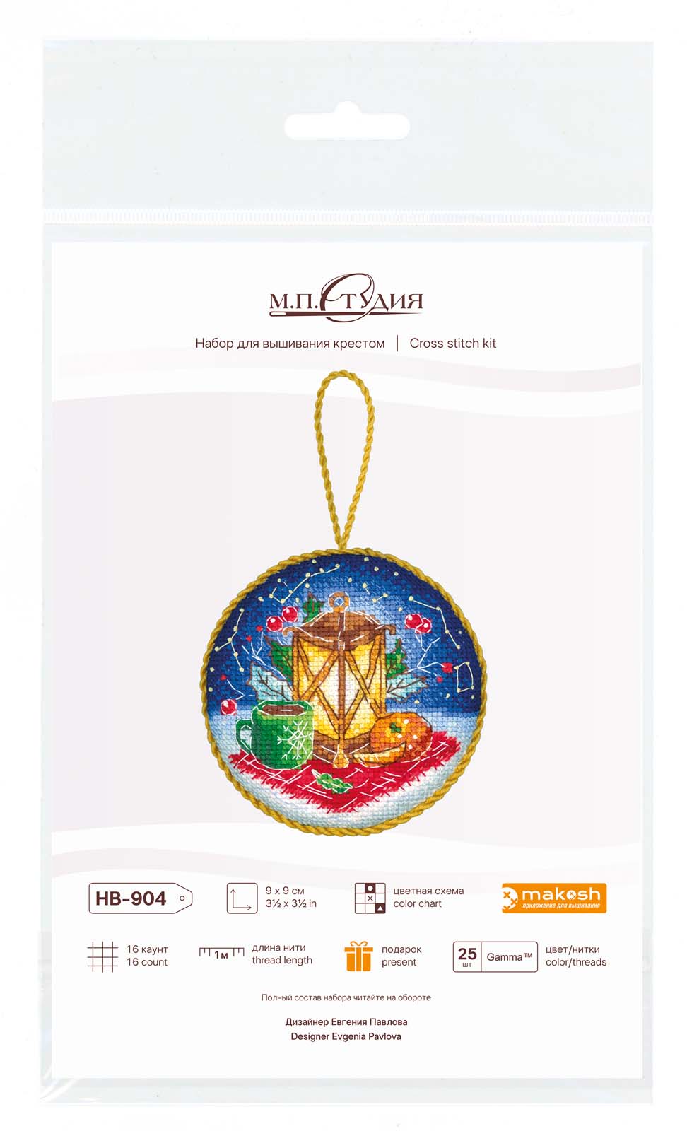 Размер: 9*9 см. В состав набора вышивки входит: белая хлопчатобумажная канва 16 каунта, нитки мулине Гамма 25 цветов, разобранные на органайзере, игла, бумажная цвето-символьная схема и электронная схема Makosh, вышивальная линейка, нитковдеватель, руководство по вышиванию. Техника вышивания: счетный крест.