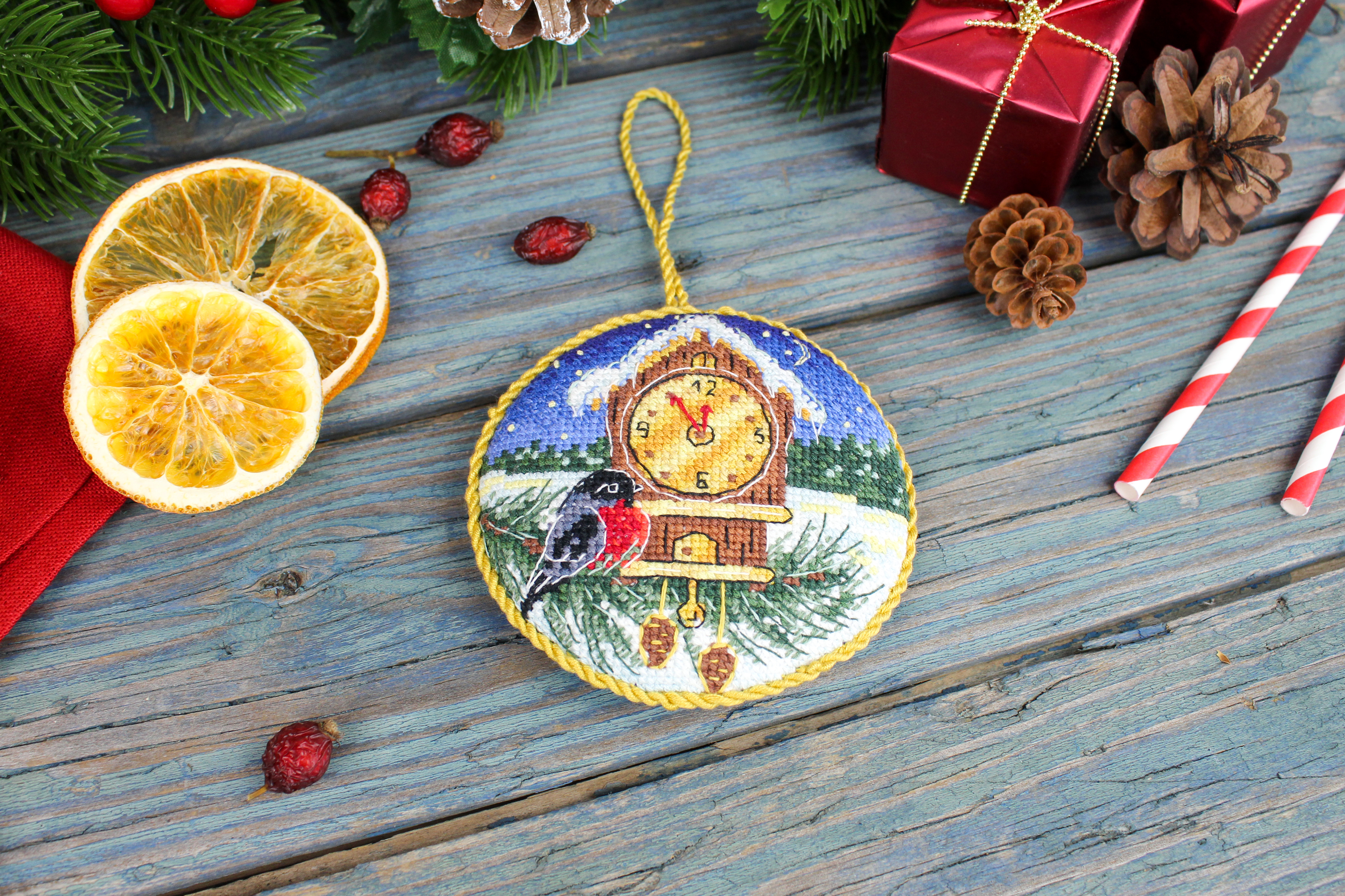 Полная зашивка. дополнительные элементы: Подарок, синтепон - 1 щтука, заготовка картонная - 1 штука, задний элемент синий цвет - 1 штука.