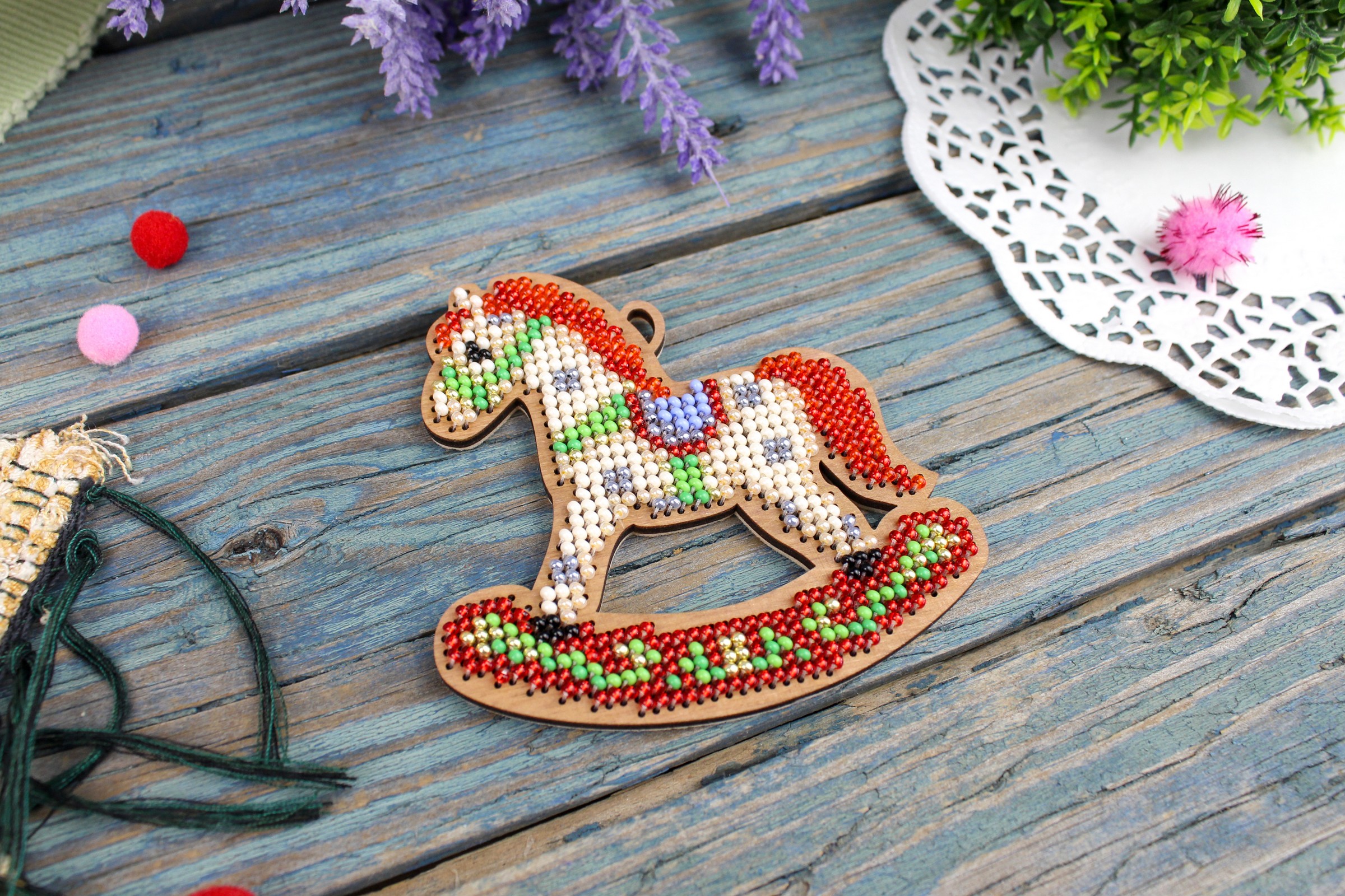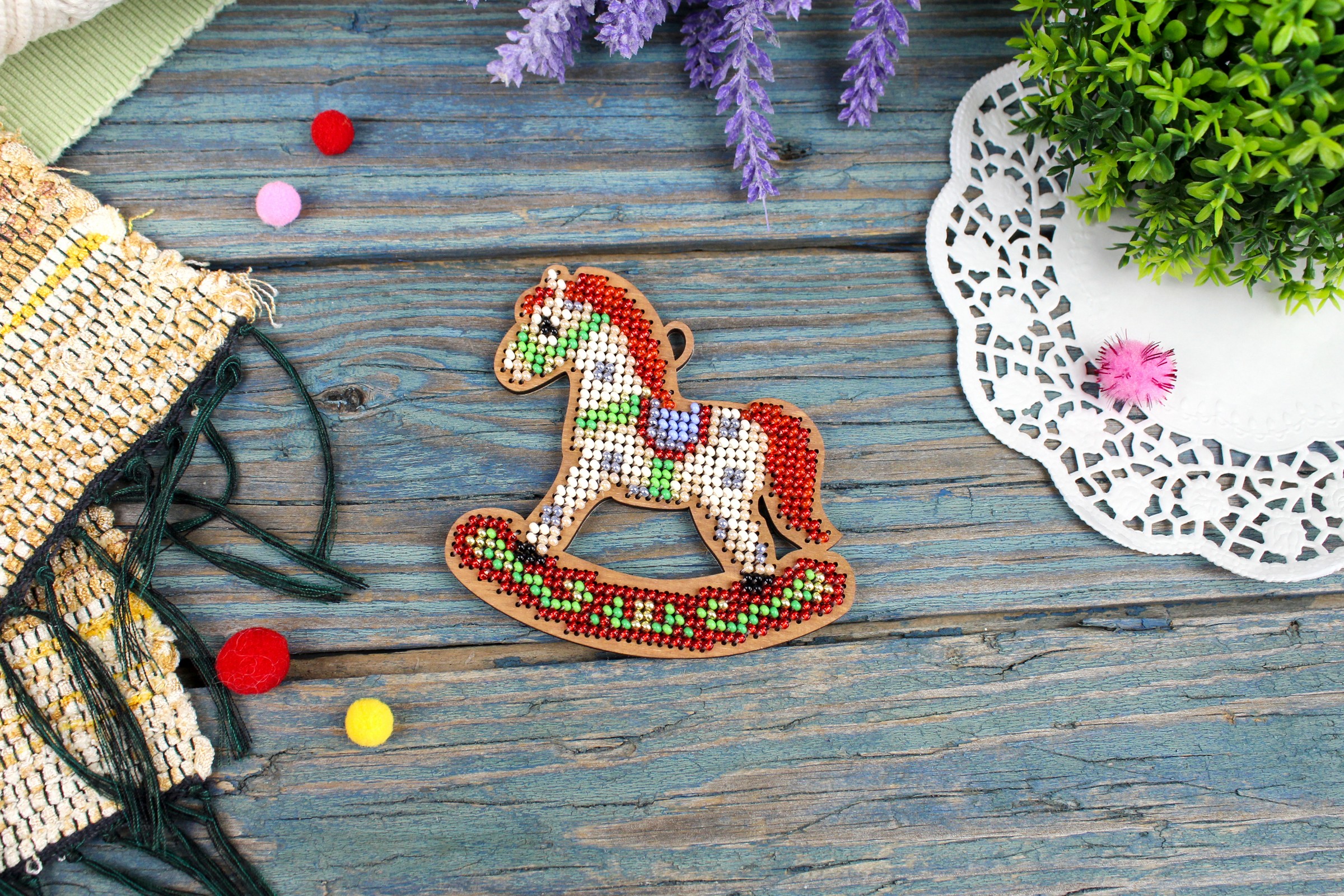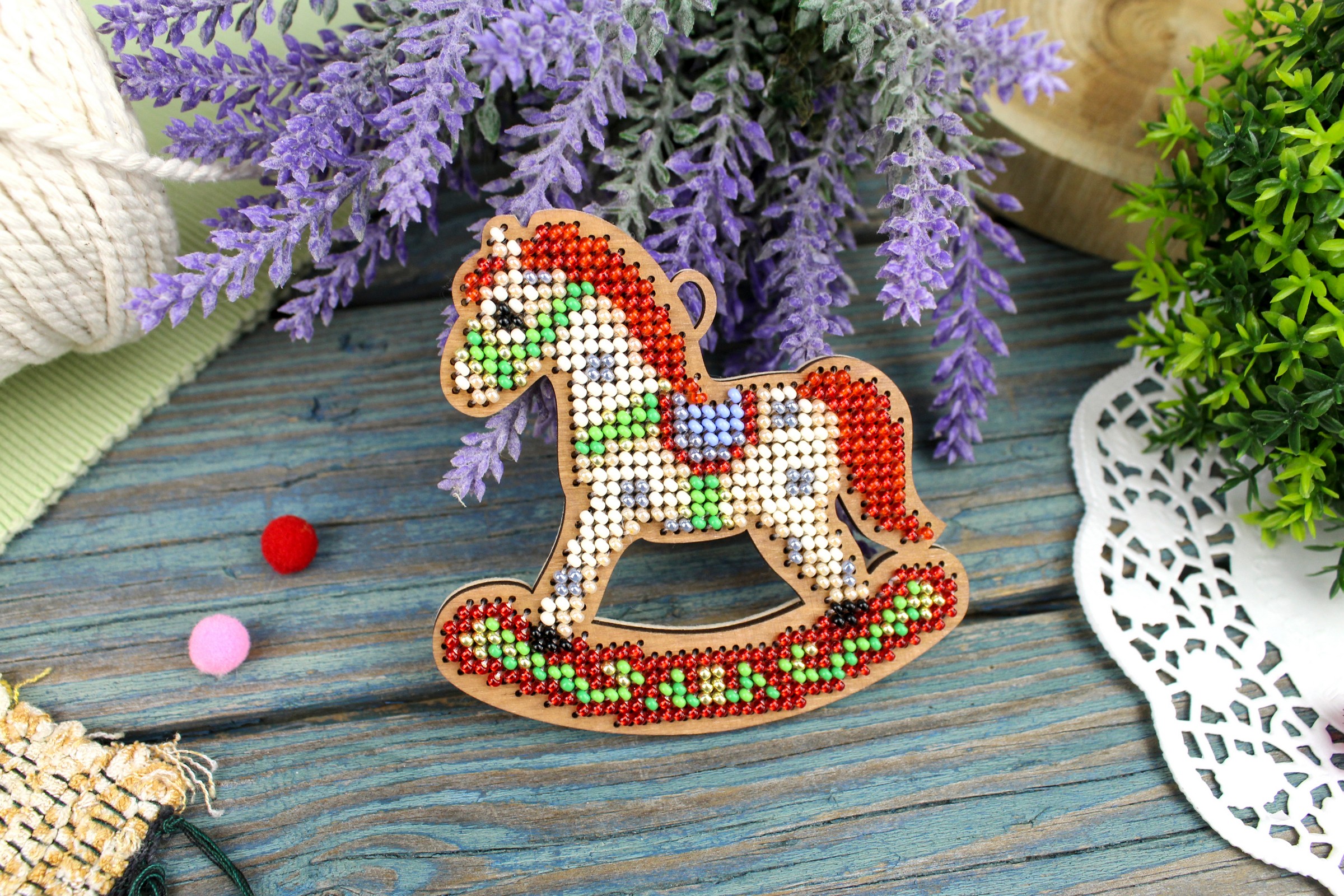 Артикул: О-153. Состав: перфорированная деревянная основа, 10 цветов бисера Preciosa, игла, лента, фетр для обработки изнанки, двухцветная символьная бумажная схема и электронная схема Makosh, инструкция по выполнению работы.