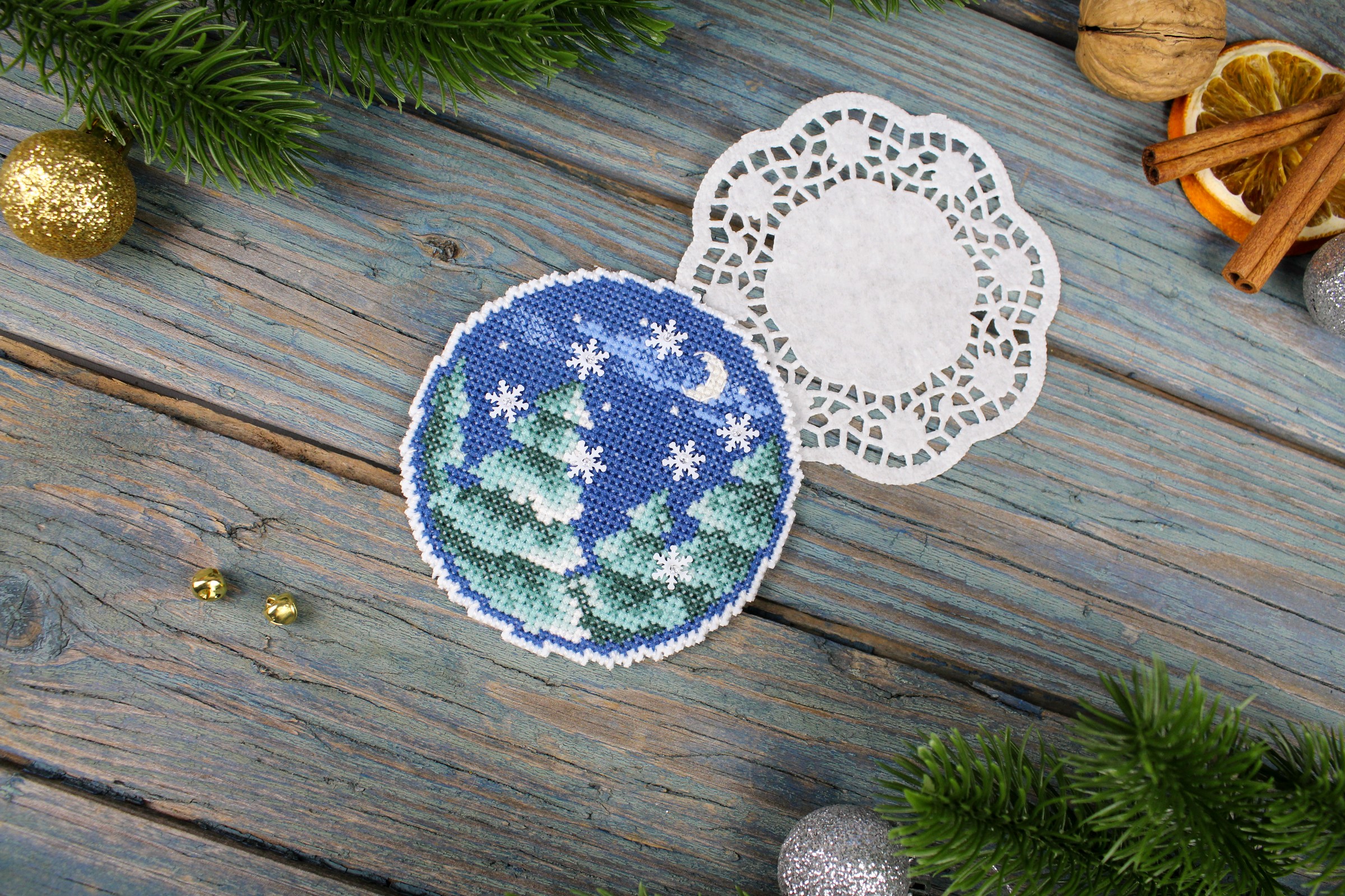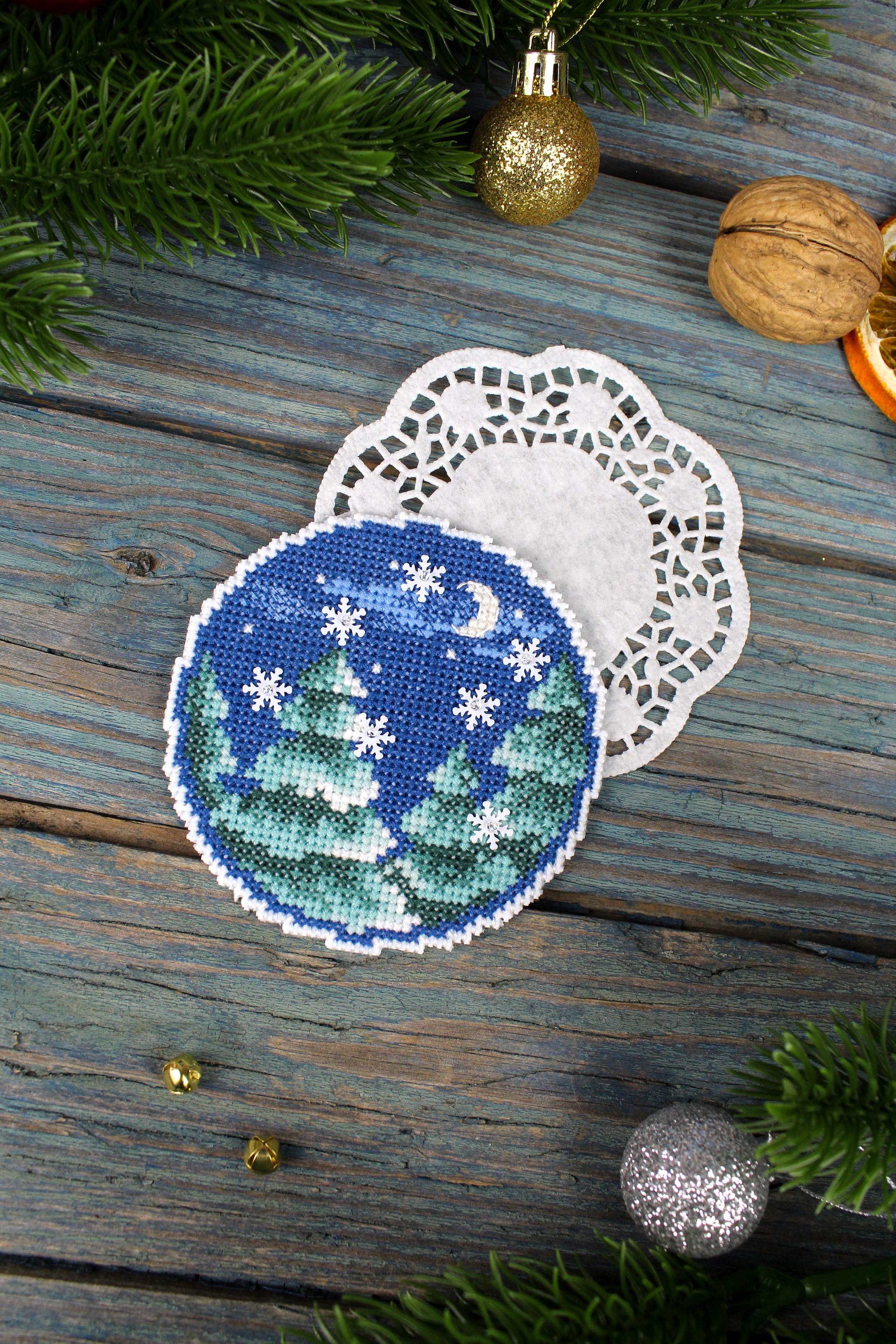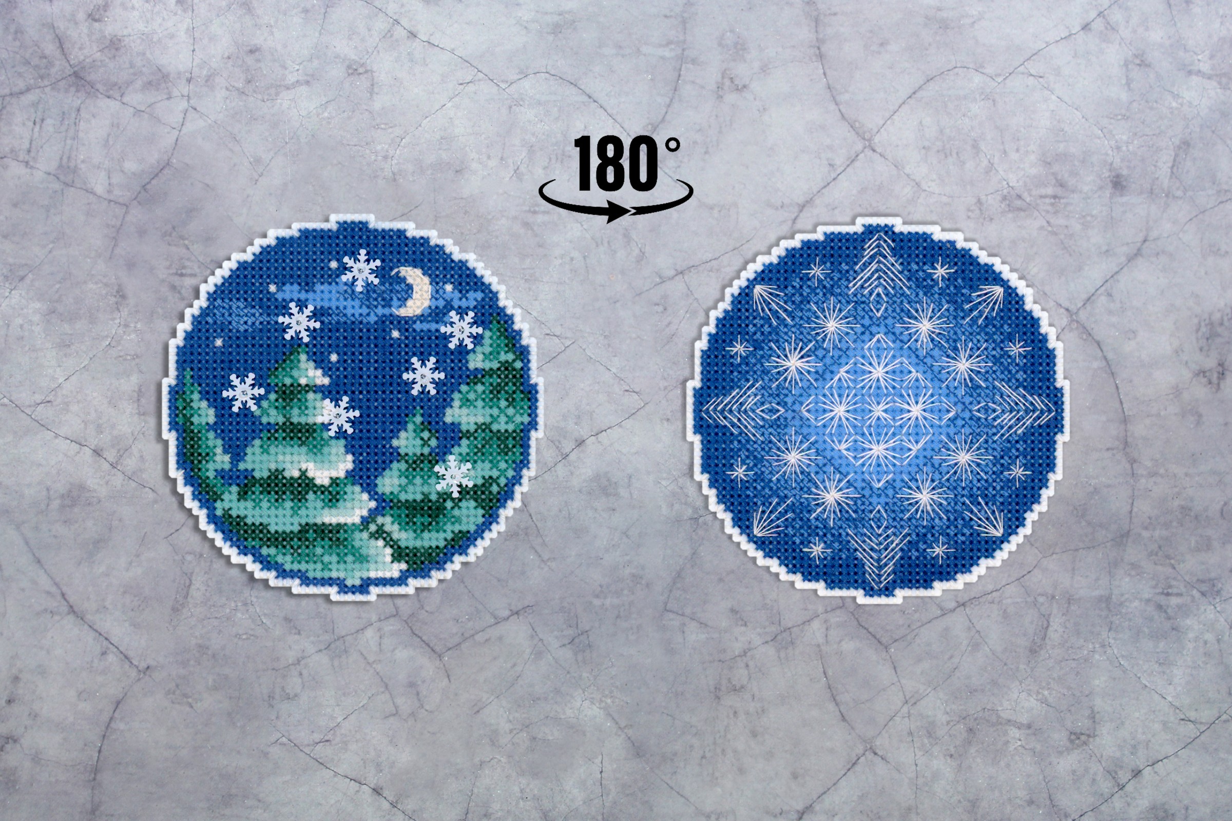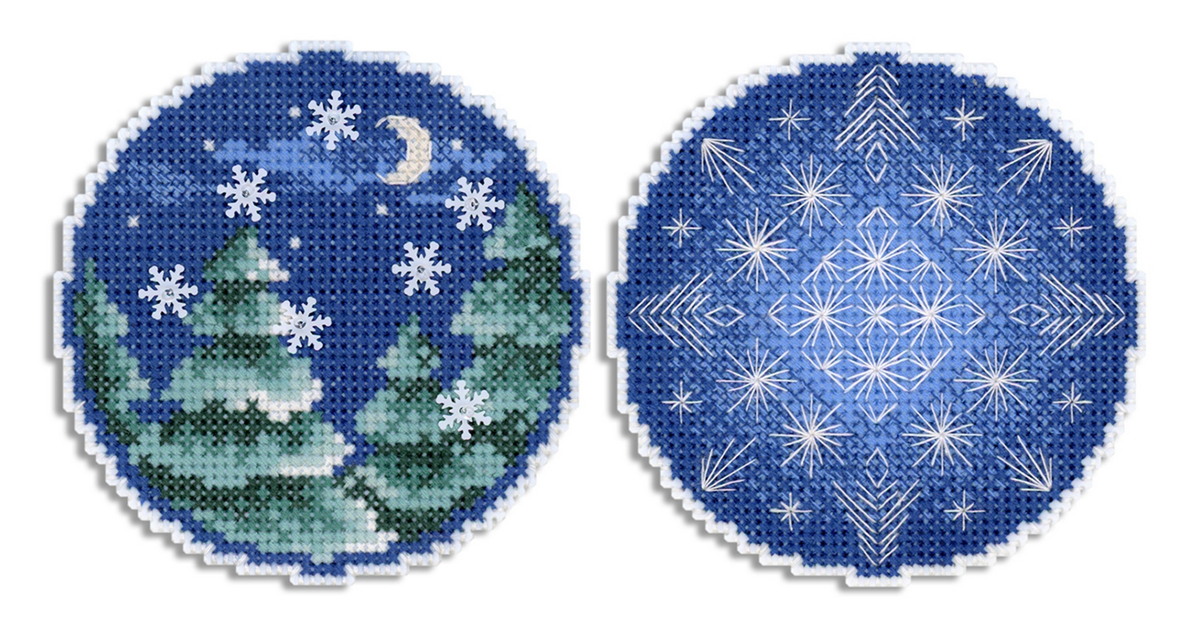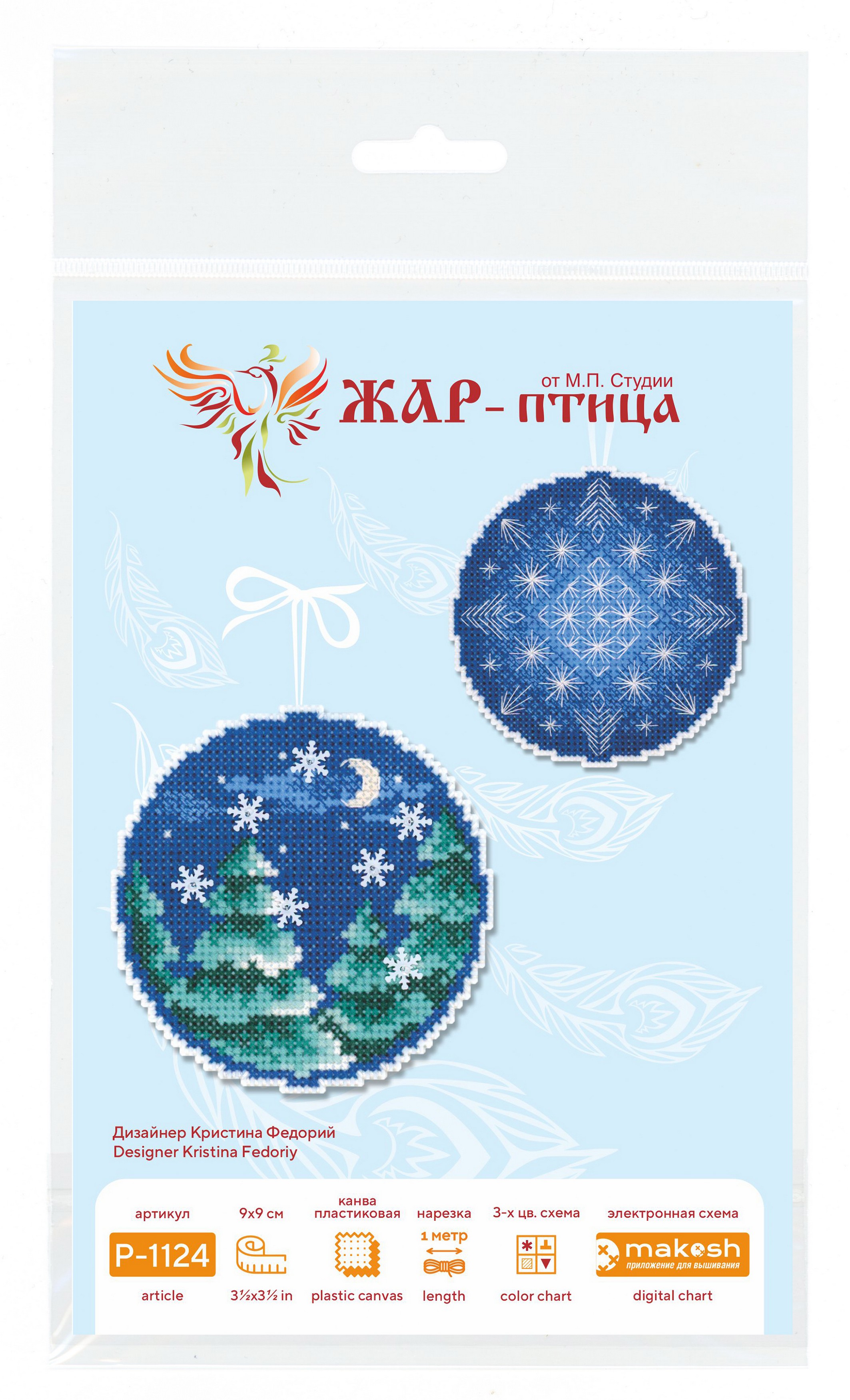 Размер 9х9 см. В состав набора вышивки входит: белая пластиковая канва 14 каунта, нитки мулине ПНК им.Кирова 8 цветов, разобранные на органайзере, бисер Preciosa 1 цвет, пайетки - 1 цвет, игла, схема бумажная и электронная Makosh, руководство по вышиванию. Техника вышивания: счетный коест. Полная зашивка.