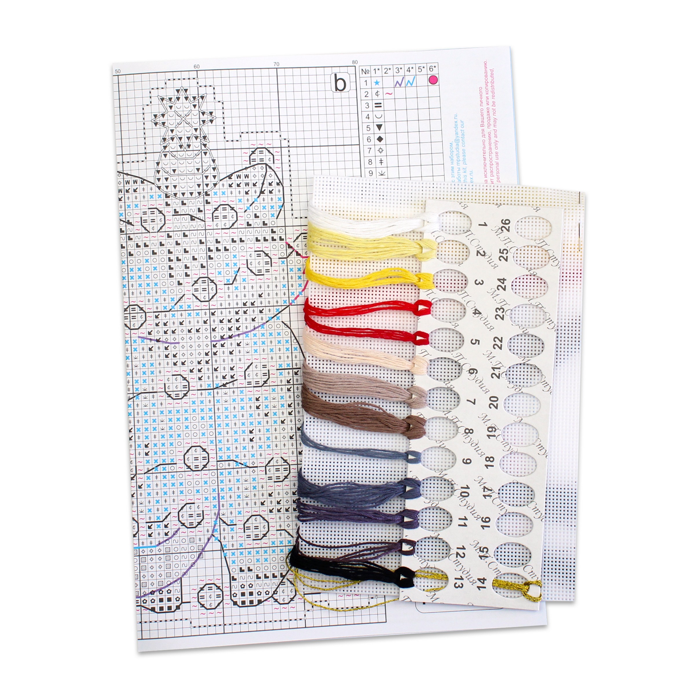 Размер 12х7 см. В состав набора вышивки входит: белая пластиковая канва 14 каунта, нитки мулине ПНК им.Кирова 13 цветов, разобранные на органайзере, нитки металлик - 1 цвет, игла, схема бумажная и электронная Makosh, руководство по вышиванию. Техника вышивания: счетный коест. Полная зашивка.