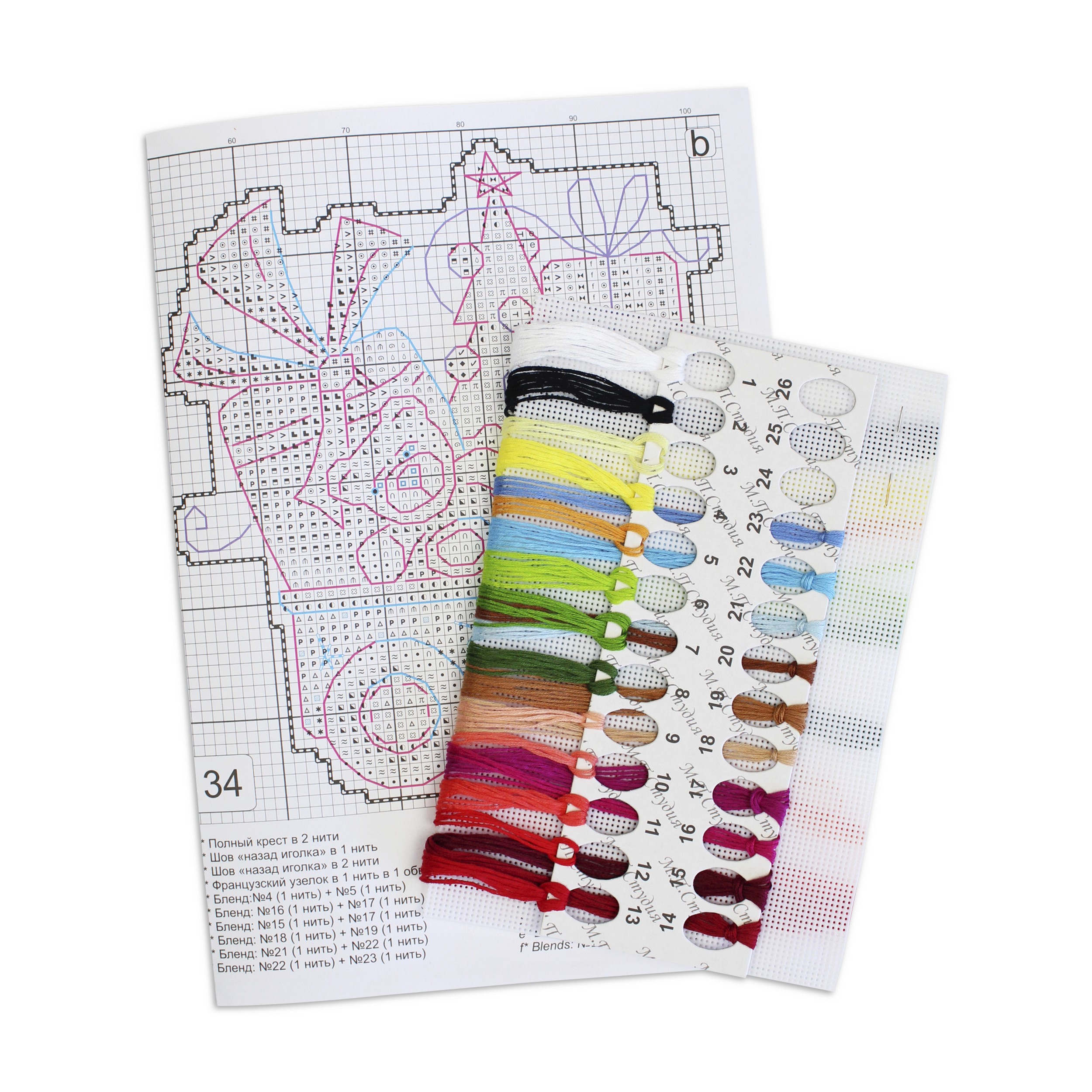 Размер 10х9 см. В состав набора вышивки входит: белая пластиковая канва 14 каунта, нитки мулине ПНК им.Кирова 23 цвета, разобранные на органайзере, игла, схема бумажная и электронная Makosh, руководство по вышиванию. Техника вышивания: счетный коест. Частичная зашивка.