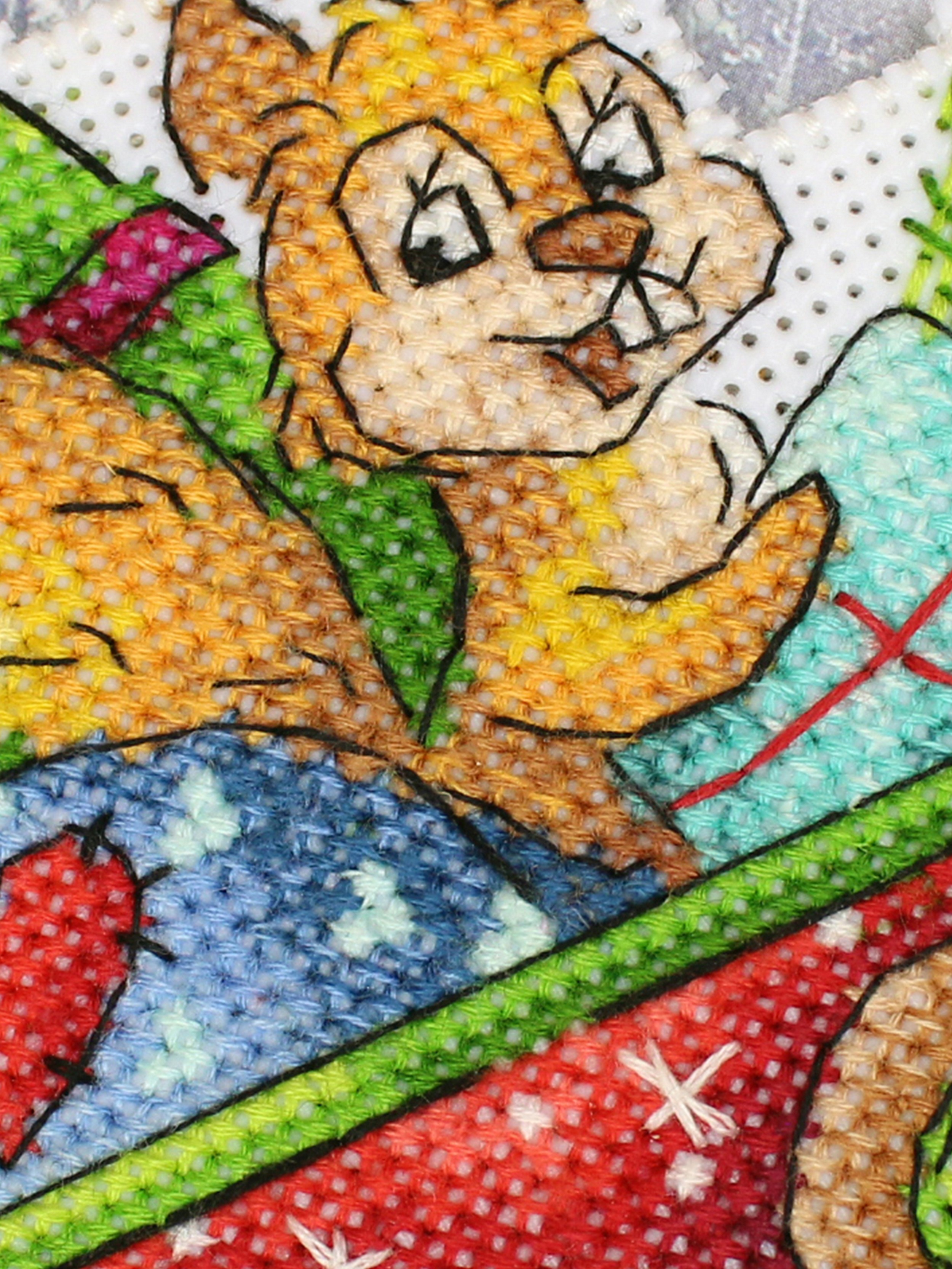 Обе стороны мышки вышиваются согласно схеме, затем вырезаются по контуру, обозначенному в руководстве по вышиванию, и сшиваются изнаночными сторонами внутрь.