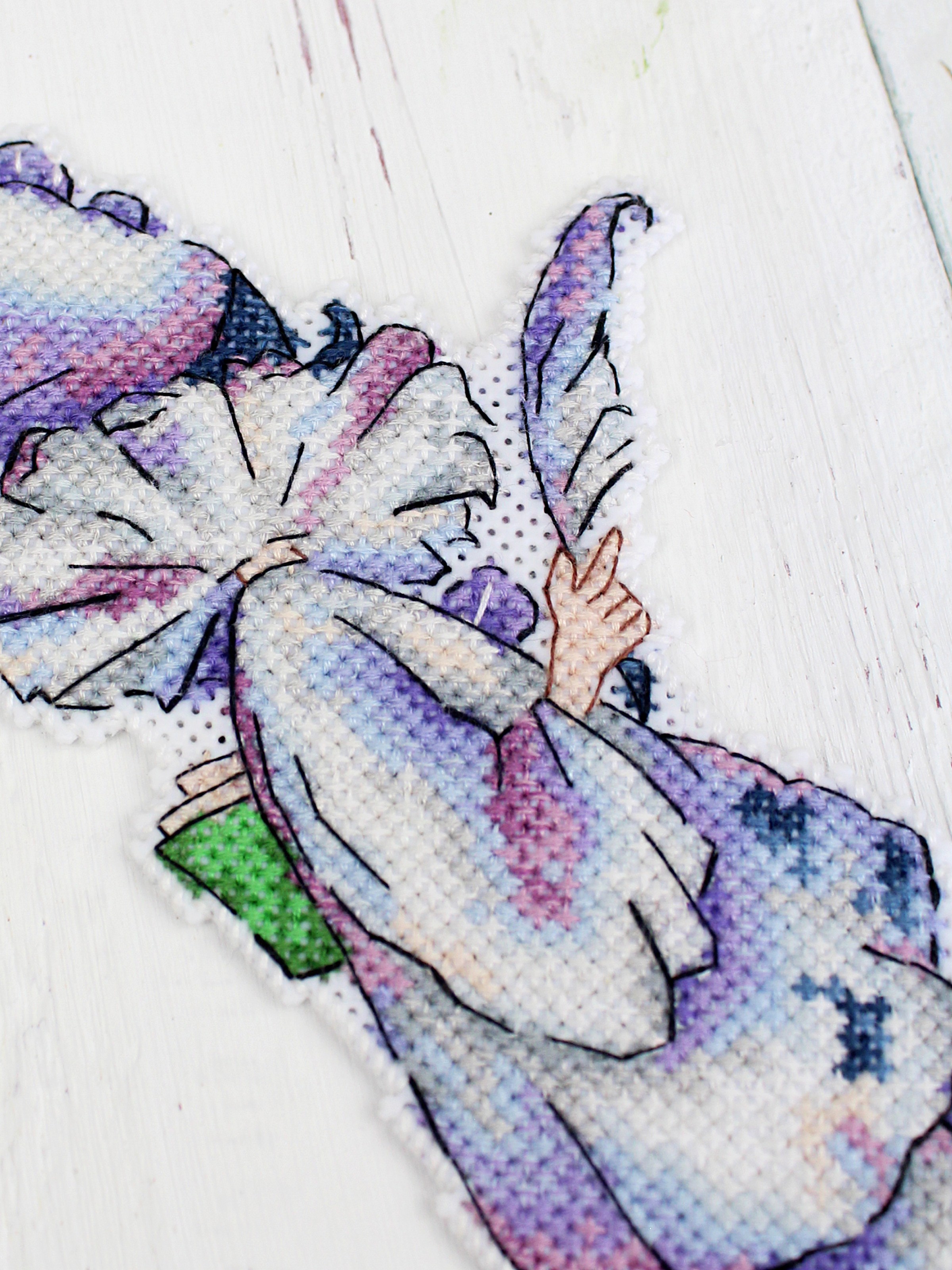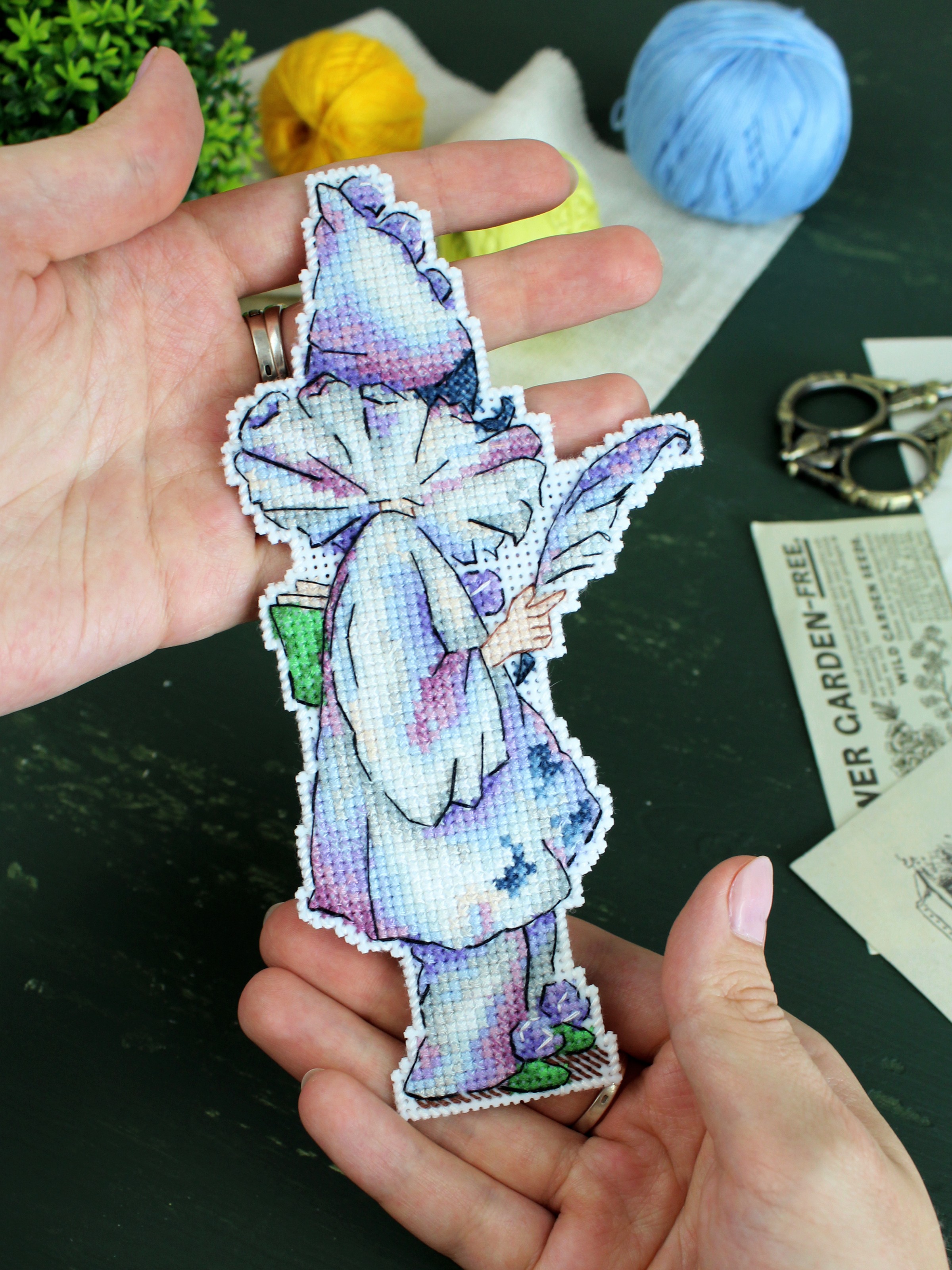 Размер 17х8 см.В состав набора вышивки входит: белая пластиковая канва 14 каунта, нитки мулине ПНК им.Кирова 19 цветов, разобранные на органайзере, игла, схема бумажная и электронная Makosh, руководство по вышиванию. Рисунок на канву не нанесен. Техника вышивания: счетный коест. Полная зашивка. Обе стороны вышивки вышиваются согласно схеме, затем вырезаются по контуру, обозначенному в руководстве по вышиванию, и сшиваются изнаночными сторонами внутрь.