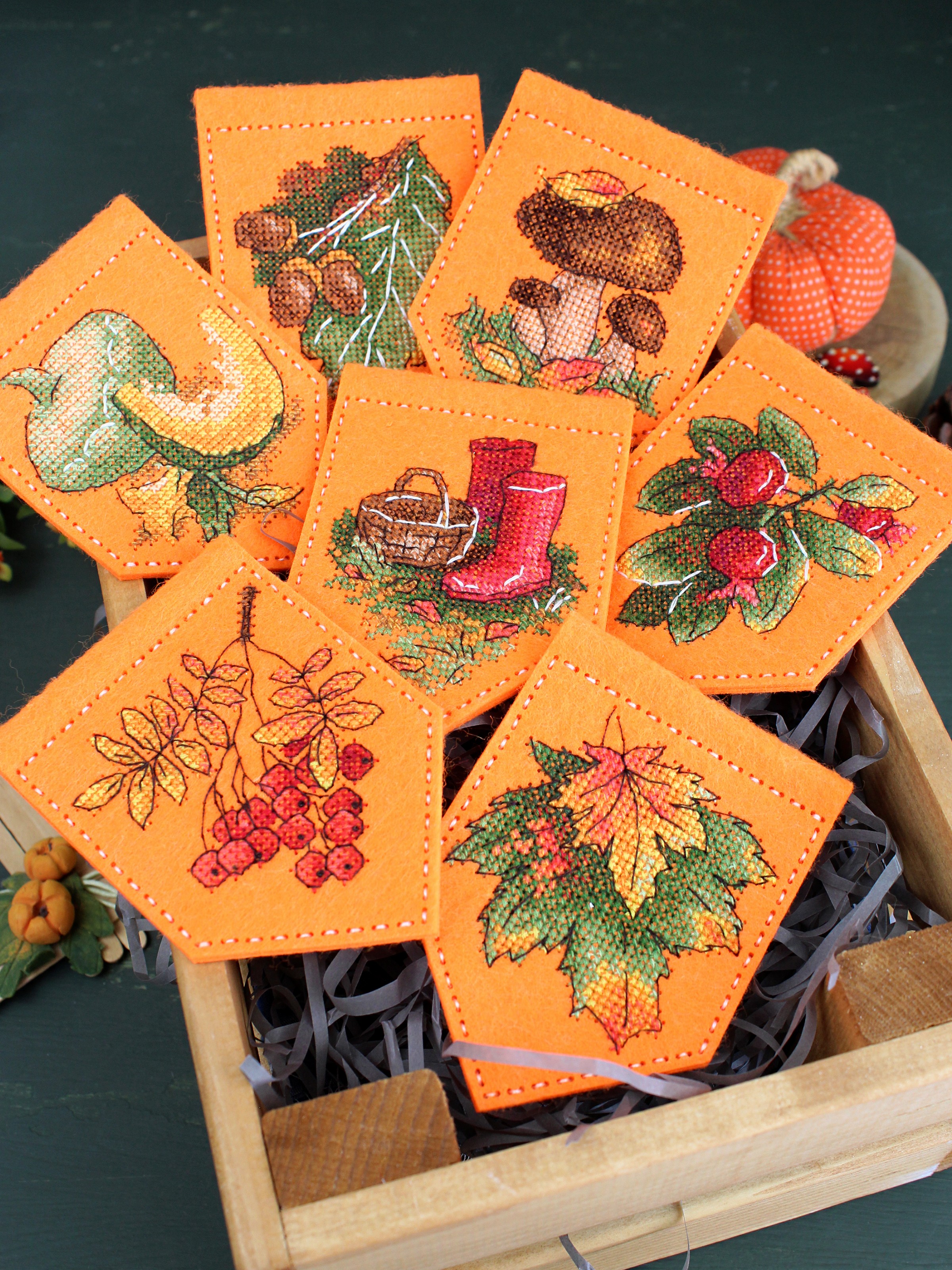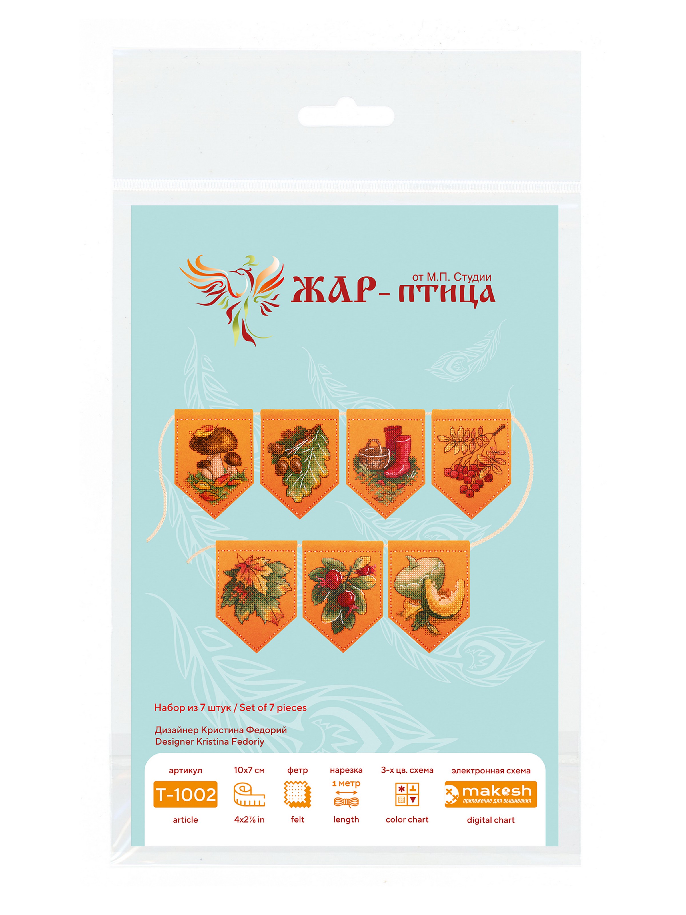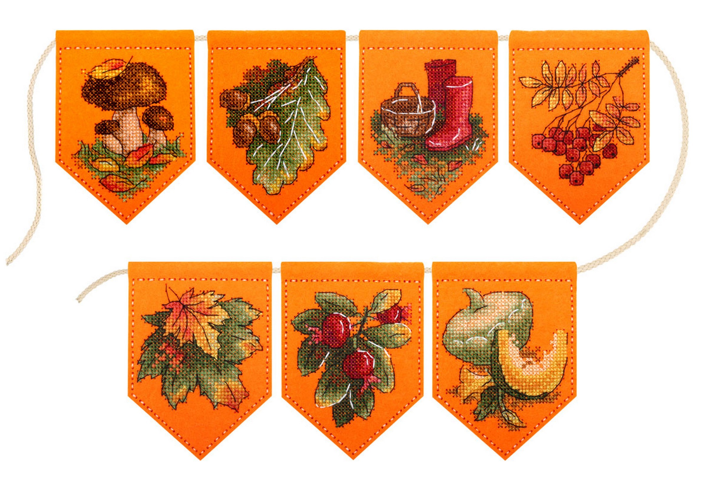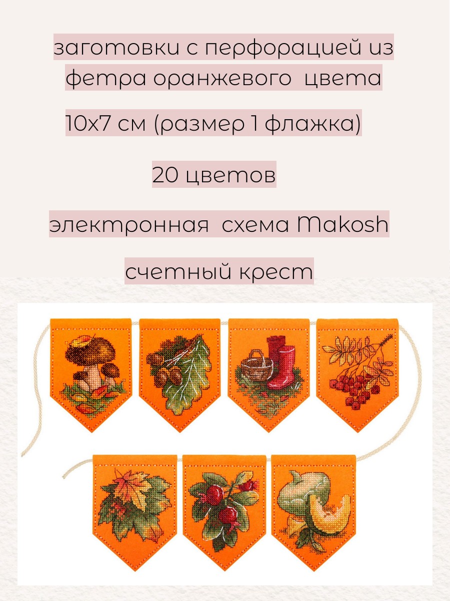 Представляем Ввшему вниманию набор для вышивания на фетре от ТМ Жар-птица, М.П. Студия, "Осенняя гирлянда оранжевая (7 флажков)". Артикул: Т-1002. В состав набора входит: заготовки с перфорацией из фетра оранжевого цвета, нитки мулине ПНК им.Кирова 20 цветов, шнур для развески, игла, схема и руководство по вышиванию.