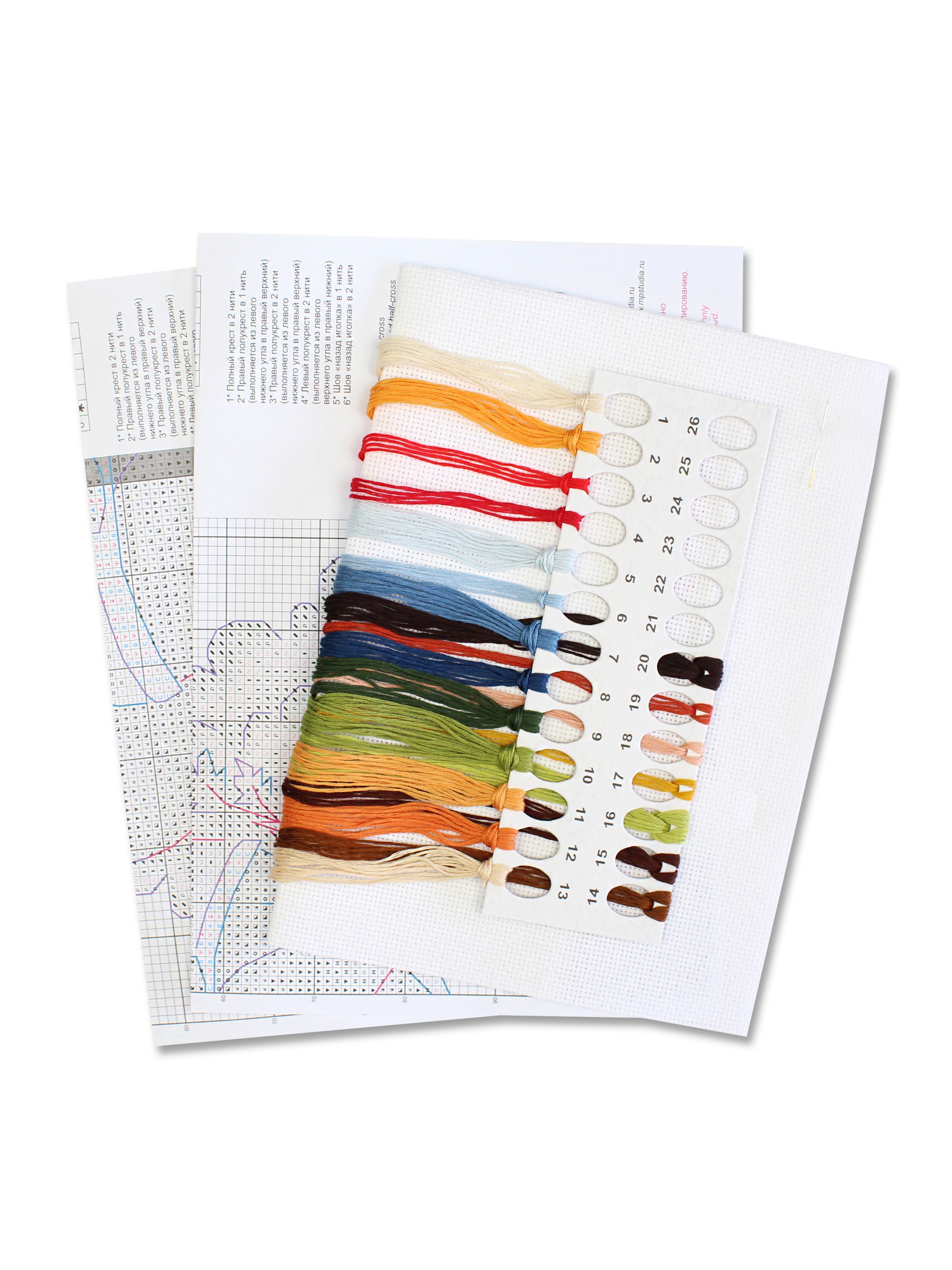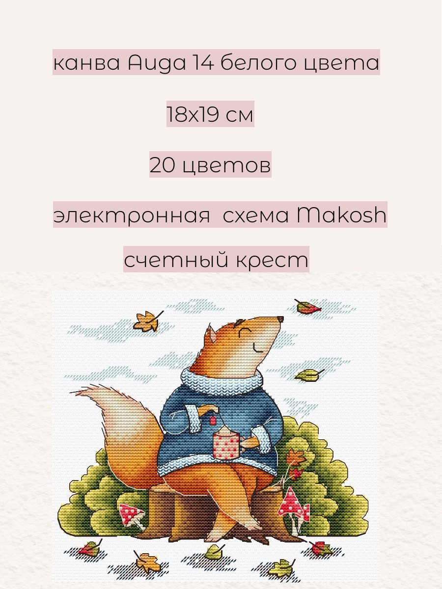 В состав набора вышивки входит: белая канва 14 каунта, нитки мулине ПНК им.Кирова 20 цветов, разобранные на органайзере, игла, схема бумажная и электронная Makosh, руководство по вышиванию. Размер 18х19 см. Техника вышивания: счетный крест. Рисунок на канву не нанесен.