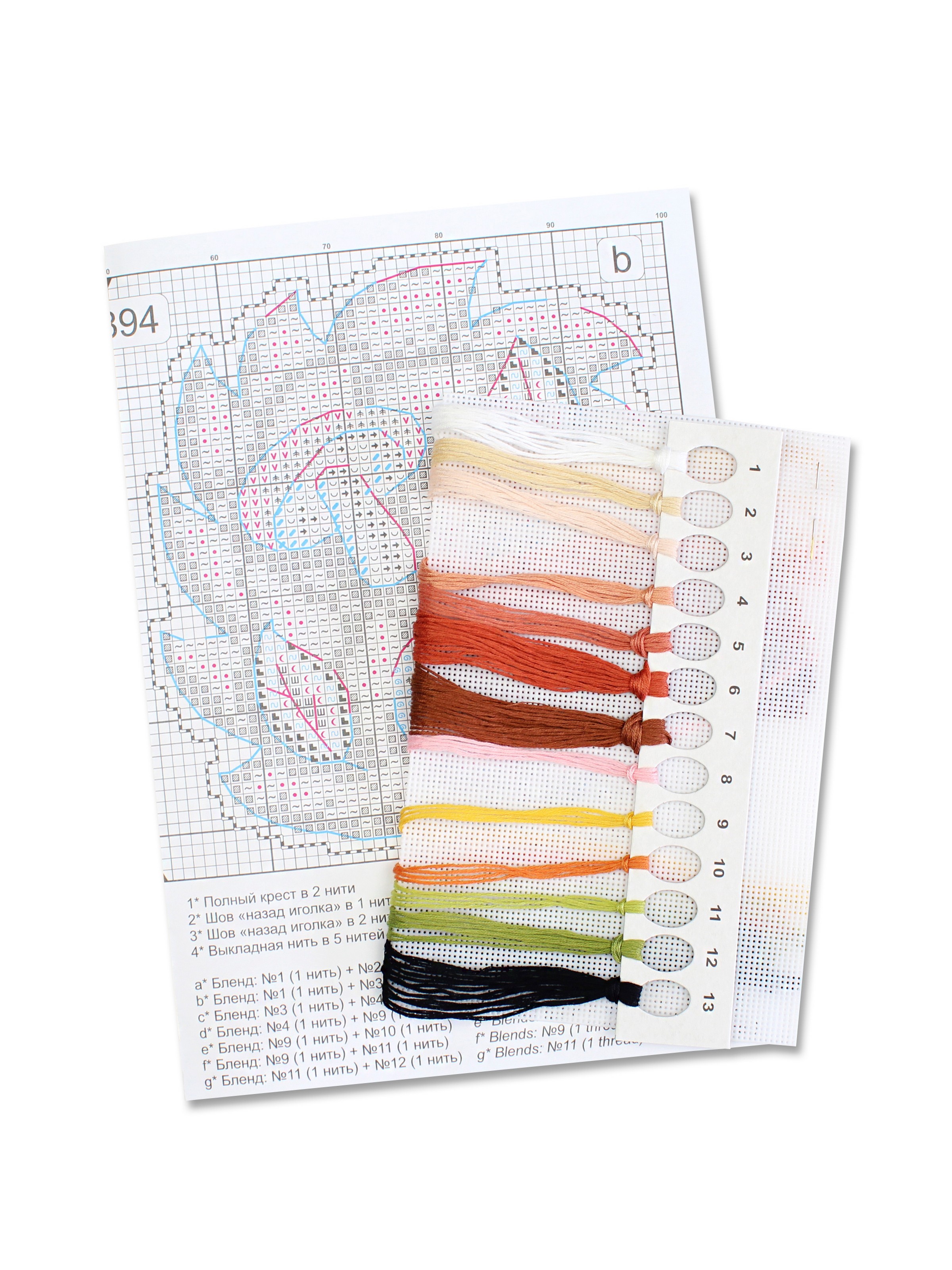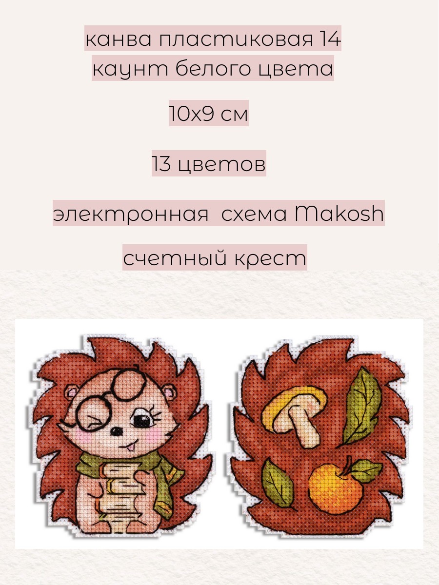 Размер 10х9 см. В состав набора вышивки входит: белая пластиковая канва 14 каунта, нитки мулине ПНК им.Кирова 13 цветов, разобранные на органайзере, игла, схема бумажная и электронная Makosh, руководство по вышиванию. Техника вышивания: счетный коест. Частичная зашивка.