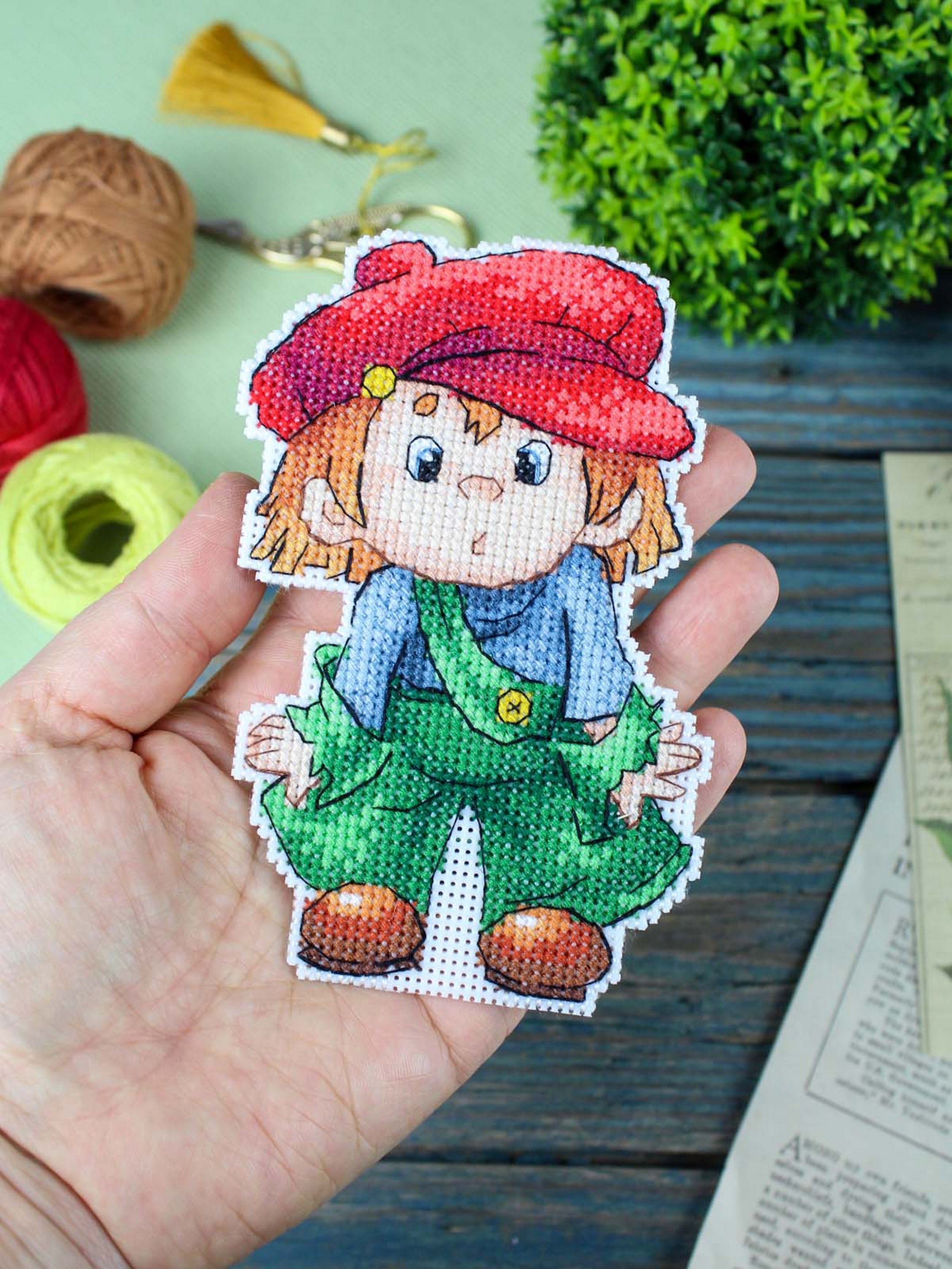 Обе стороны вышивки вышиваются согласно схеме, затем вырезаются по контуру, обозначенному в руководстве по вышиванию, и сшиваются изнаночными сторонами внутрь.
