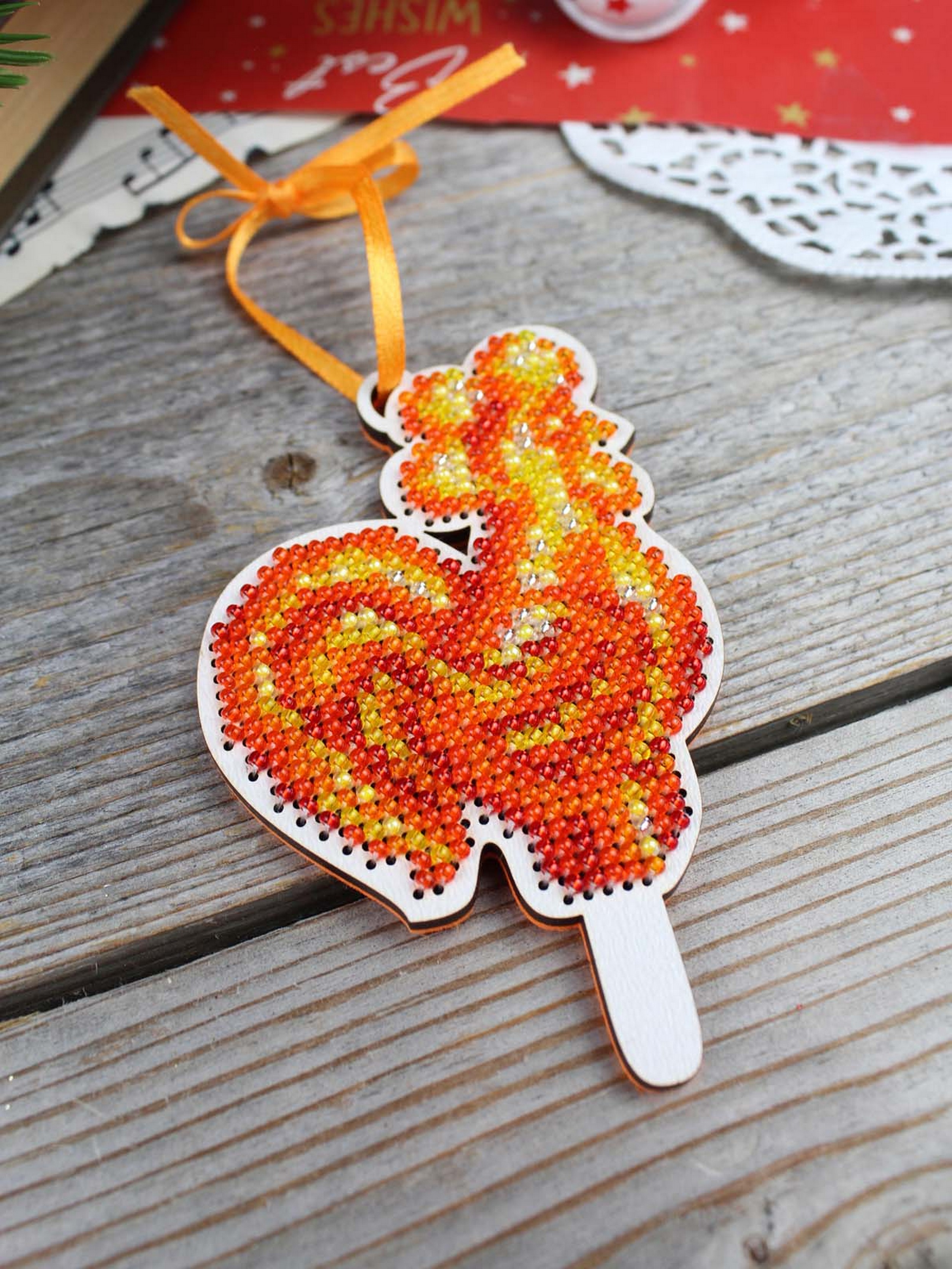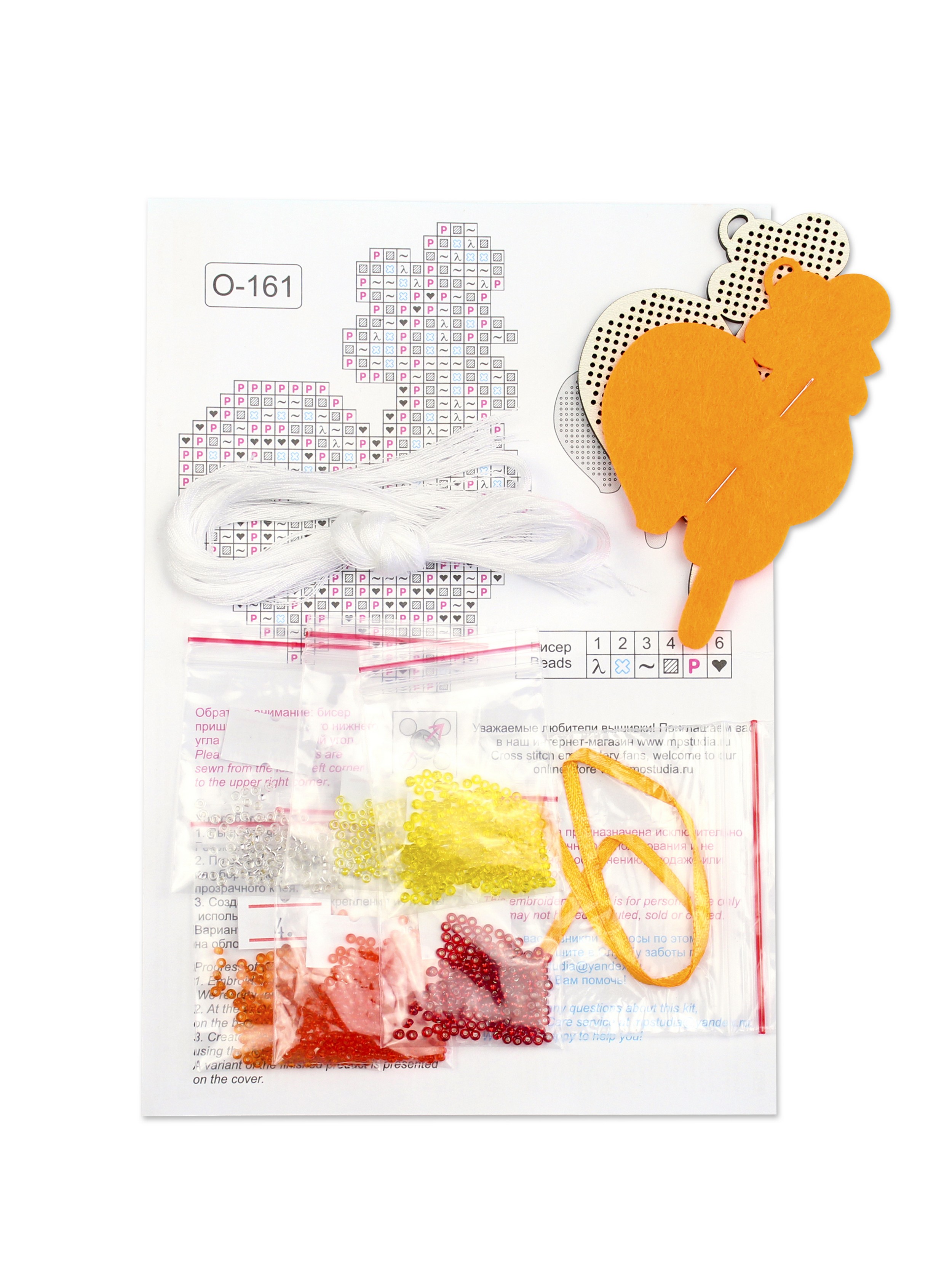 Артикул: О-161. Состав: перфорированная деревянная основа, 6 цветов бисера Preciosa, игла, фетр оранжевый, нитки ЛЛ35, оранжевая лента 3мм, двухцветная символьная бумажная схема и электронная схема Makosh, инструкция по выполнению работы.