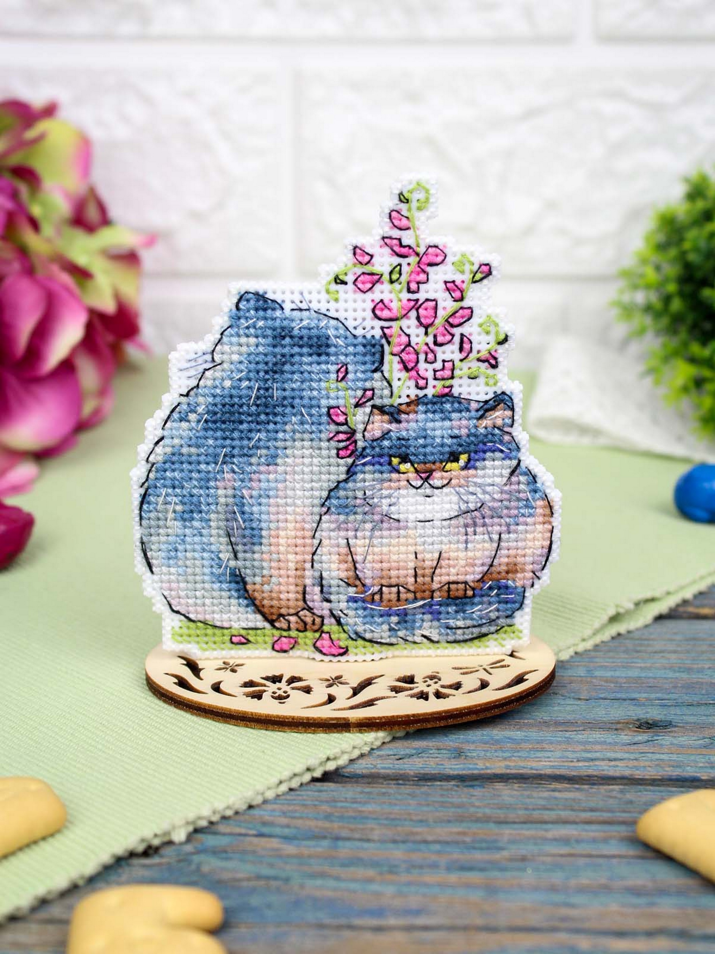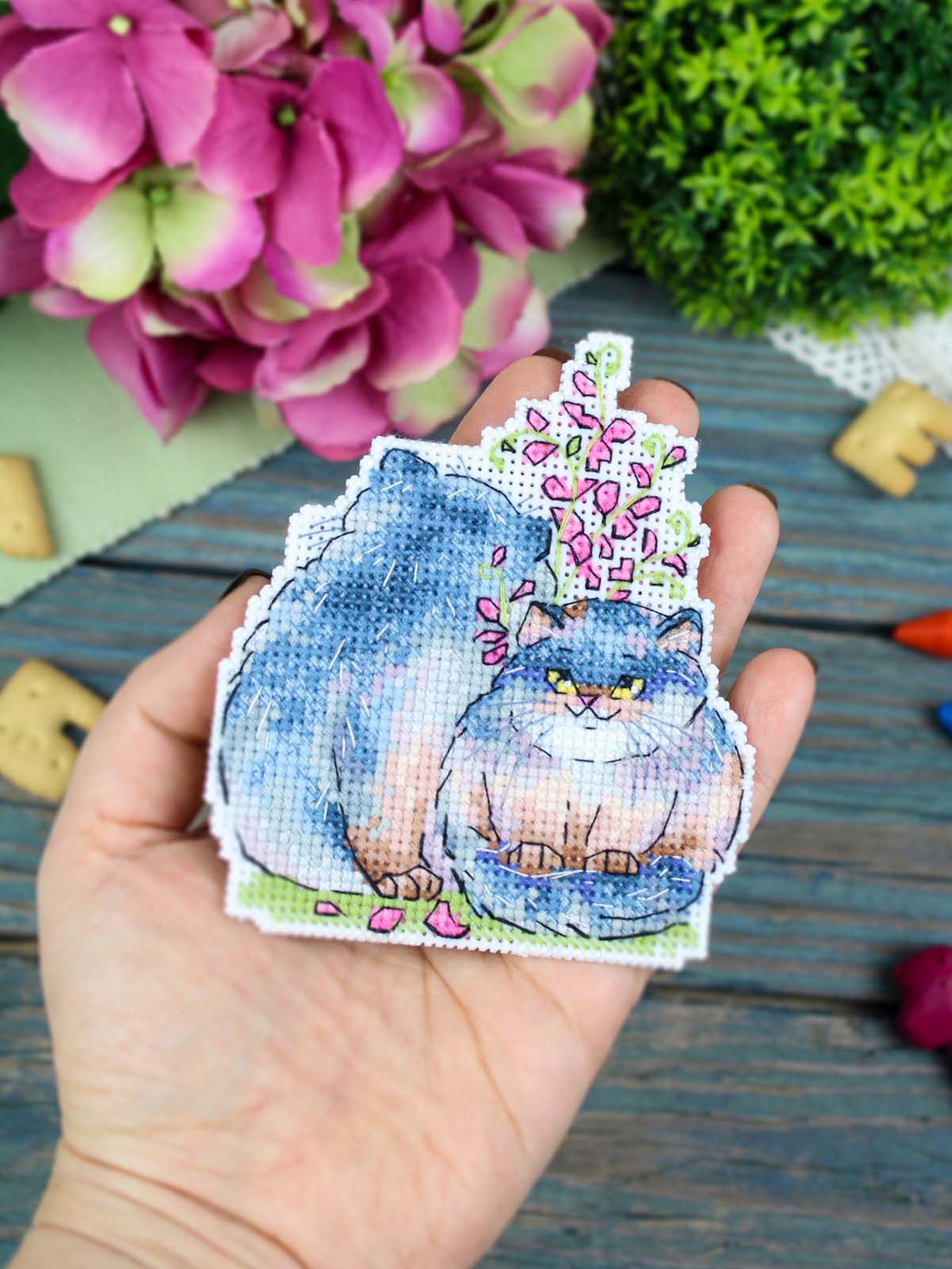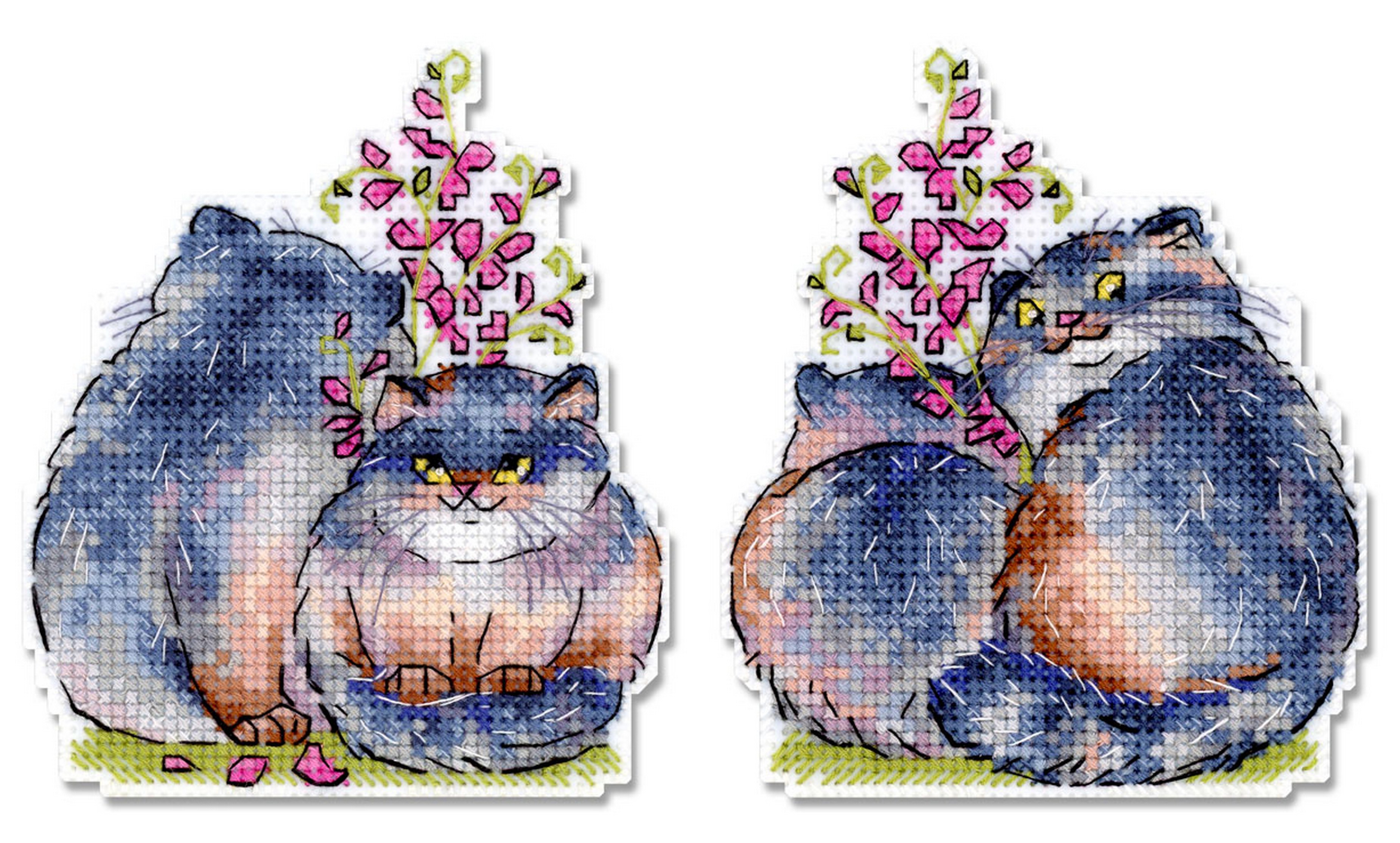 Обе стороны вышивки вышиваются согласно схеме, затем вырезаются по контуру, обозначенному в руководстве по вышиванию, и сшиваются изнаночными сторонами внутрь.