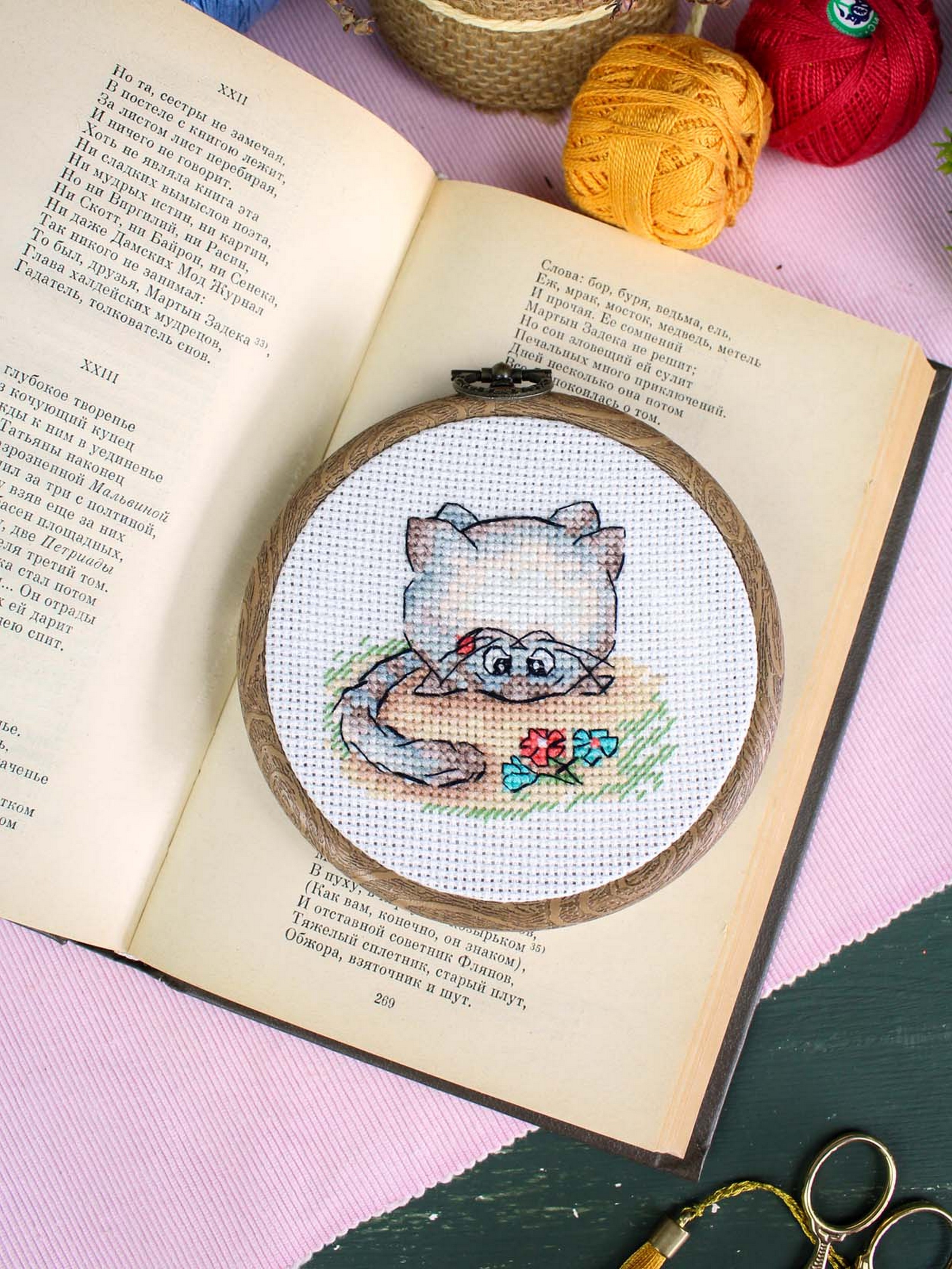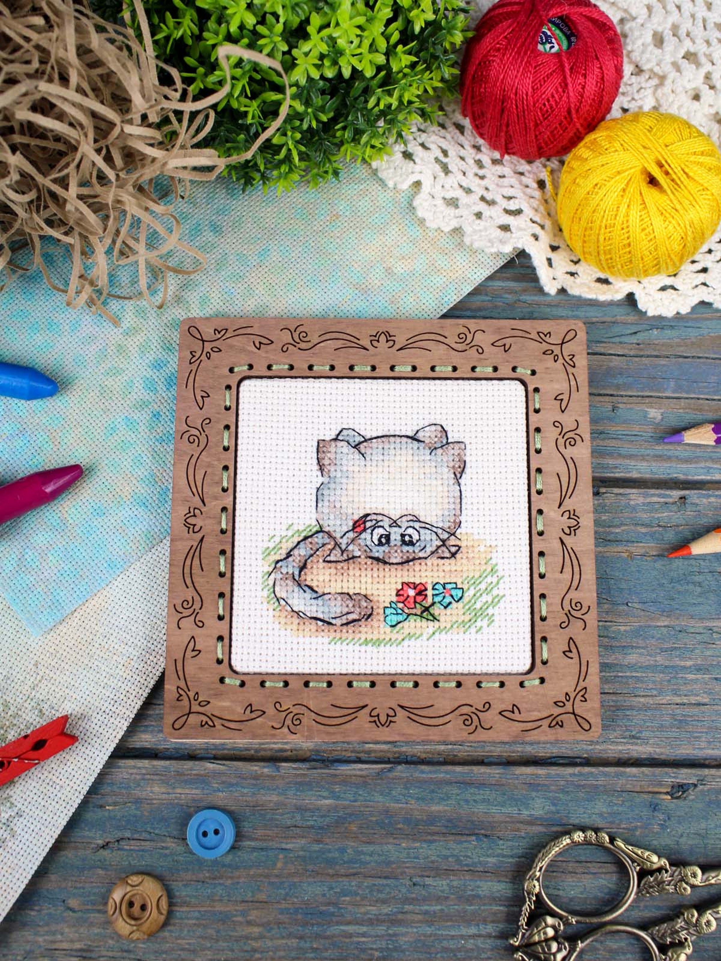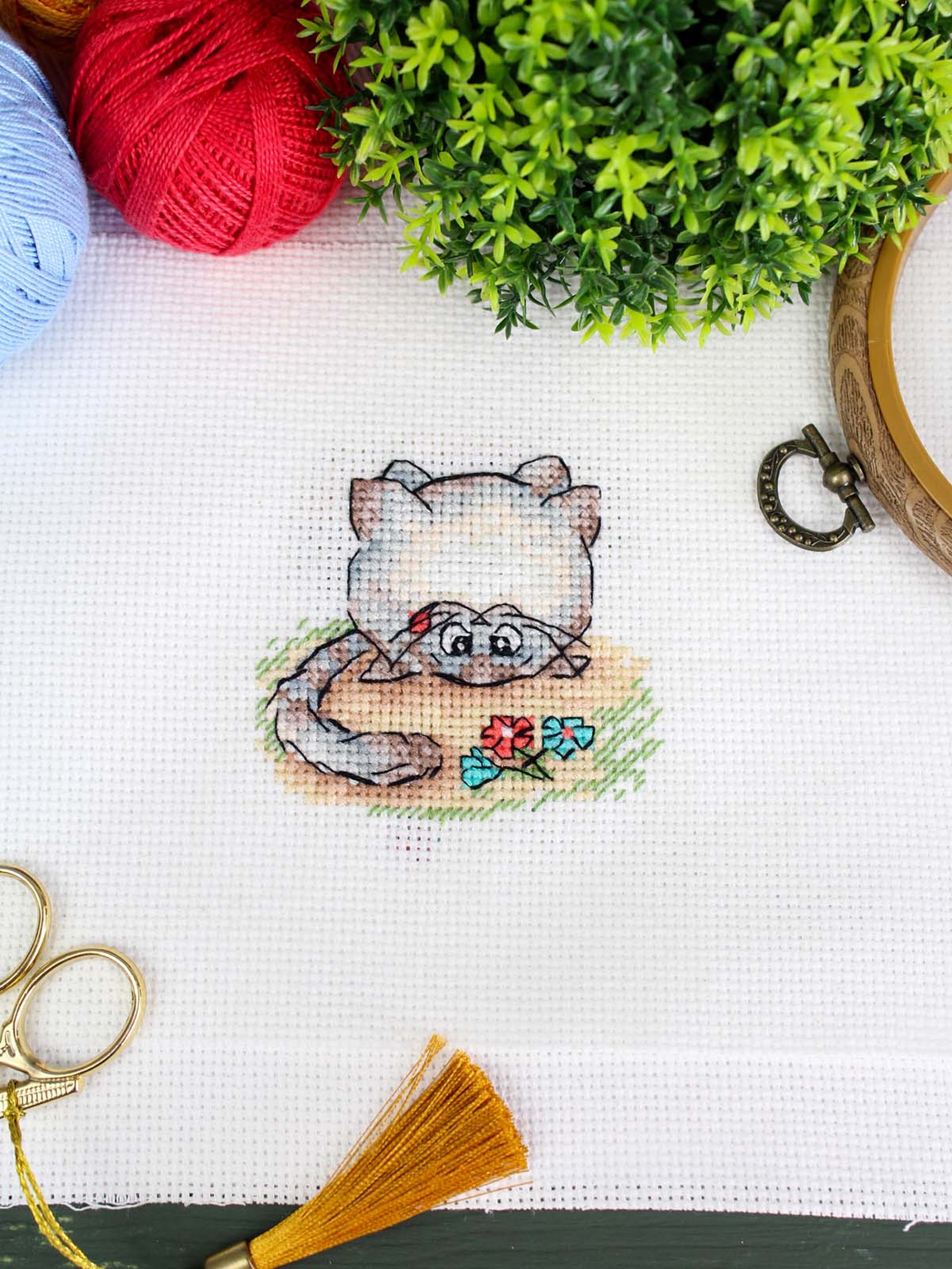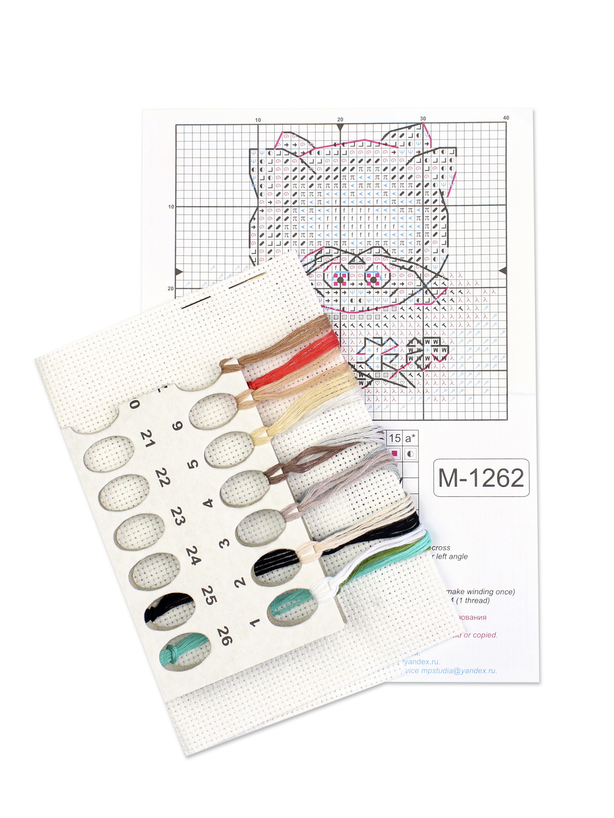 В состав набора входит: белая канва 14 каунта, нитки мулине ПНК им.Кирова 15 цветов, разобранные на органайзере, игла, схема бумажная и электронная Makosh, руководство по вышиванию. Размер 7х7 см. Техника вышивания счетный крест. Рисунок на канву не нанесен.Частичная зашивка.