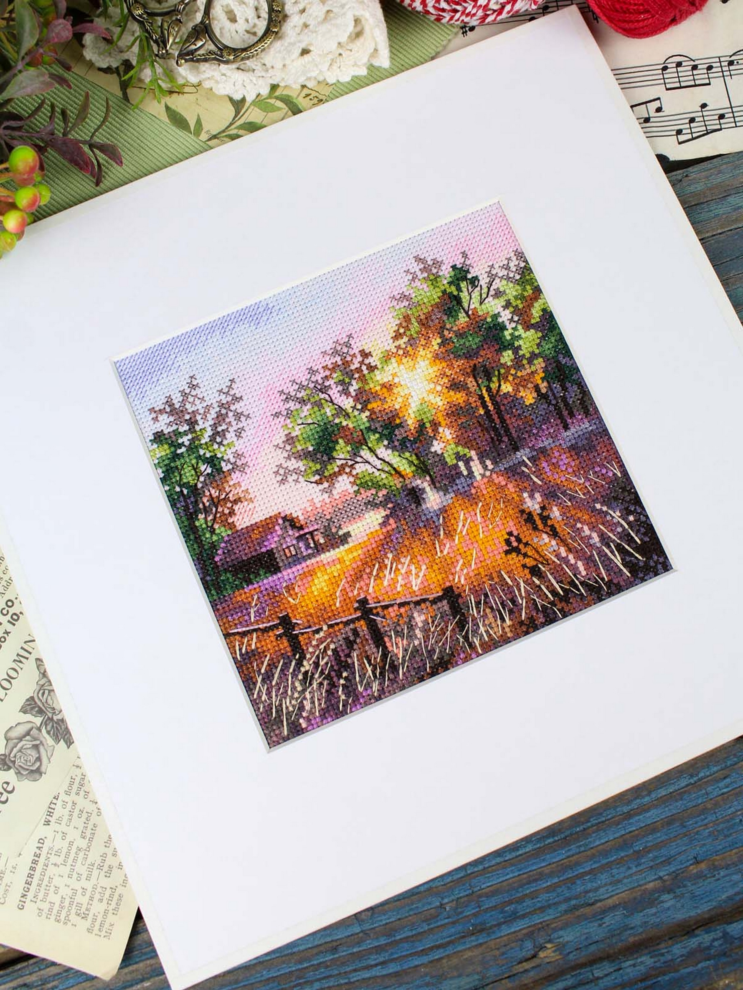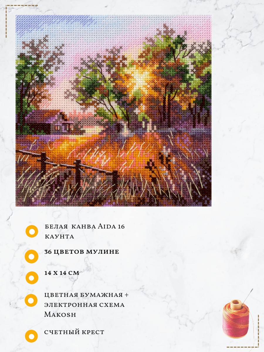 Размер: 14*14 см. В состав входит: белая хлопчатобумажная канва 16 каунта, нитки мулине Гамма 36 цветов, разобранные на органайзере, игла, бумажная цвето-символьная схема и электронная схема Makosh, вышивальная линейка, нитковдеватель, руководство по вышиванию.. Техника вышивания: счетный крест.