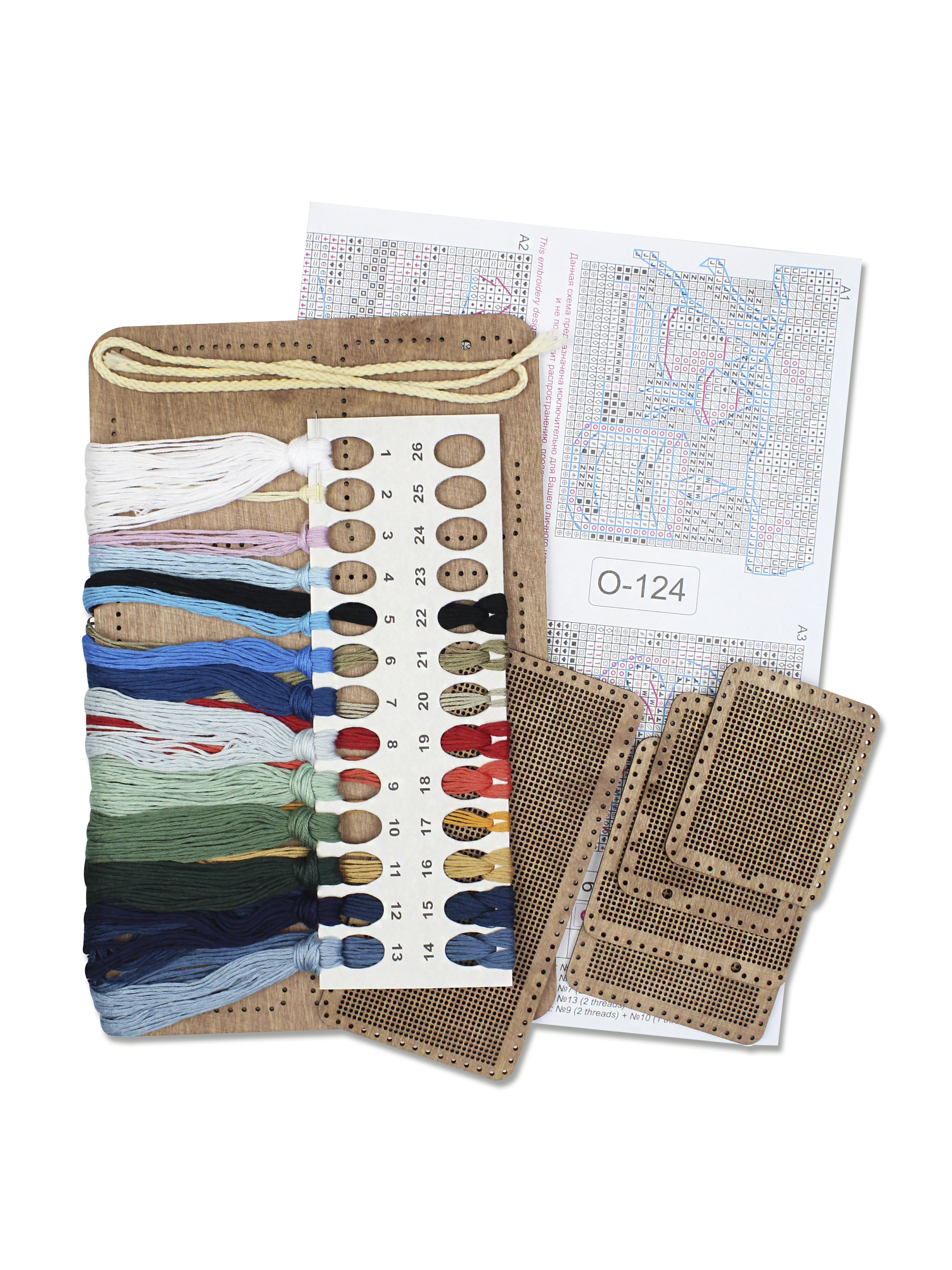 Артикул: О-124. Состав:, перфорированная деревянная основа, 22 цвета мулине ПНК им.Кирова, игла, шнур, бумажная схема и электронная схема Makosh, руководство по вышиванию. Размер: 26х17 см. Техника вышивания: счетный крест. Заполнение: частичное.
