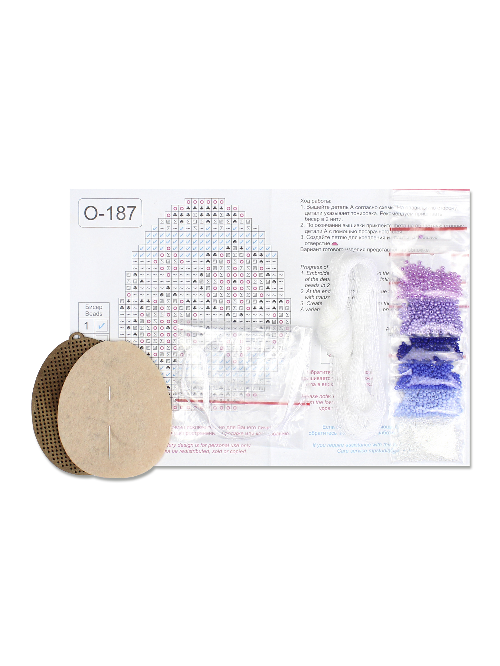 Состав: перфорированная деревянная основа, бисер Preciosa 6 цветов, швейные нитки, лента атласная, фетровый задник бежевый, игла, схема и руководство по вышиванию, электронная схема Makosh.