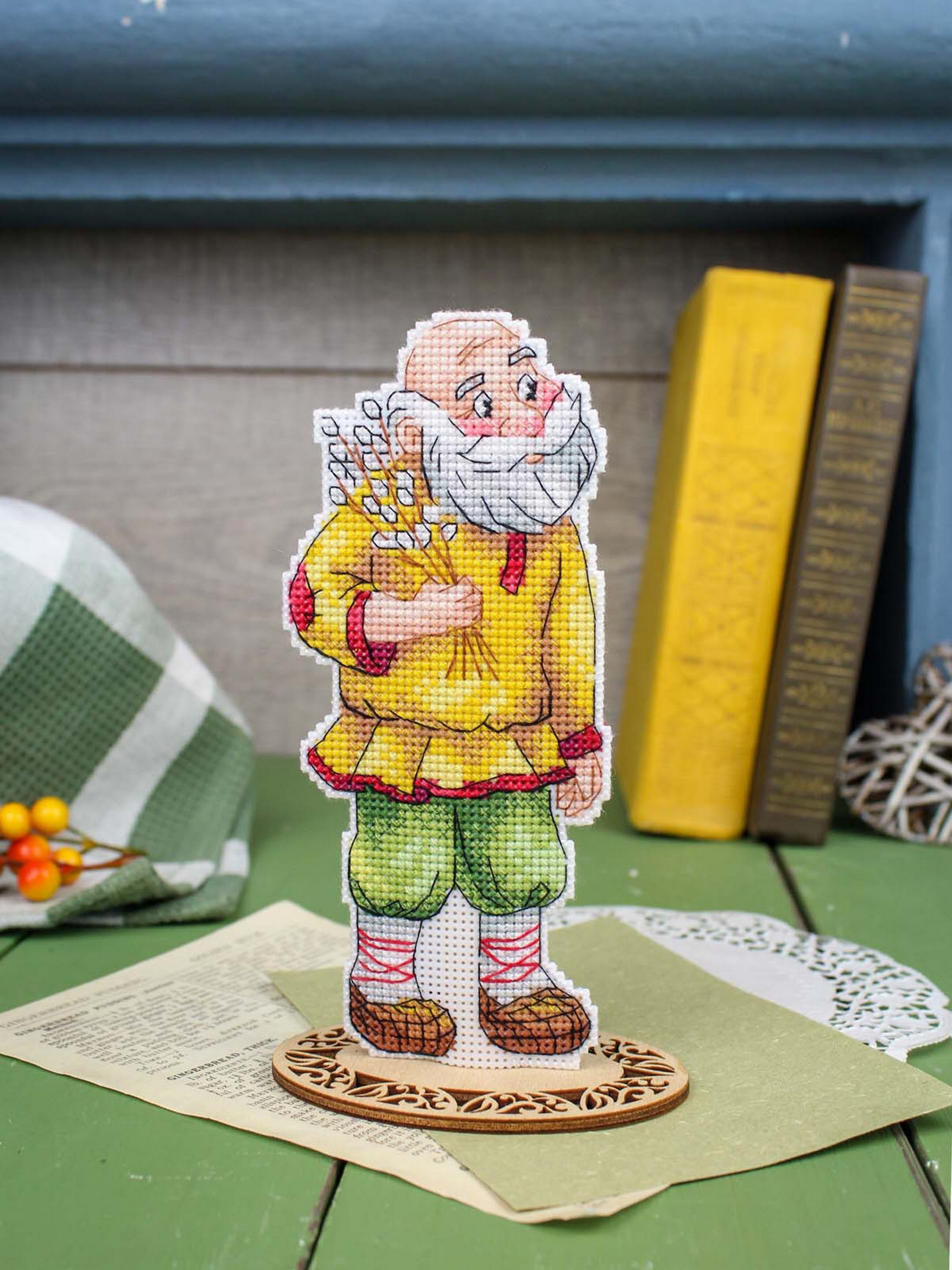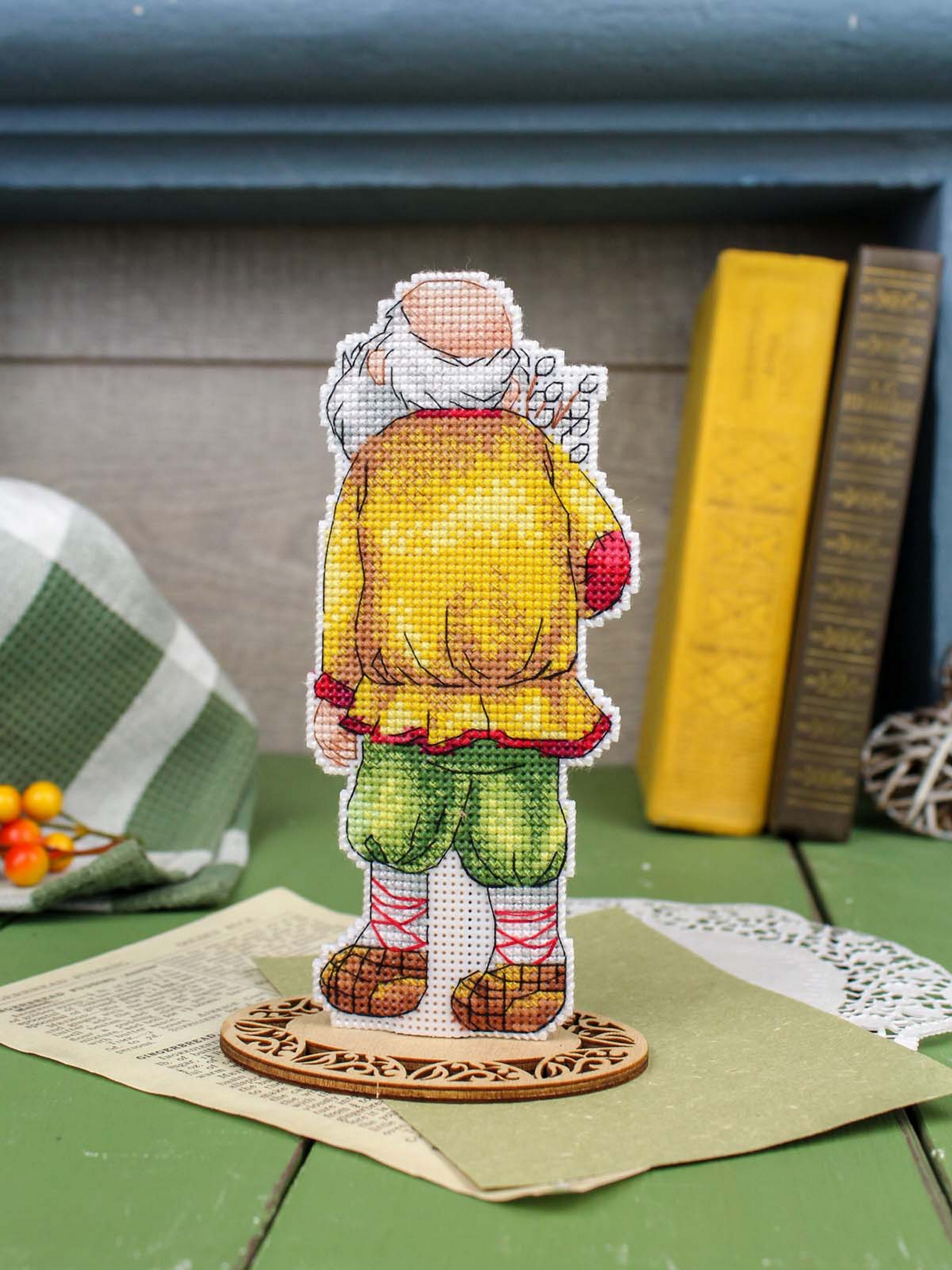 Обе стороны набора вышиваются согласно схеме, затем вырезаются по контуру, обозначенному в руководстве по вышиванию, и сшиваются изнаночными сторонами внутрь.